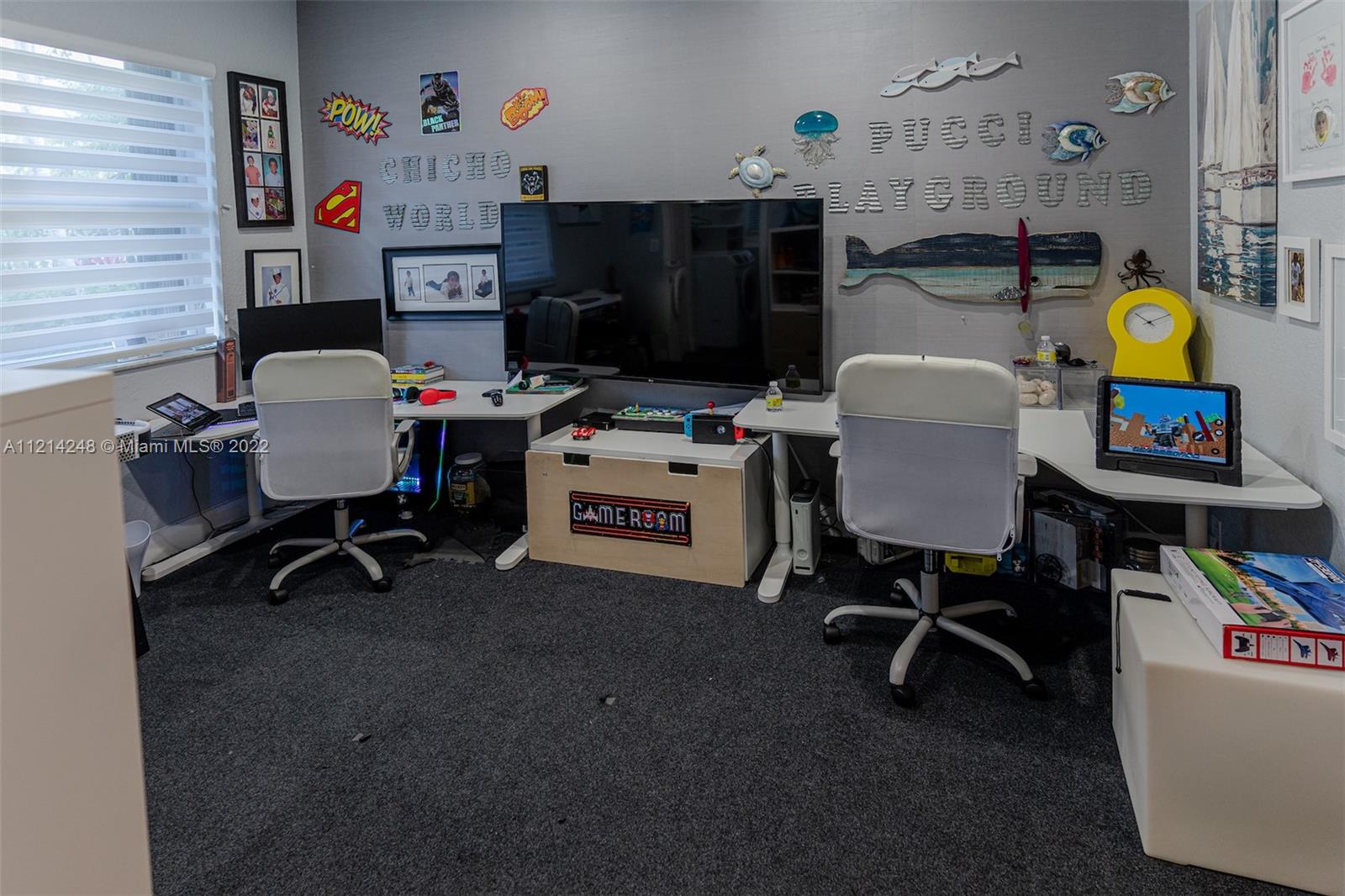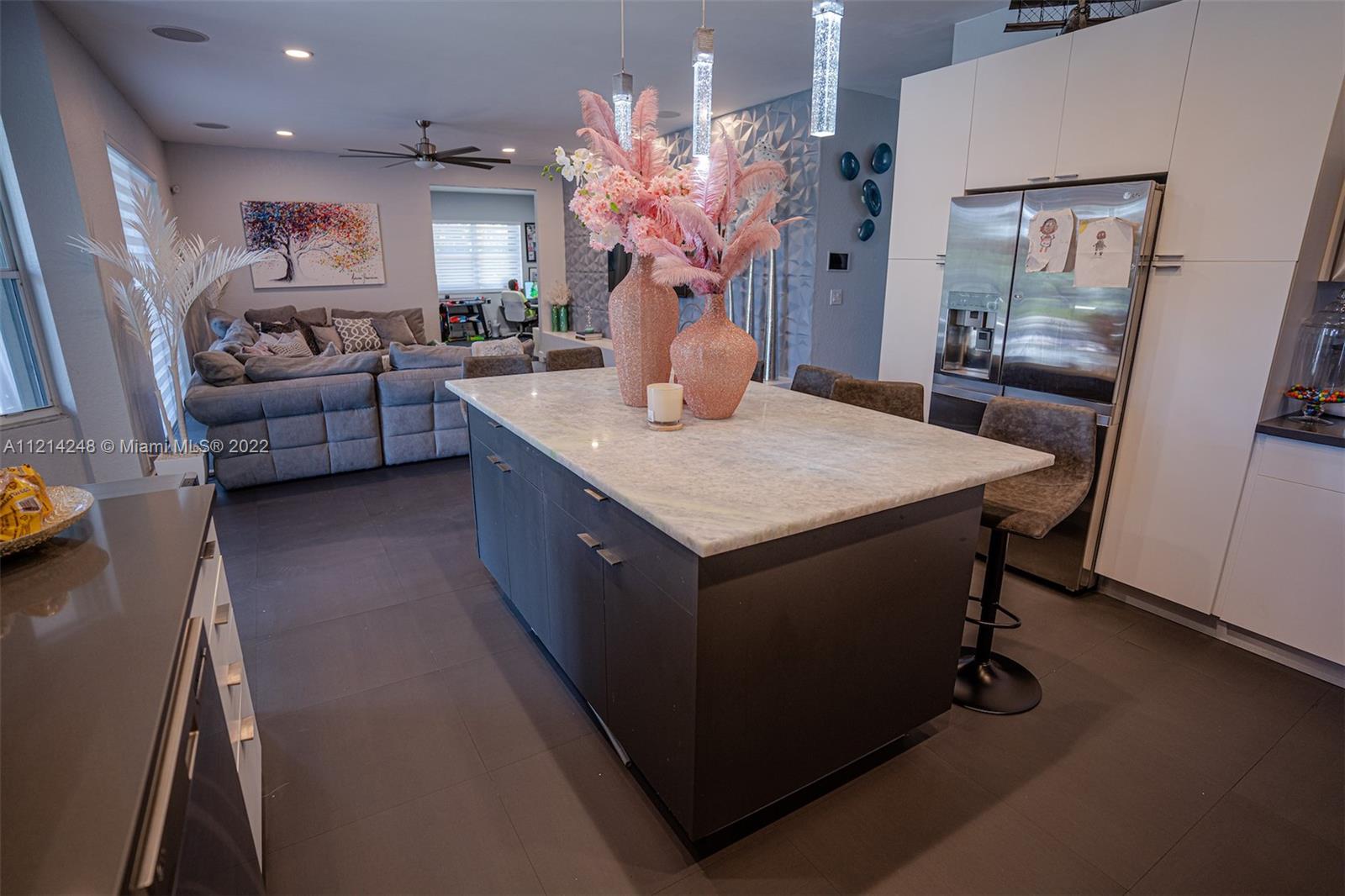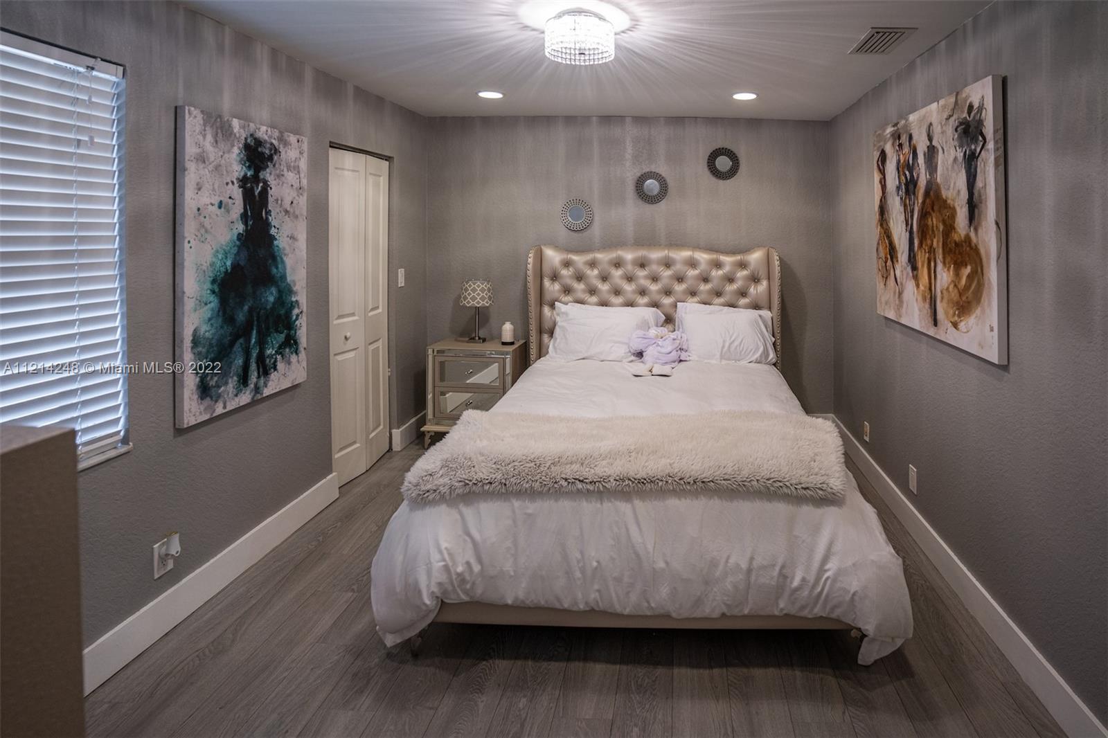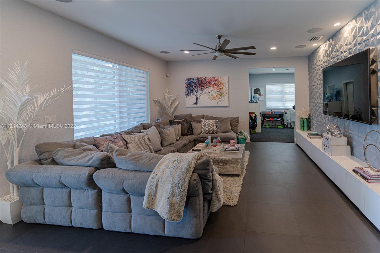 Looking for the perfect escape from the city? Stunning waterfront, cul-de-sac home. Sitting on one of the largest lot in the area (.39 acre). This two-story 4,000SF+ living residence was completely remodeled. Featuring sleek, warm modern details throughout. Offering 75 feet of water frontage, outdoor area with a heated water jet pool, ivory travertine pavers, beautiful 30 feet tall palm trees with lots of privacy, and lush landscaping. Renovated in 2018, this 7 bedroom/5 full bathroom home complete with a playroom, music studio, beautiful island, 16’ x 14’ converted closet, 3-parking garages, oversized master suite with 40’ x 16’ balcony, Crestron controls, sound system throughout, 10’ ceilings throughout 1st floor, and more!