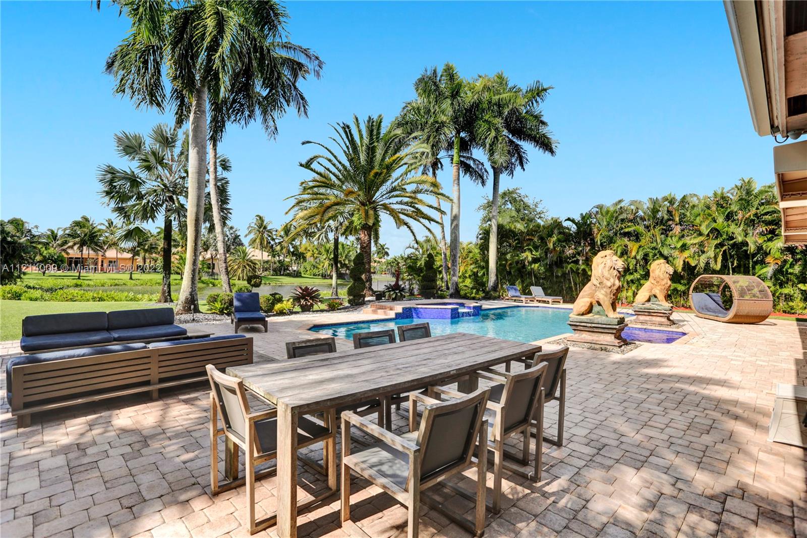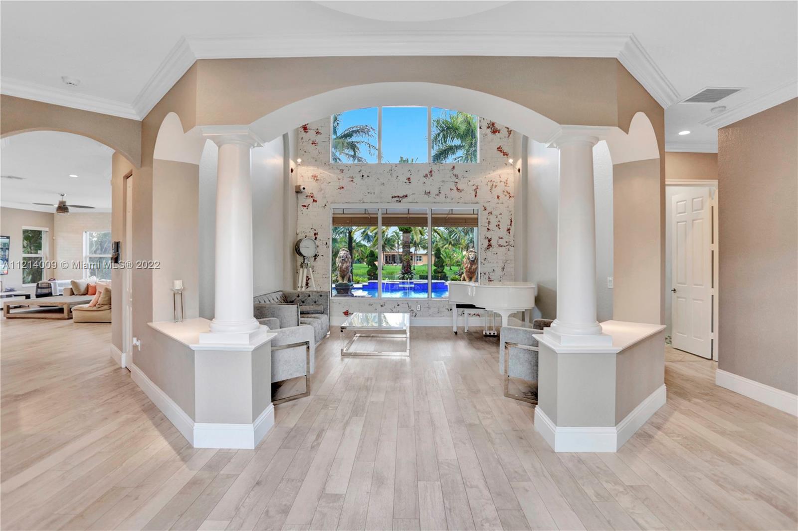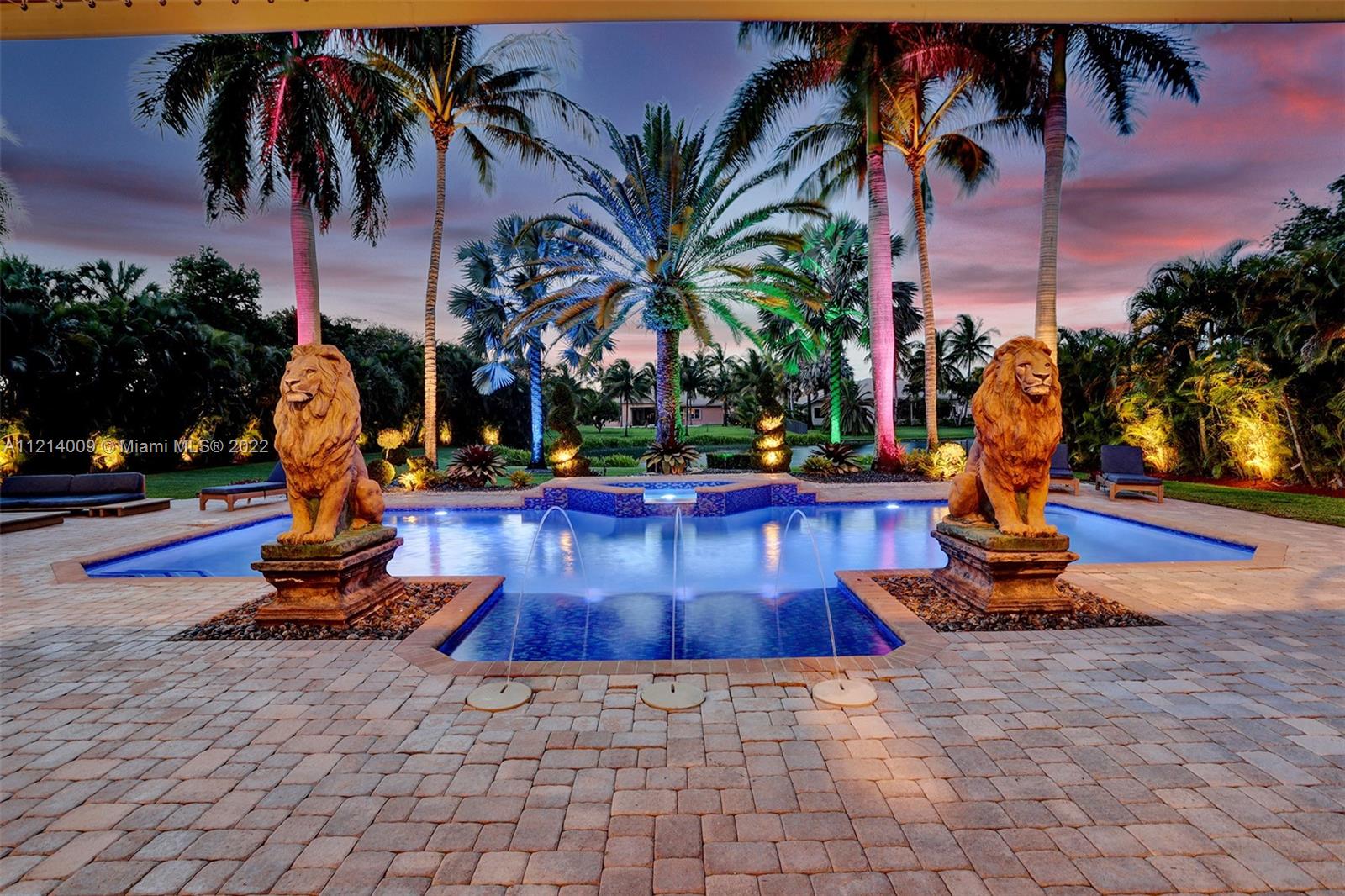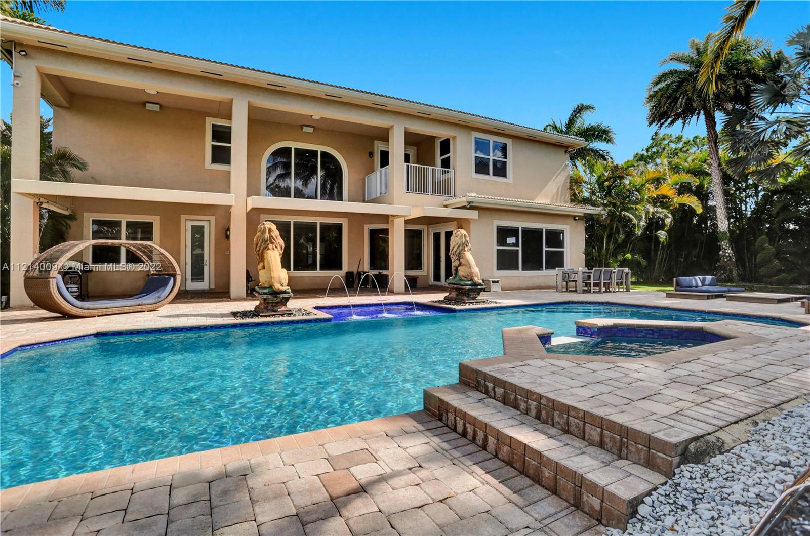 Welcome to this Majestic 6 bed/4.5 bath pool home in the gated Community of Riverstone in Davie. This gorgeous updated home sits on one of the largest culde- sac lots. This exquisite home comes with upgraded floors, cabinets and an amazing custom kitchen featuring Wolf Appliances; sub-zero refrigerator; and a beautiful island, the interior features exceptional living and family room space, with a formal dining room and an office. Looking for backyard space to entertain then come see this very private lot. The master suite features his and hers bathrooms an oversized sitting area, his and hers walk in closets Over 100k in newly installed Impact windows throughout the house. Enjoy this very Tranquil private back yard with Lush landscaping