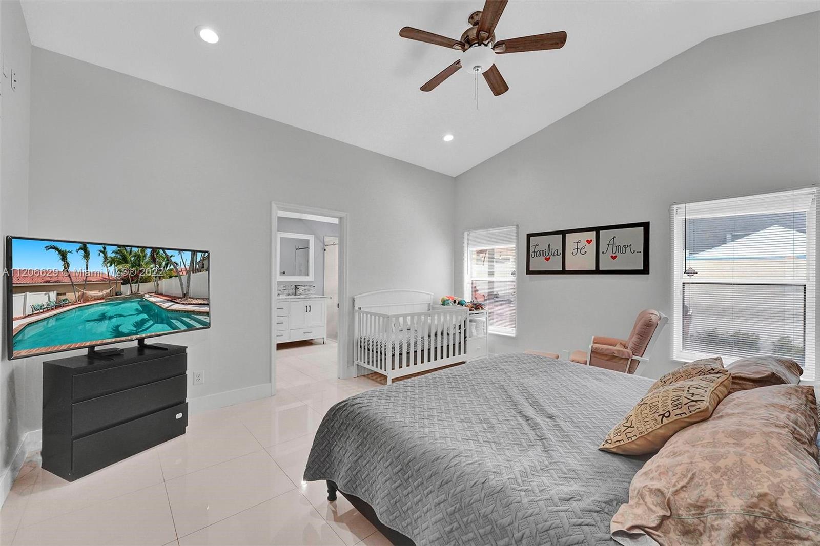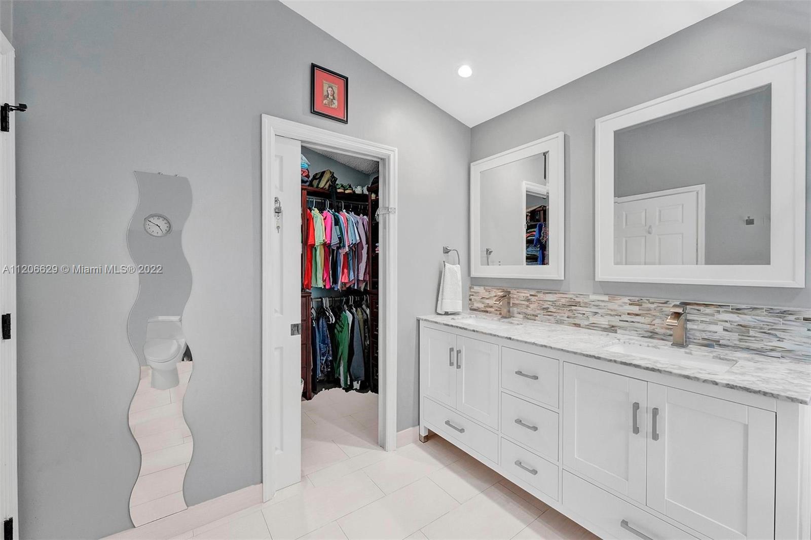 Stunning one story pool home with 3 bedrooms and 2 baths in Silver Lakes! This home features porcelain tile flooring throughout. The upgraded kitchen is complete with granite countertops, stainless steel appliances and wood cabinetry with pullouts. Both bathrooms have been fully renovated with modern finishes. All bedroom closets have custom built-in organizers. Huge backyard with a pergola, and a large pool! Backyard is completely fenced-in with a PVC fence. Home is located on a cut-de-sac with no thru traffic.