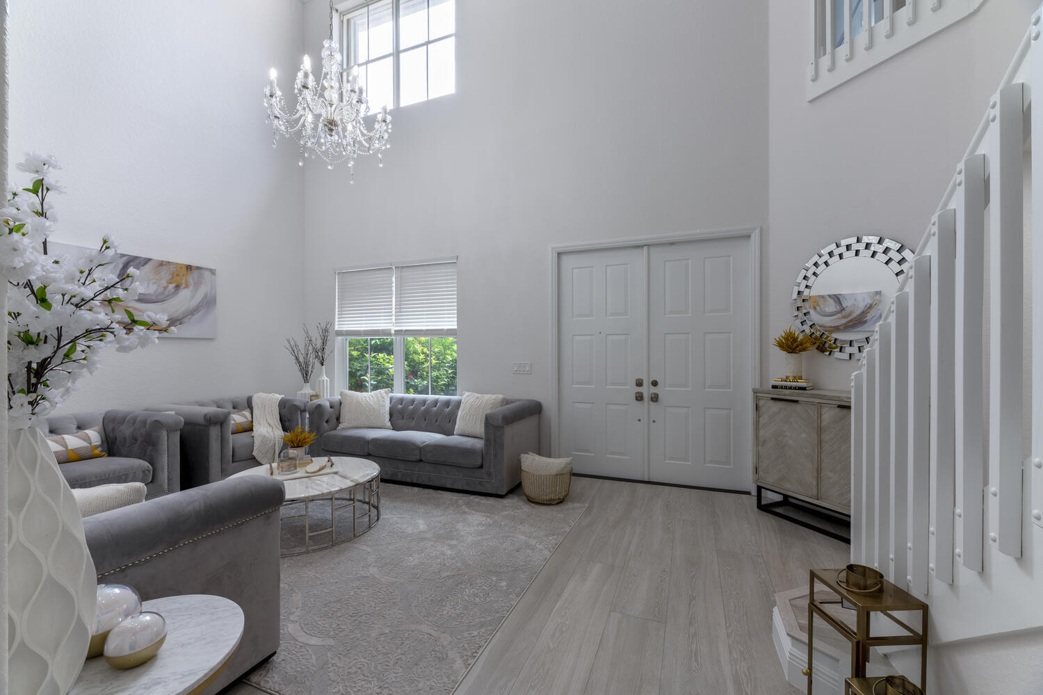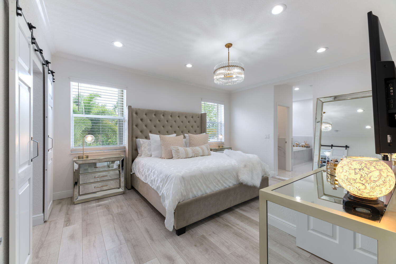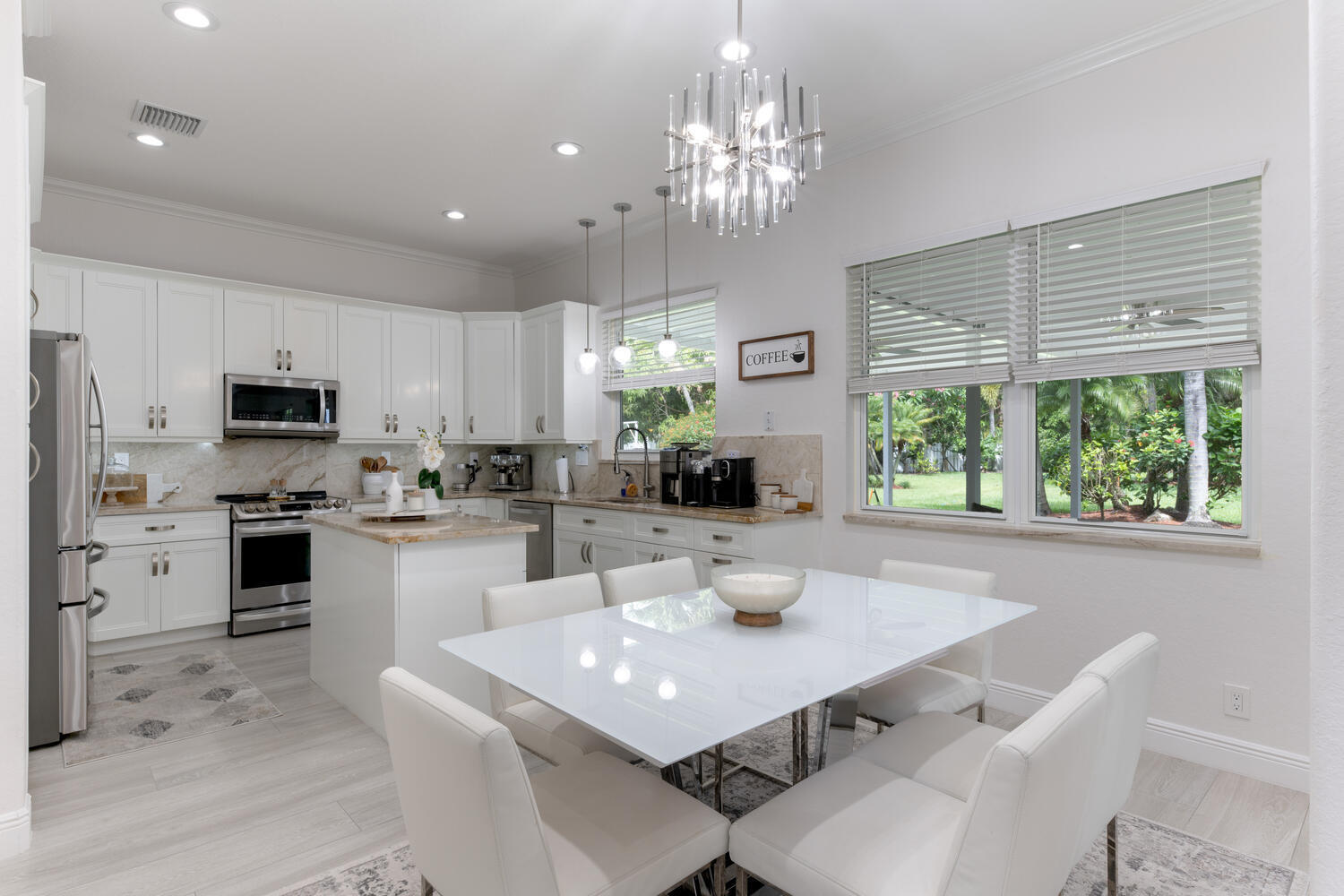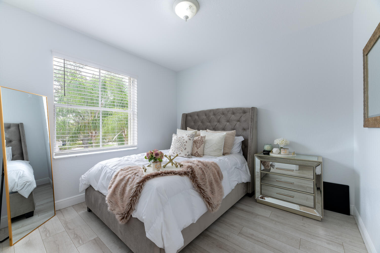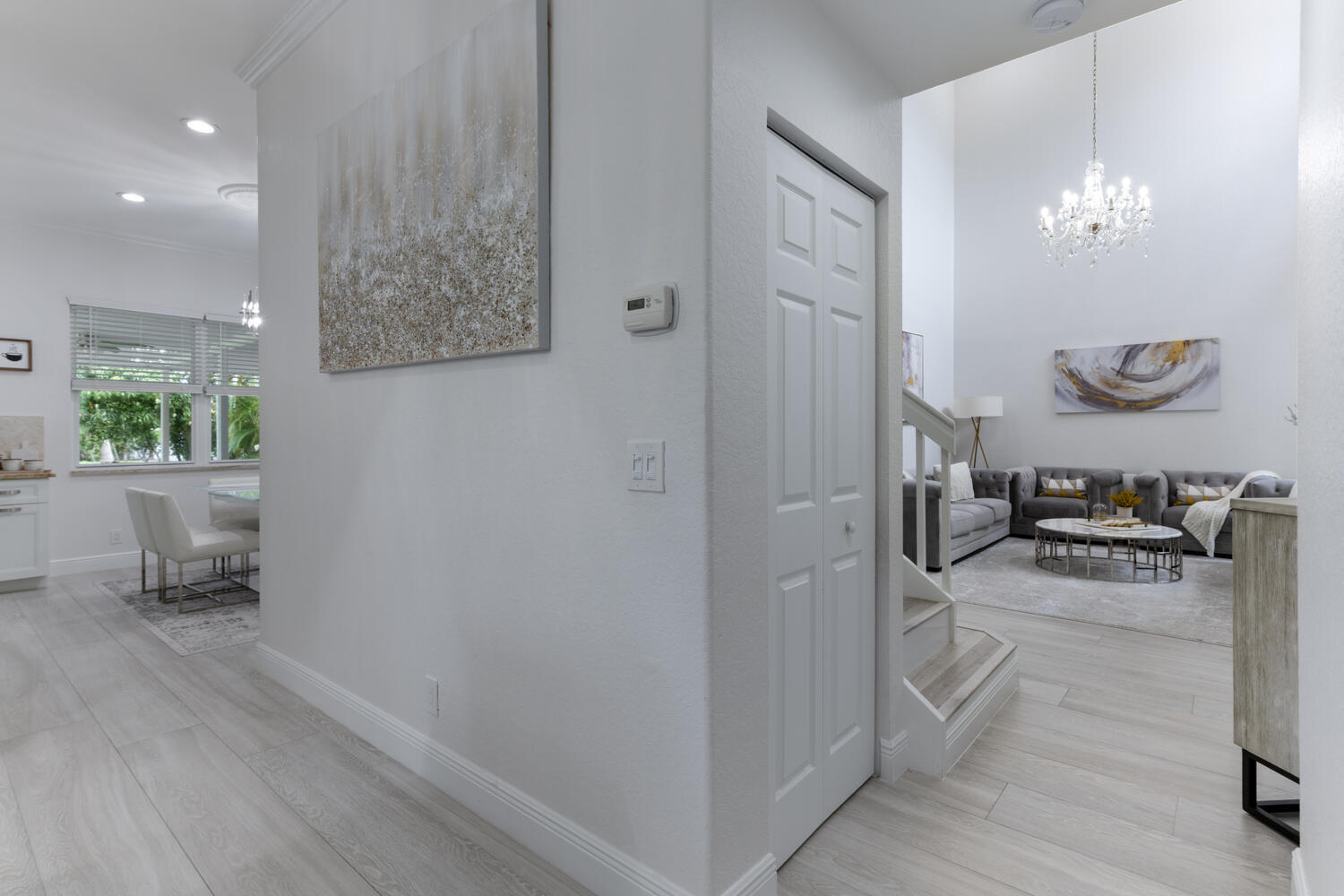 Well appointed residence in an oversized lot within the gates of Lakes of Laguna. Renovations completed draw you in from the entry to the master bedroom upstairs and from floors to ceilings. Handpicked counters, rain shower, tailored sinks, cabinetry and an open floor plan make you forget that you are in the heart of North Palm Beach County while within your own compound! The main level hosts the living, dining, family, breakfast nook, kitchen and guest bedroom with a full bathroom. The upstairs hosts the master bedroom and three additional bedrooms sharing a bathroom. The seller expresses the lot as being the largest in the community with water view, fruit trees and plenty of room for a pool and multiple security cameras. Lakes of Laguna has a community pool, courts and security patrol.