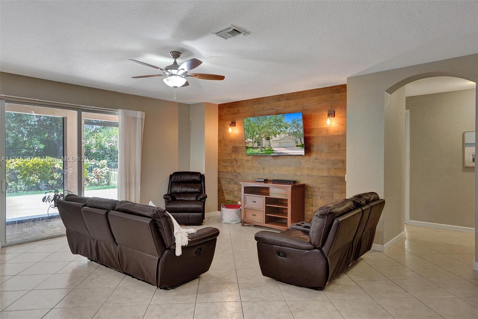 BEAUTIFUL HOME VIOLET MODEL. 5BR 5BA+LOFT. The oversized master suite is magnificent. It has a large den/sitting area, two walk in closets with wood cabinetry. Oversized loft upstairs that can be used as a 2nd family room or converted 6th bedroom. Gourmet chef's kitchen recently remodeled, 42" wood cabinets, quartz, double oven. 2 A/C units with UV lighting system. Extended covered travertine patio, electric screens, fenced private backyard with plenty of room for a spacious pool. HIGH IMPACT WINDOWS & DOORS. This gorgeous home is located in the sought-after "The Isles at Weston". Resort like club with pools, club house, billiard room, gym, playground and more. Excellent schools. Hurry, this amazing home won't last.