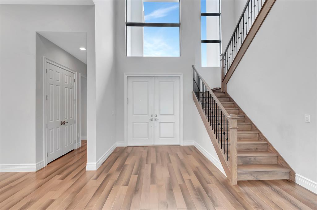 The Contemporary Riverside floorplan is one of the most sought after homes within Boca Bridges. South-facing private lot. 5 bedrooms, 6.1 baths, 4-car garage, loft, retreat, club room, upstairs owner's suite with large covered balcony, great room, den & very spacious backyard that could easily accommodate a pool. From the foyer throughout the living areas & upstairs to the bedrooms is rich wood flooring. The kitchen has SubZero refrigerator, Wolf gas cooktop & wall ovens, Bosch dishwasher, a steam oven, quartz counters, & farmer's style sink. The club room features a wet bar. All the bedroom closets are fully customized & outfitted. Pre-plumbing & electrical stub-out for future BBQ & a pool. Gas appliances. Impact glass throughout. Water purification system. Close to the Clubhouse