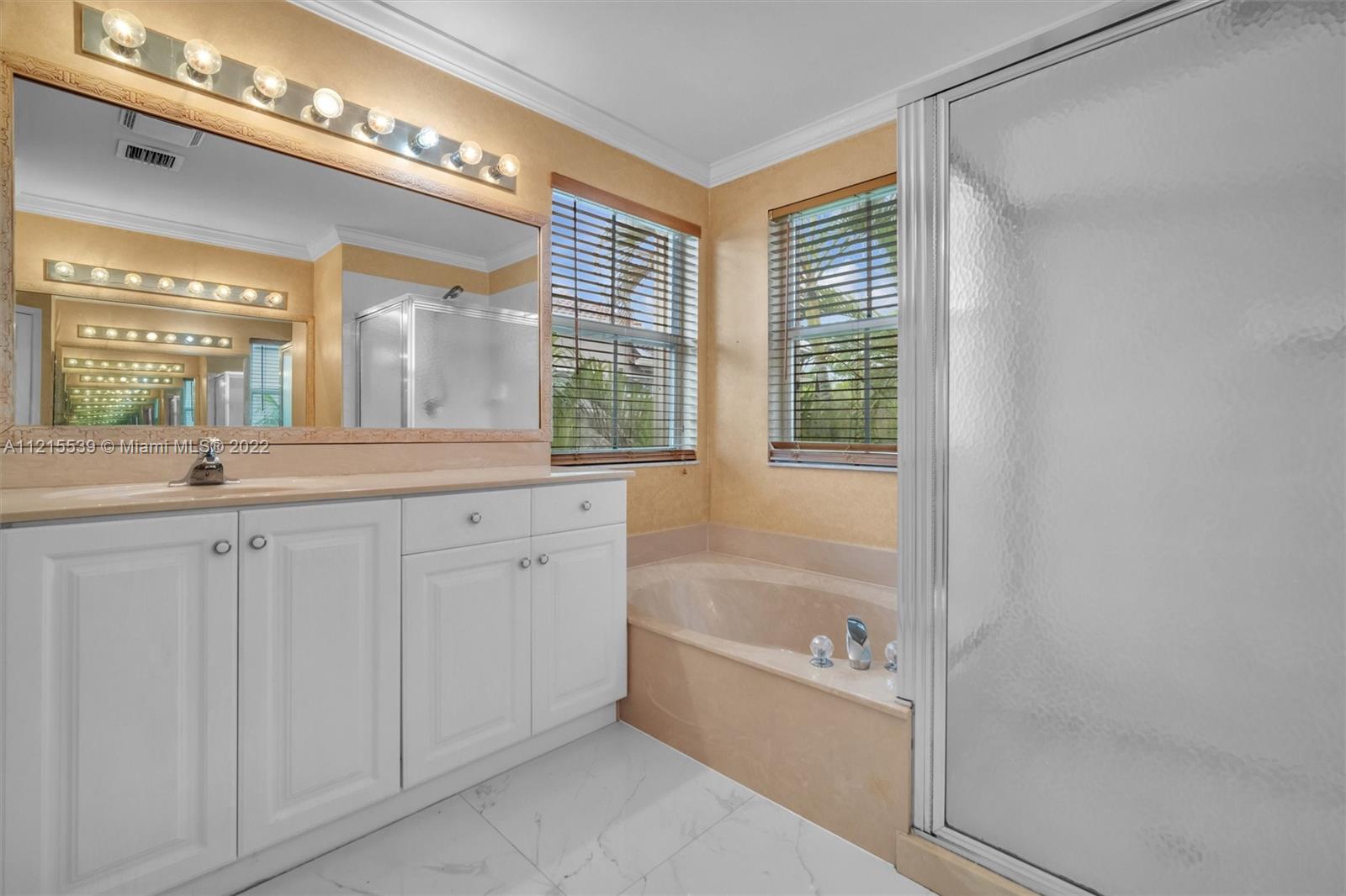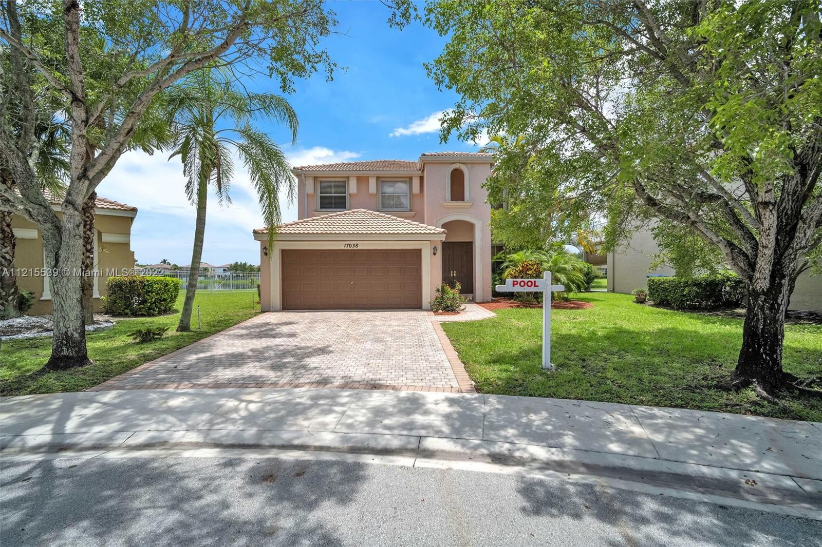 Superb tropical waterfront, pool,4 BR, 2.5 bath home in the manned-gated community of Riviera Isles in West Miramar. Huge upgraded kitchen w/ big pantry, island, wood cabinetry, granite counters, prep sink, stainless steel appliances, eat-in kitchen, more. Formal living room, formal dining, family rm, awesome new laundry room. All BR upstairs, large primary suite w/sitting area. Beautiful wide lake views, fenced yard, pool, covered patio. Resort Style amenities: manned gates, fitness center, lakeside clubhouse, tennis, basketball, huge community pool w/waterfall. Excellent location, Grade A schools. Close to Miramar Regional Park, Memorial Miramar Hospital, new shopping/dining, highways.