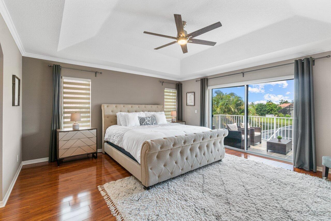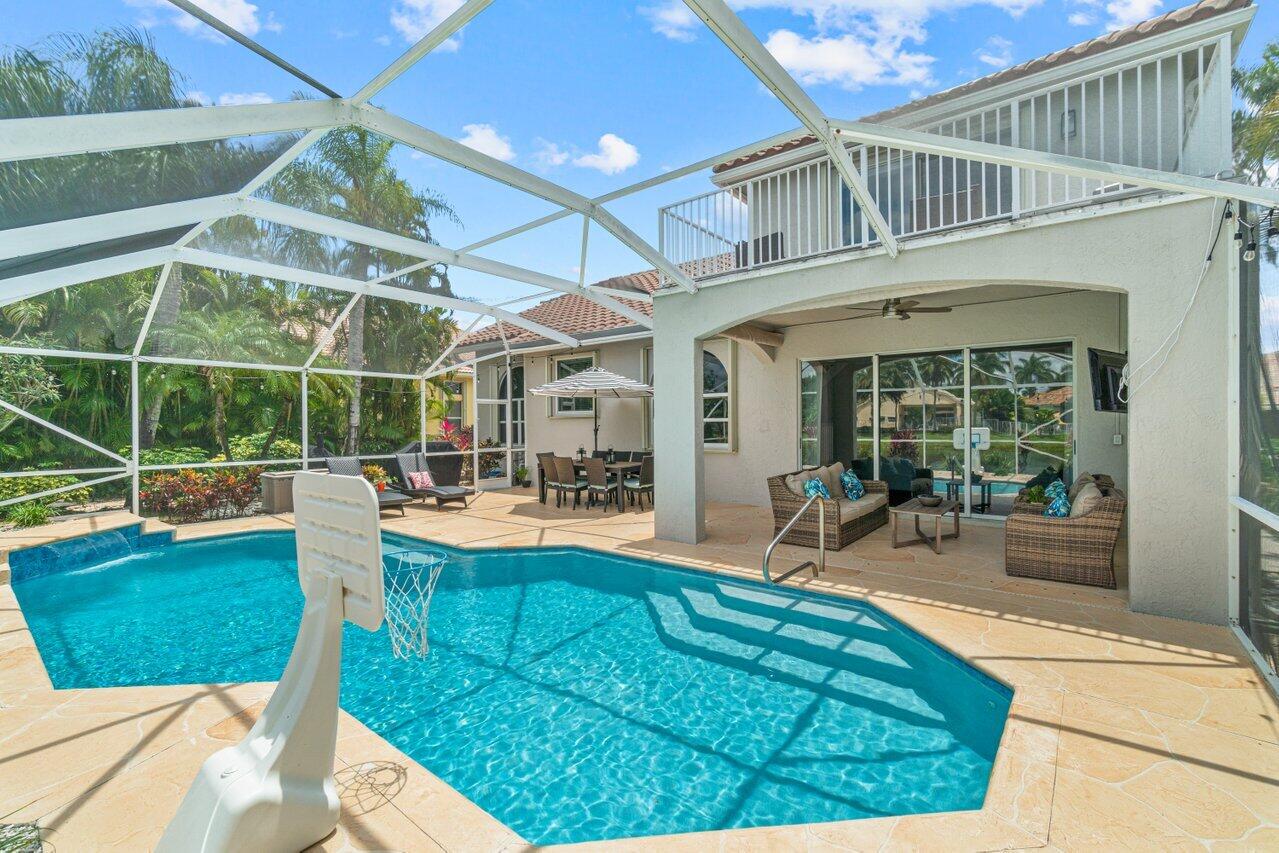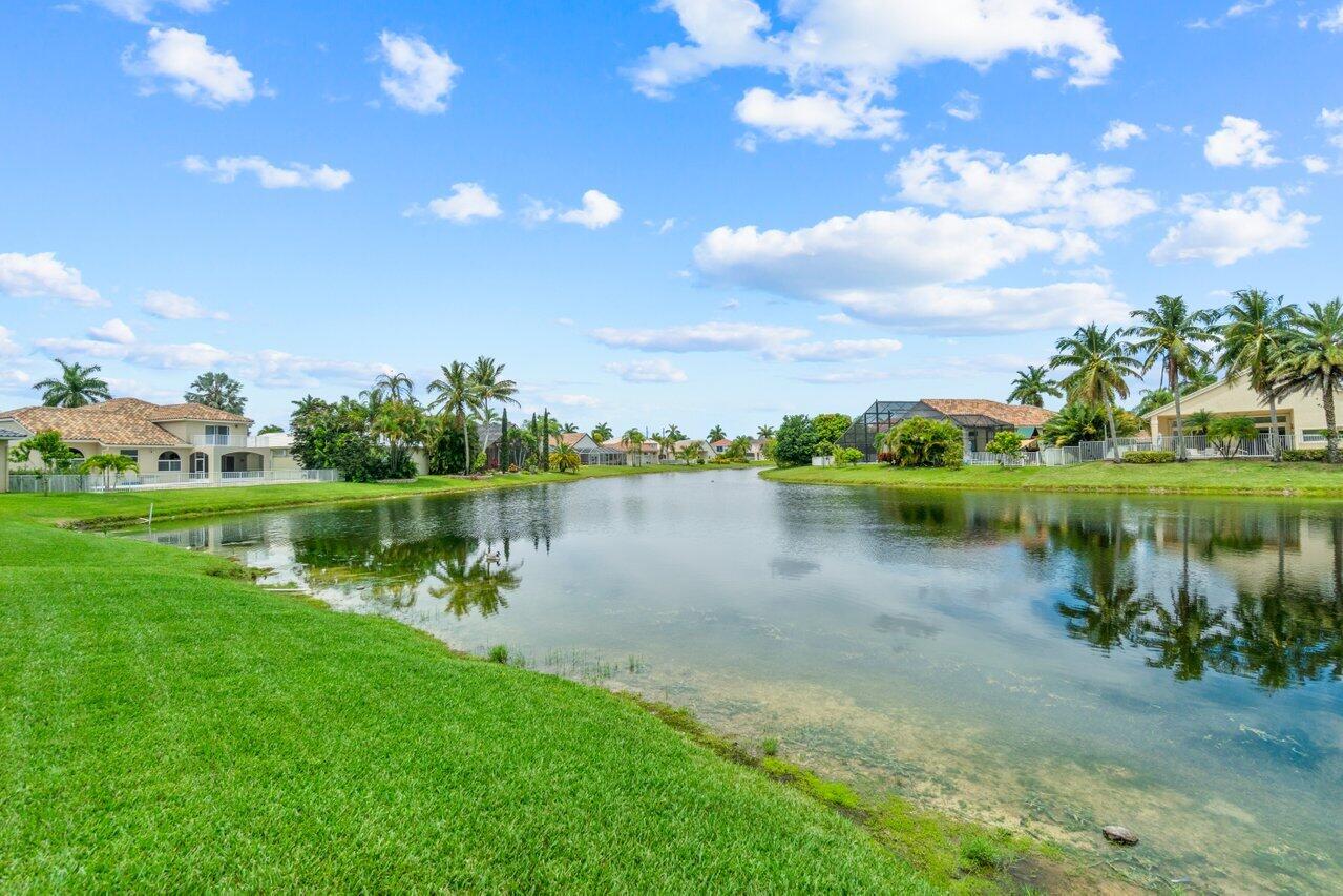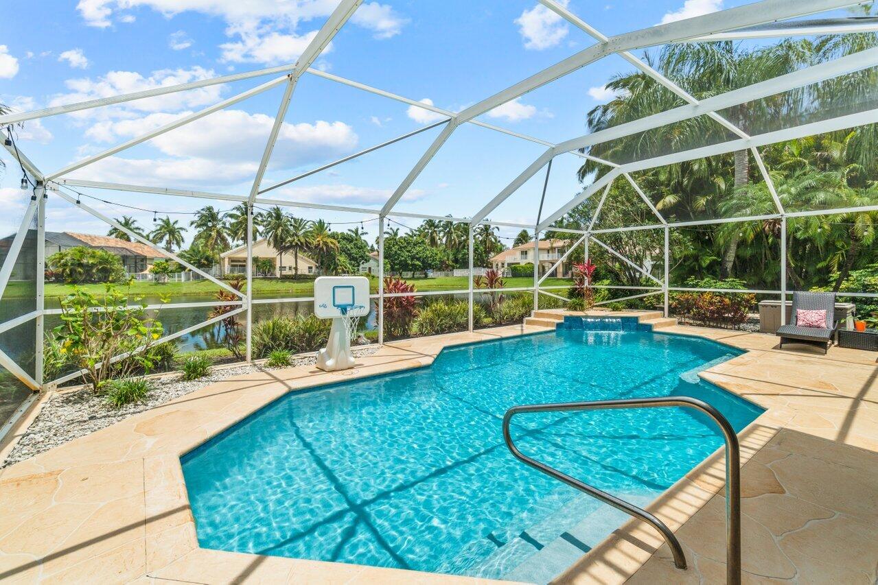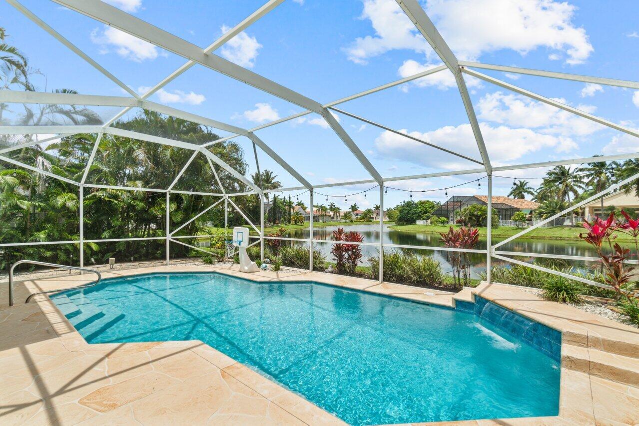 Welcome home to this stunning 4/3 single family pool home on the lake in beautiful Boca Isles South. This remodeled home has ALL the bells and whistles. Features include a fabulous updated kitchen w/ white cabinets, quartz countertops, and stainless steel appliances, updated bathrooms, 2017 roof, accordion shutters throughout, two newer a/c's (2015 and 2021), hardwood & laminate flooring, high end fixtures & fans, beautiful landscape lighting, & the list goes on. This immaculate home has a lovely open floorplan w/ 1 full bedroom & bathroom on the first floor & three bedrooms including the master suite (with its own private balcony) upstairs. Enjoy the beautiful sunsets by your private screened in pool overlooking the lake. Boca Isles South is a 24/7 gated community w/ fabulous amenities.