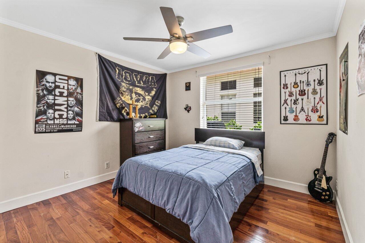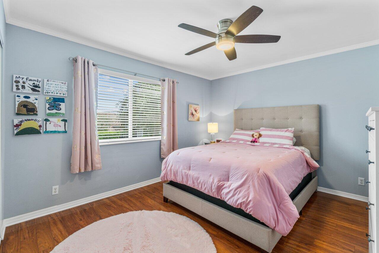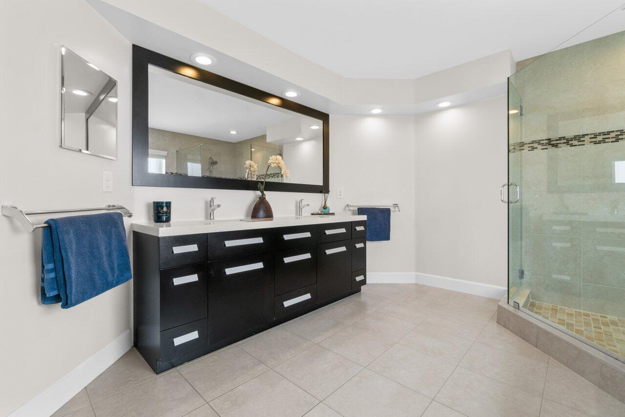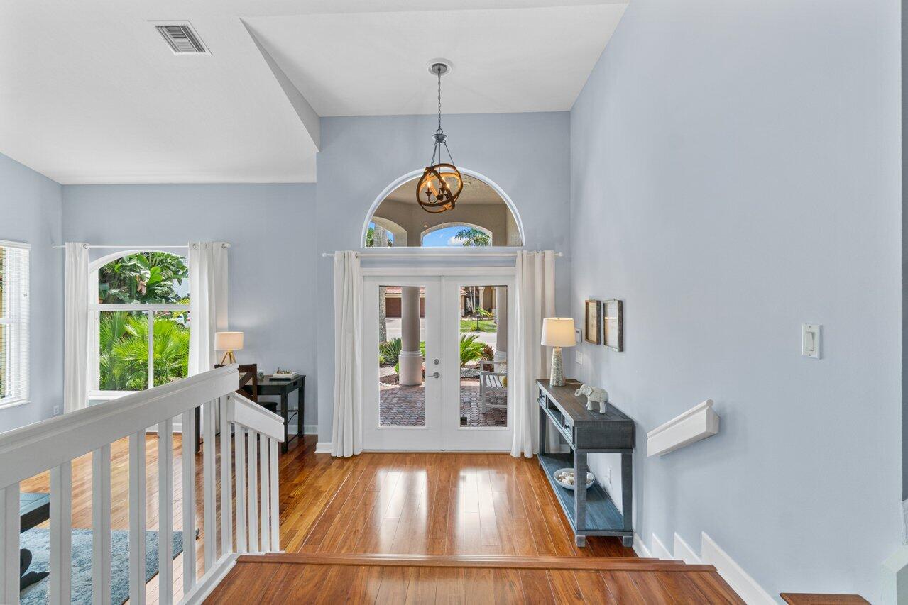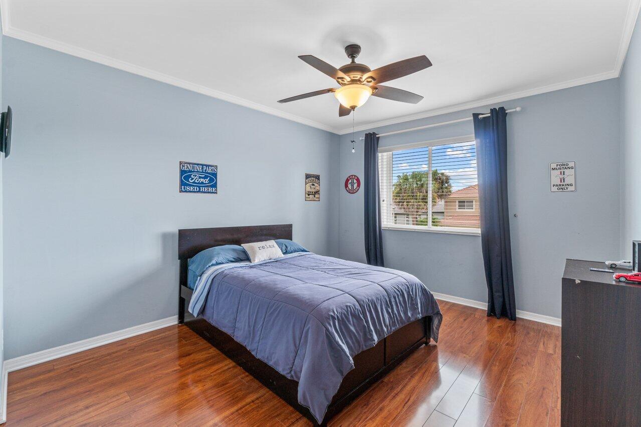 Welcome home to this stunning 4/3 single family pool home on the lake in beautiful Boca Isles South. This remodeled home has ALL the bells and whistles. Features include a fabulous updated kitchen w/ white cabinets, quartz countertops, and stainless steel appliances, updated bathrooms, 2017 roof, accordion shutters throughout, two newer a/c's (2015 and 2021), hardwood & laminate flooring, high end fixtures & fans, beautiful landscape lighting, & the list goes on. This immaculate home has a lovely open floorplan w/ 1 full bedroom & bathroom on the first floor & three bedrooms including the master suite (with its own private balcony) upstairs. Enjoy the beautiful sunsets by your private screened in pool overlooking the lake. Boca Isles South is a 24/7 gated community w/ fabulous amenities.