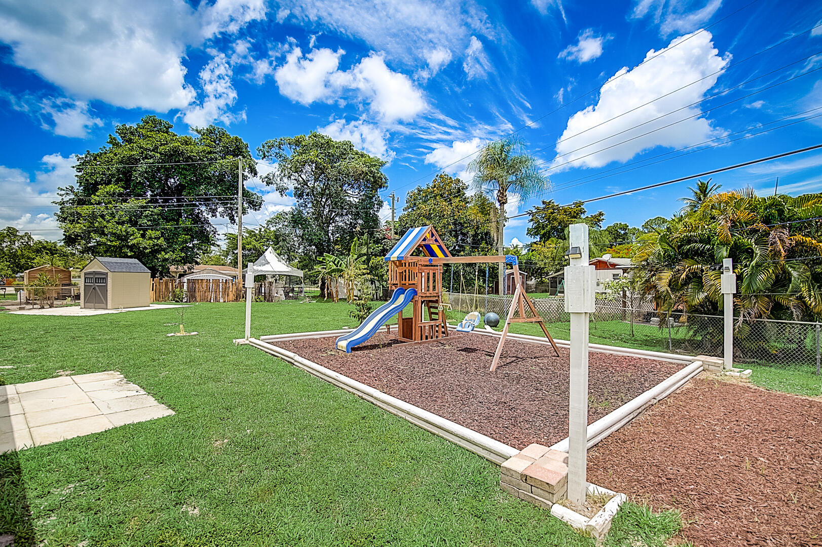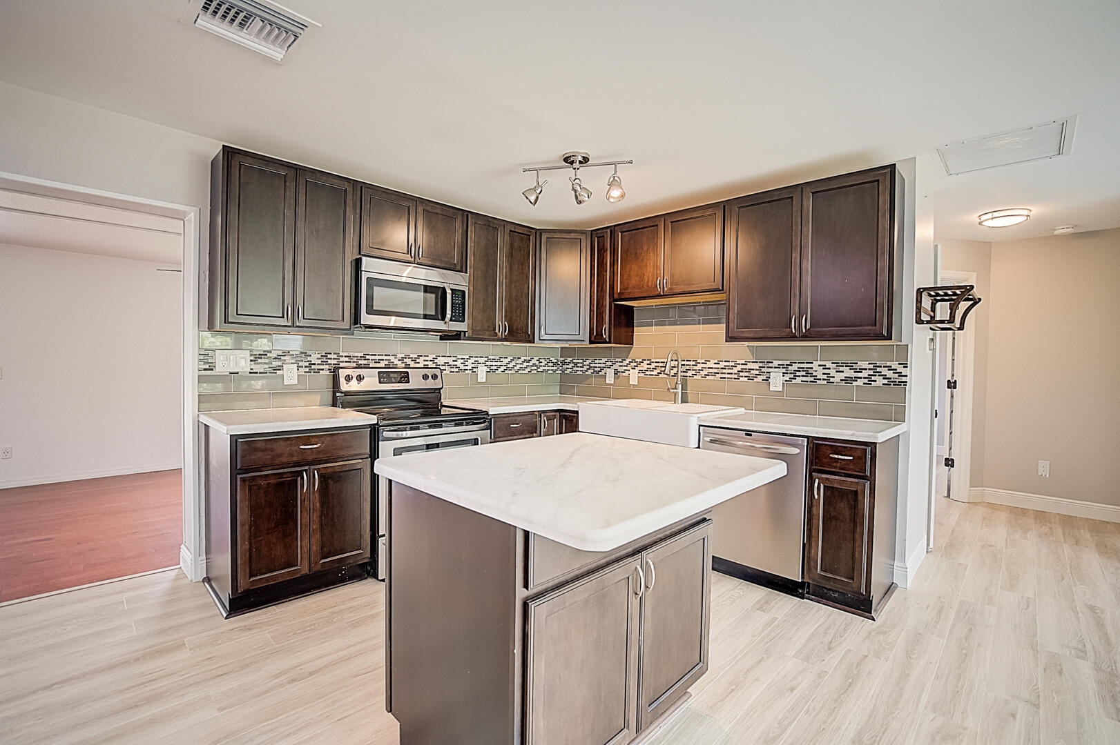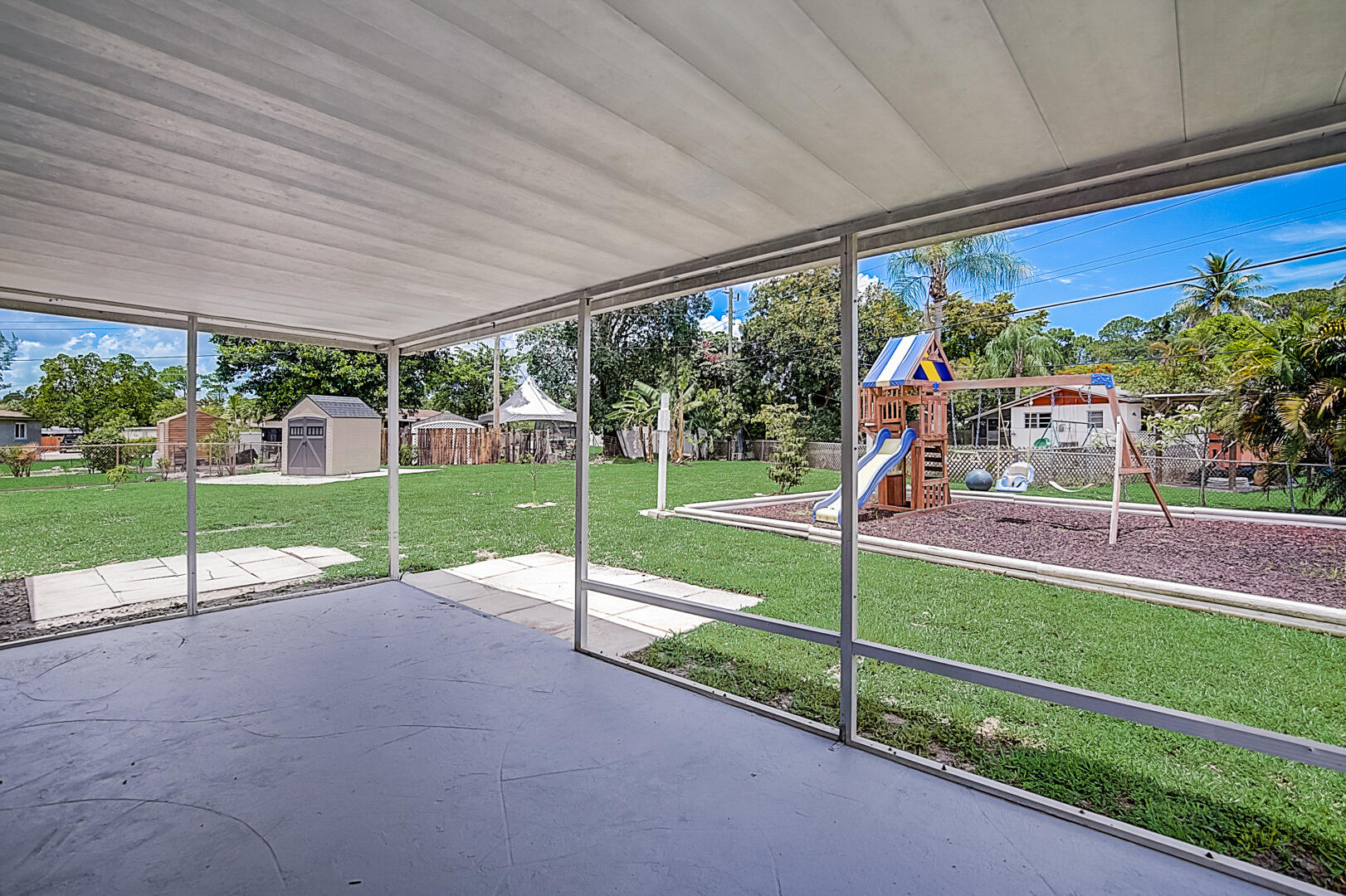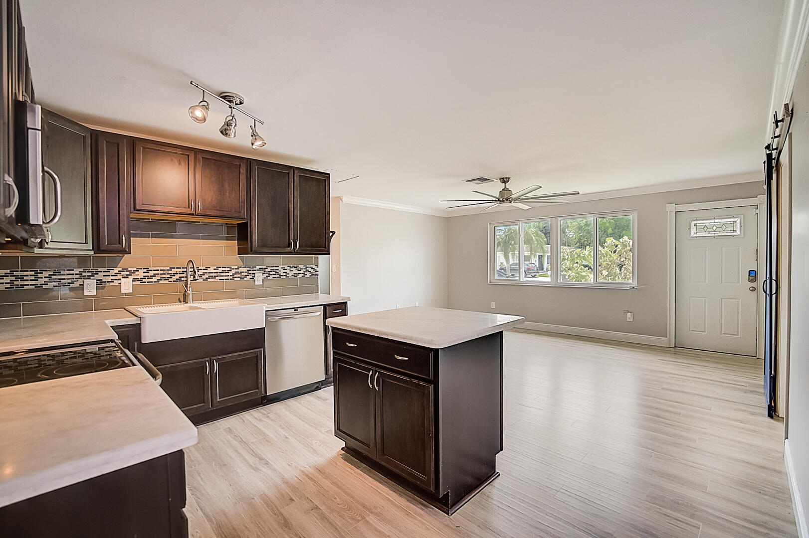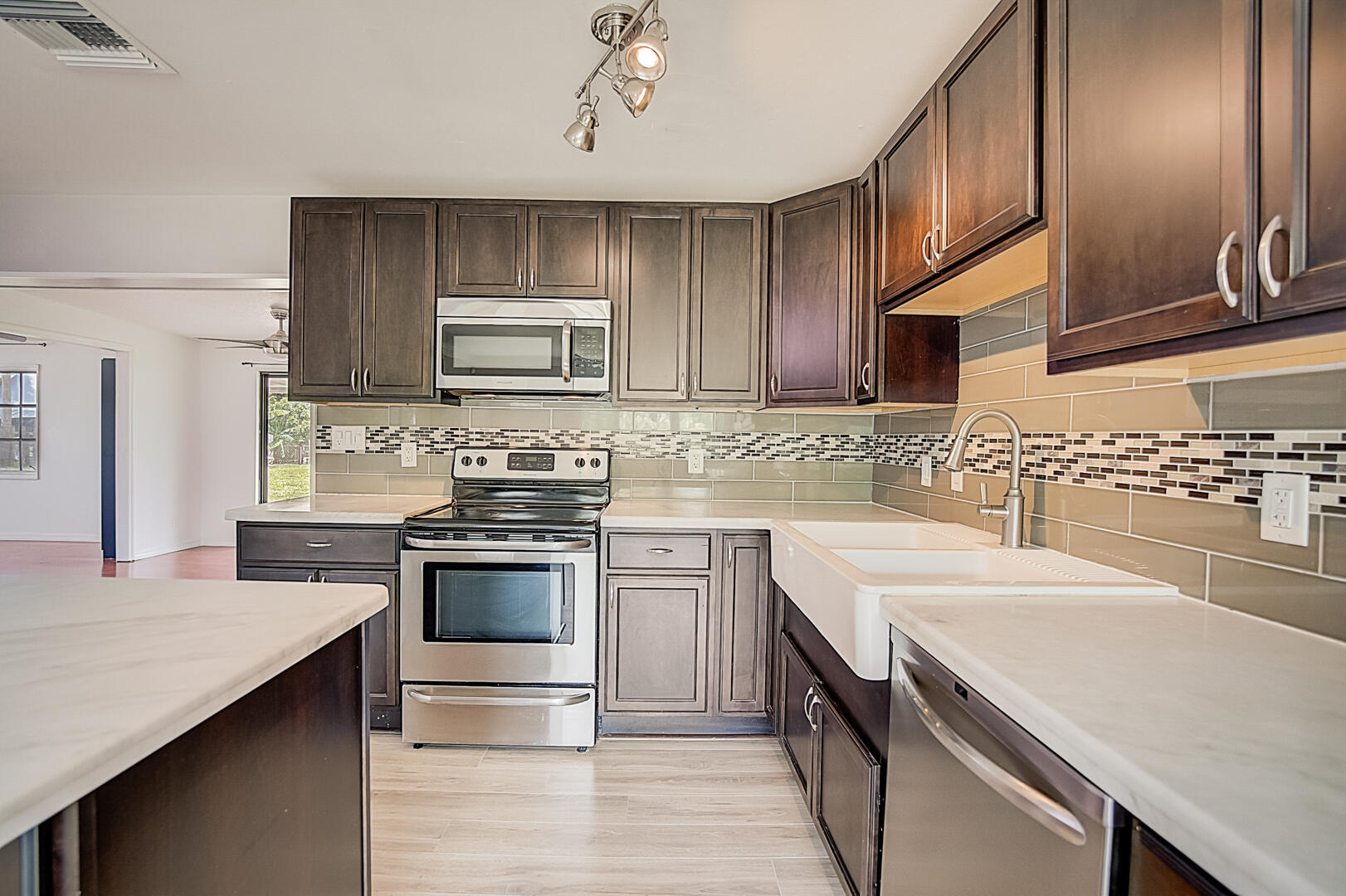 This West Palm Beach one-story cul-de-sac home offers granite countertops, and a two-car garage.
