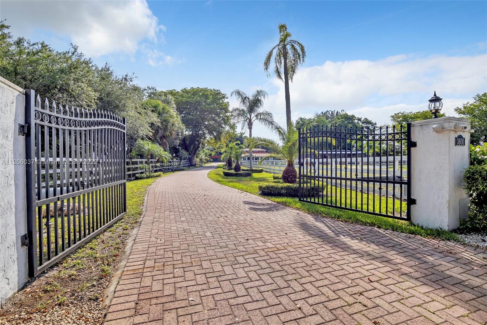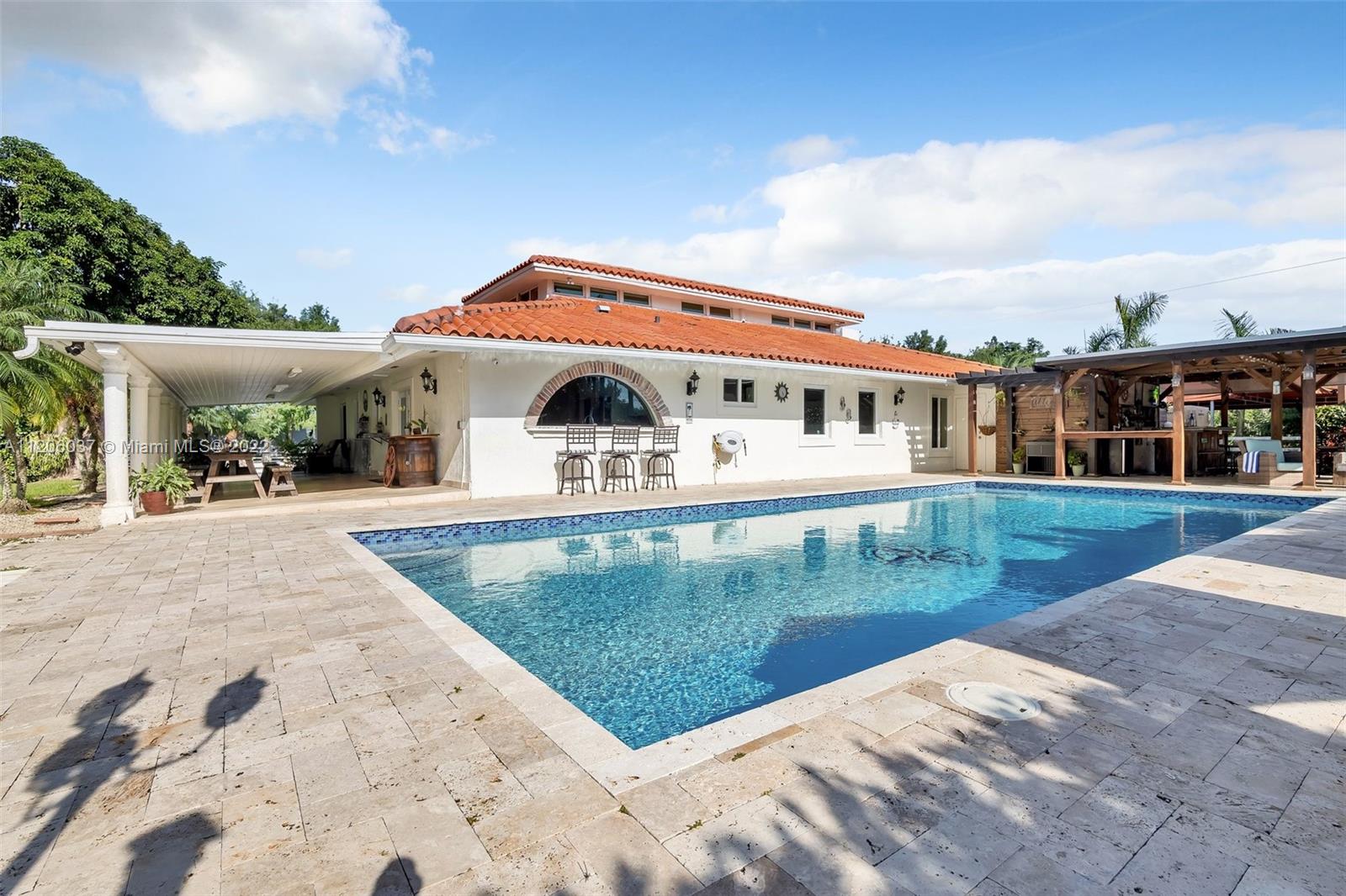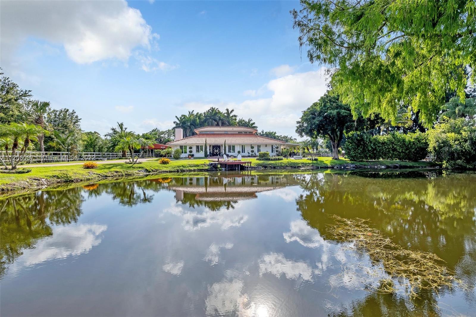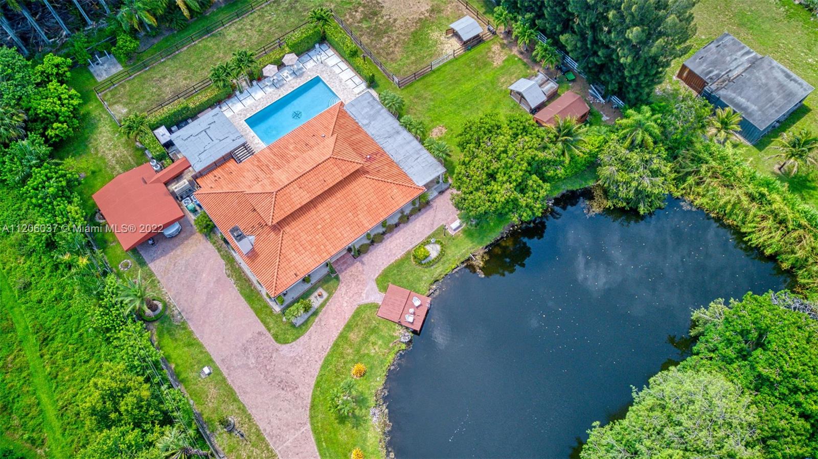 Exquisite Tropical Paradise situated on 2.5 acres with lake in the Country Club Ranches Community, Miramar. Gated secluded pool home offers perfect living space & combines city & country lifestyles.Perfect for Horse Lovers or family looking for a lot of open space. Features 5 bedrooms & 4 bathrooms + den. 2 primary suites on 1st floor,updated eat in kitchen,granite counter top & stainless-steel appliances overlooking beautiful open pool area, gazebo & bar great for gathering & entertaining,dining room, living room with a Chicago brick chimney,spacious Florida Room + full cabana bathroom,impact windows & door, large covered porch,oversized carport,long paver driveway,fully fenced,professional landscaping,private well w/new water filtration system,generator,2 horse stalls stable & much more!