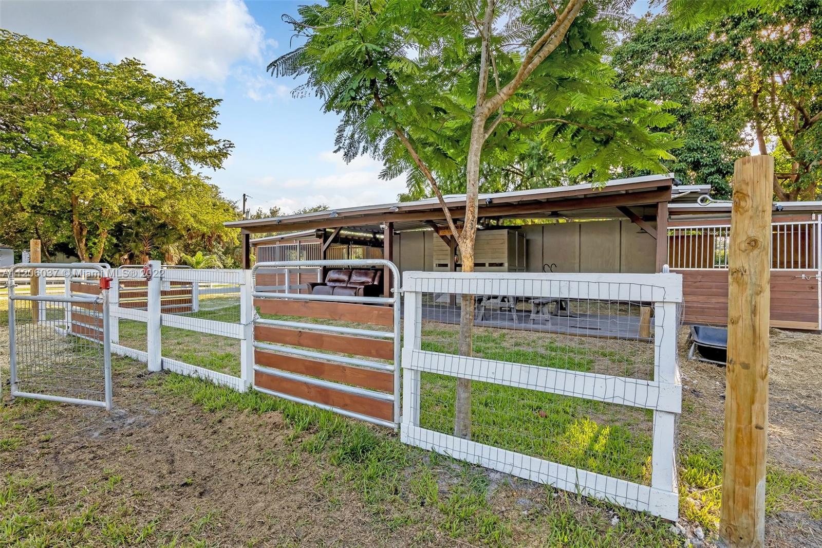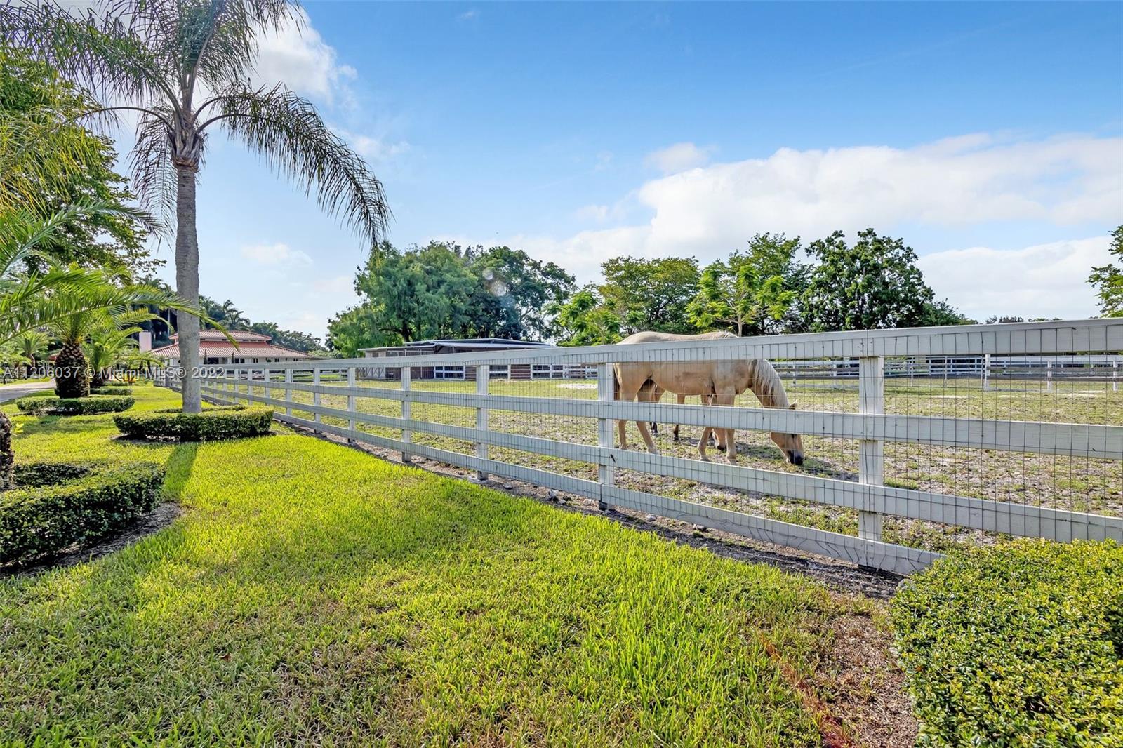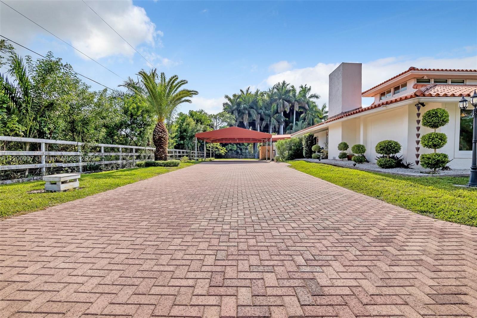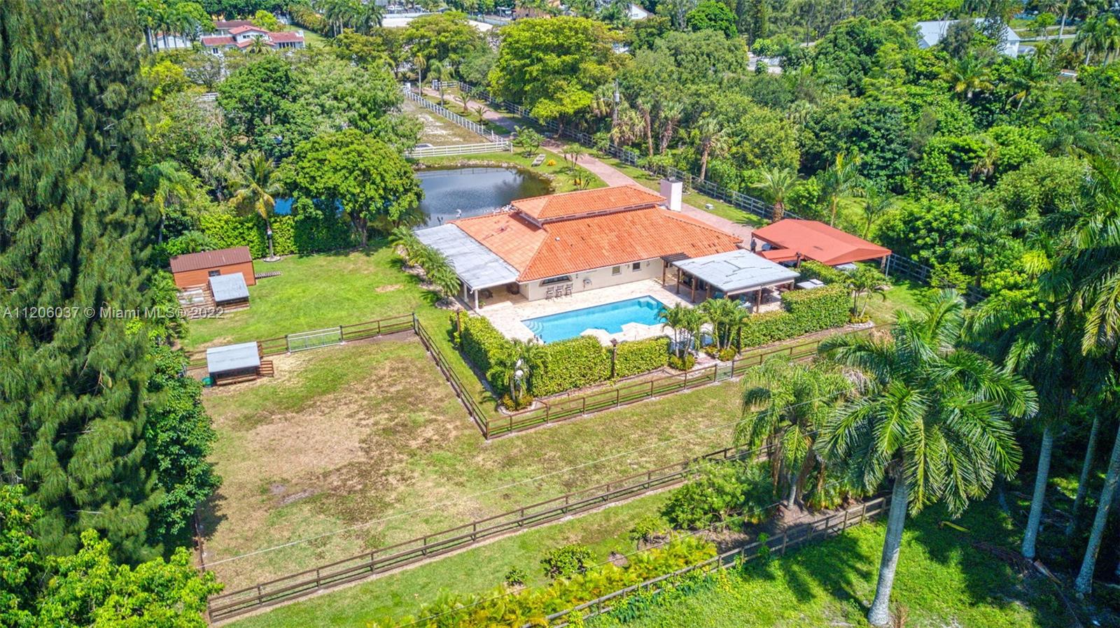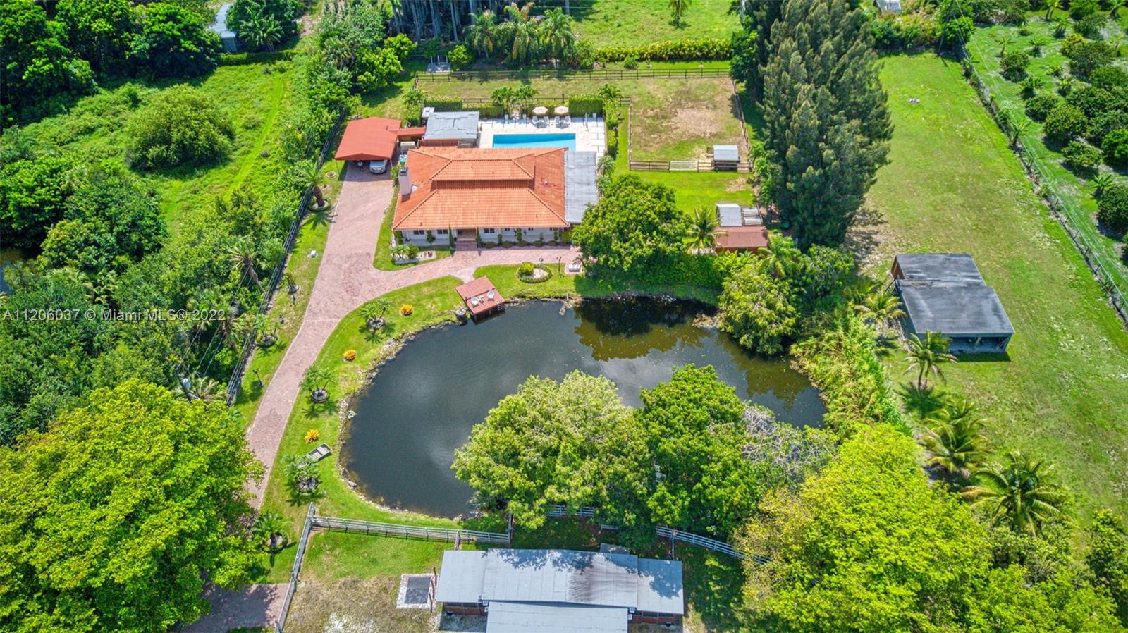 Exquisite Tropical Paradise situated on 2.5 acres with lake in the Country Club Ranches Community, Miramar. Gated secluded pool home offers perfect living space & combines city & country lifestyles.Perfect for Horse Lovers or family looking for a lot of open space. Features 5 bedrooms & 4 bathrooms + den. 2 primary suites on 1st floor,updated eat in kitchen,granite counter top & stainless-steel appliances overlooking beautiful open pool area, gazebo & bar great for gathering & entertaining,dining room, living room with a Chicago brick chimney,spacious Florida Room + full cabana bathroom,impact windows & door, large covered porch,oversized carport,long paver driveway,fully fenced,professional landscaping,private well w/new water filtration system,generator,2 horse stalls stable & much more!