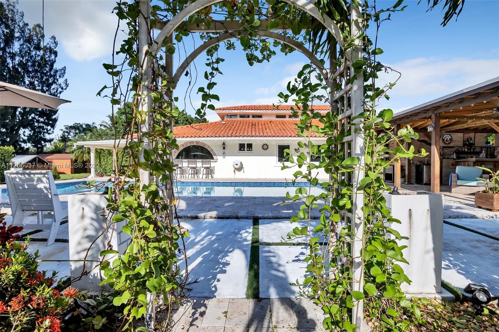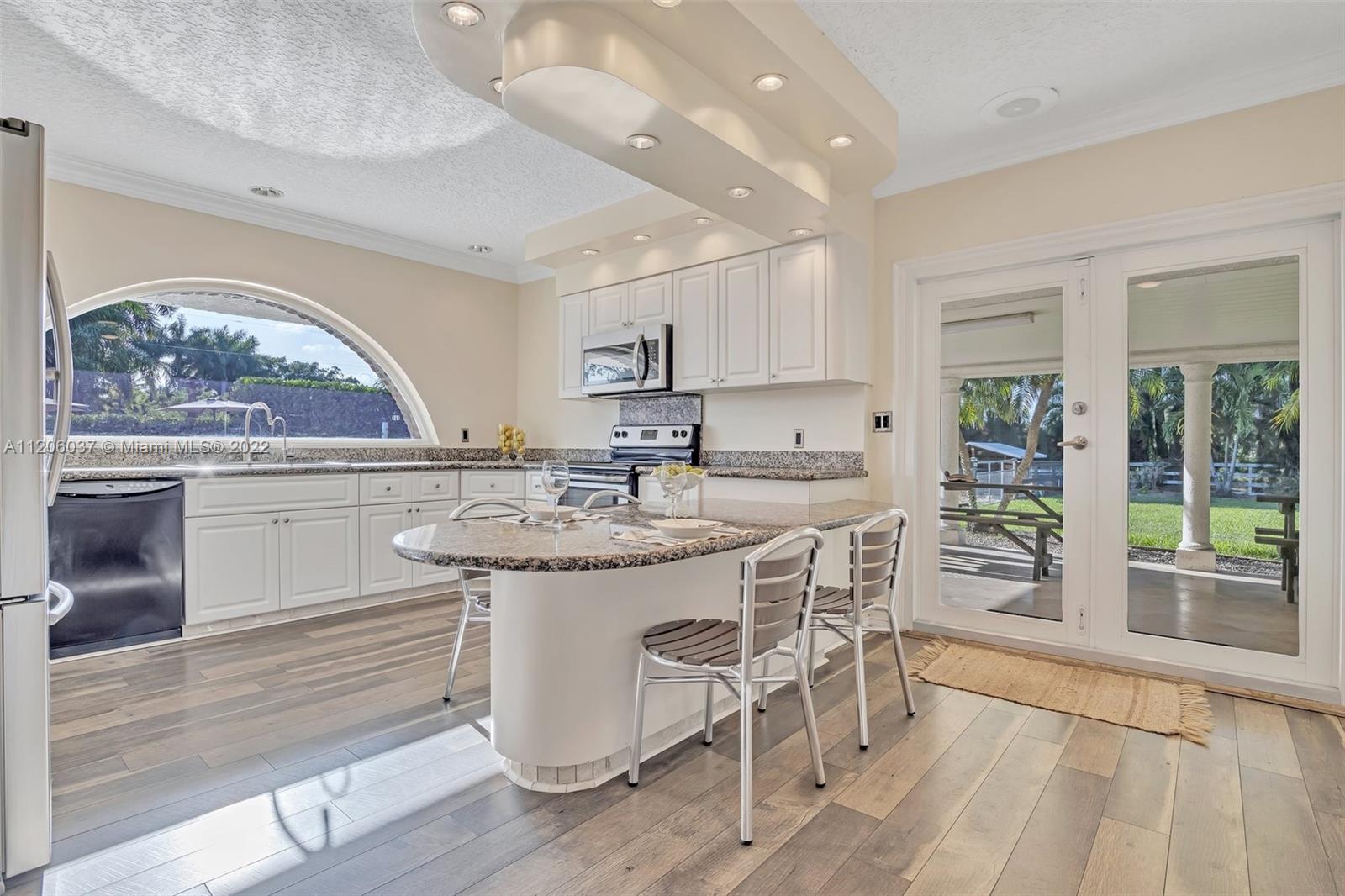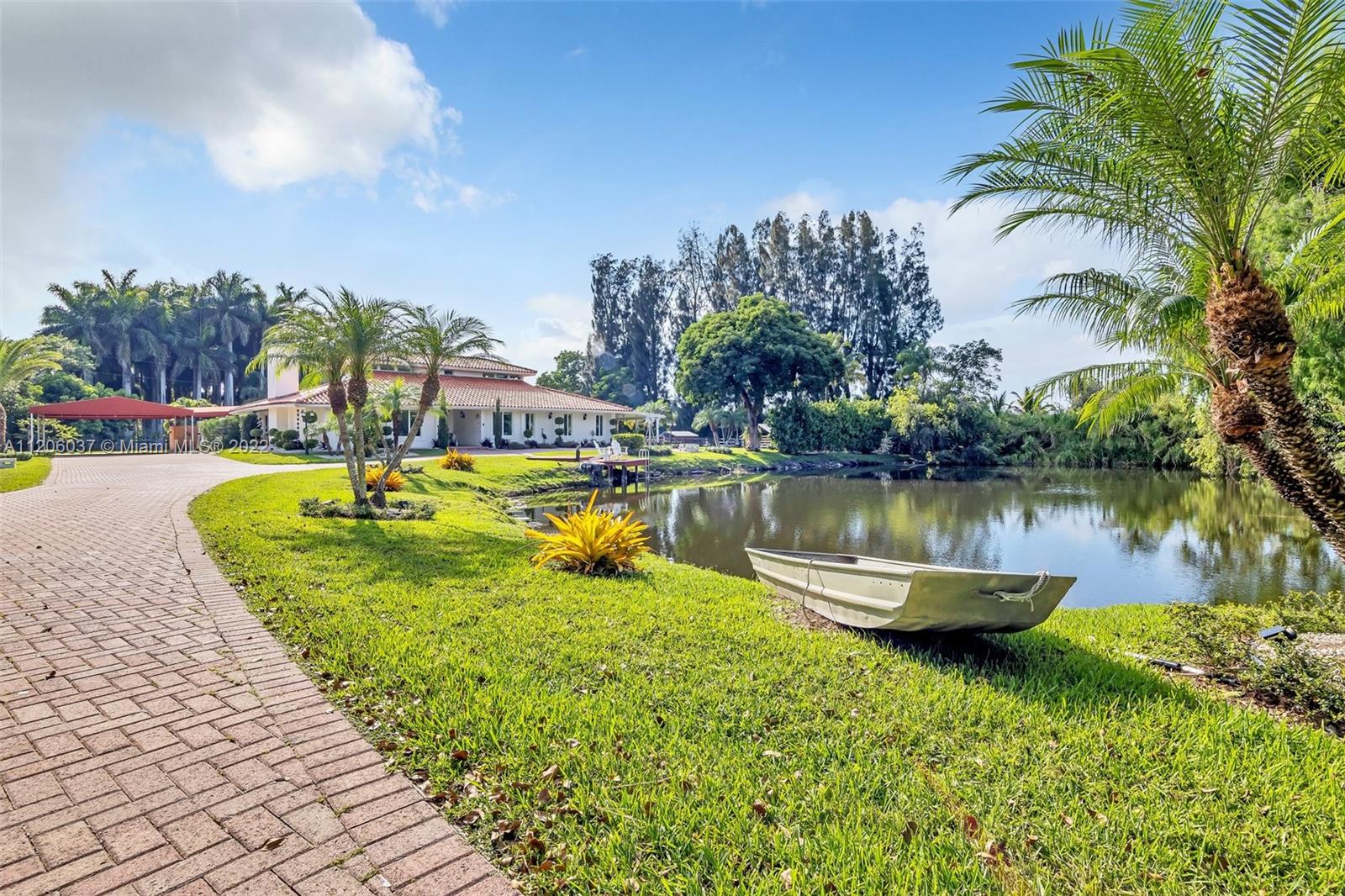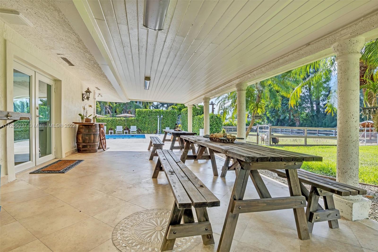 Exquisite Tropical Paradise situated on 2.5 acres with lake in the Country Club Ranches Community, Miramar. Gated secluded pool home offers perfect living space & combines city & country lifestyles.Perfect for Horse Lovers or family looking for a lot of open space. Features 5 bedrooms & 4 bathrooms + den. 2 primary suites on 1st floor,updated eat in kitchen,granite counter top & stainless-steel appliances overlooking beautiful open pool area, gazebo & bar great for gathering & entertaining,dining room, living room with a Chicago brick chimney,spacious Florida Room + full cabana bathroom,impact windows & door, large covered porch,oversized carport,long paver driveway,fully fenced,professional landscaping,private well w/new water filtration system,generator,2 horse stalls stable & much more!