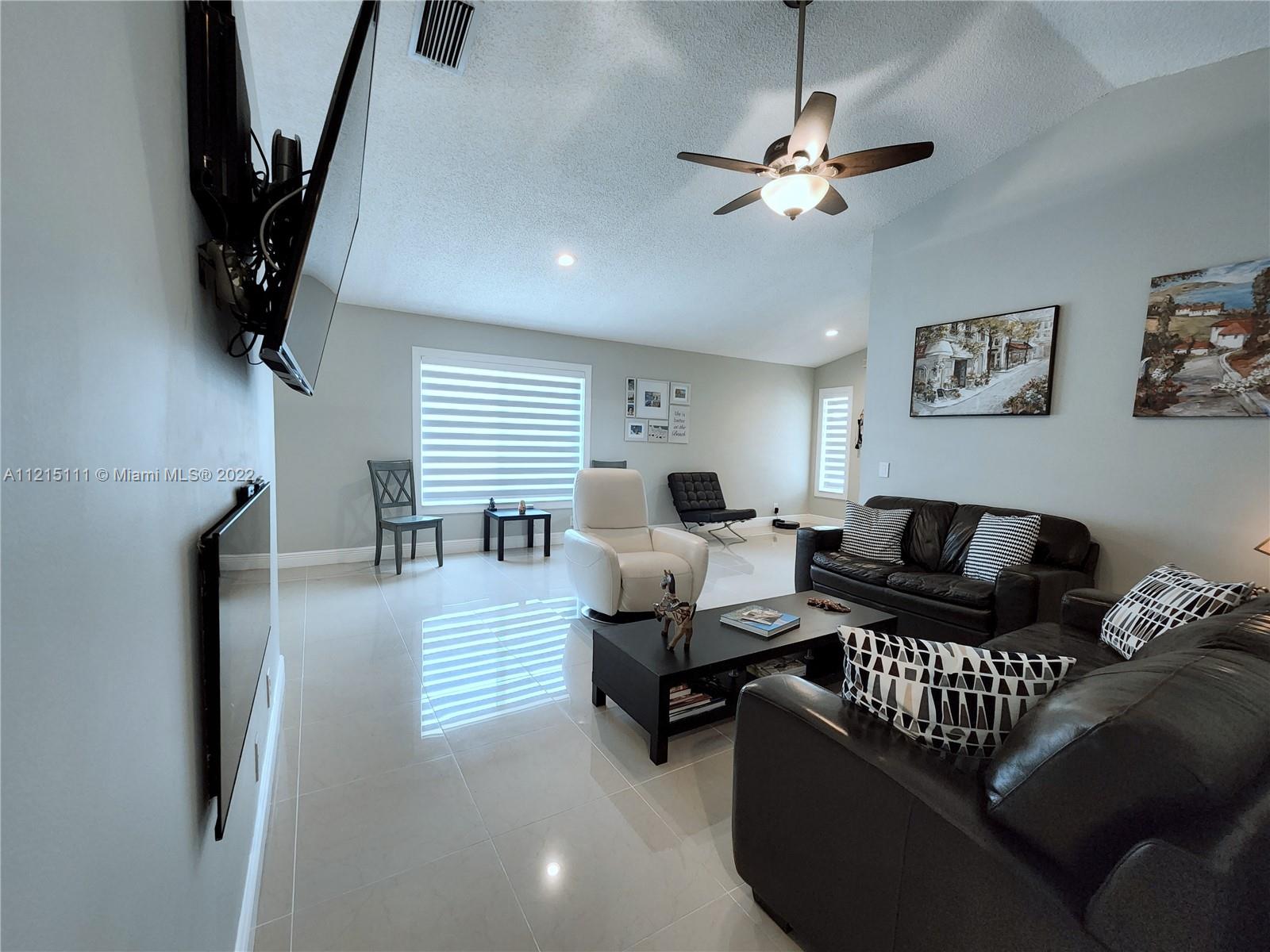 This charming renovated one-story home of 3 bedrooms/ 2 bathrooms is full of Upgrades! (Over $70'000) Enjoy the open floor plan w/ porcelain tiles. The beautiful kitchen w/ Stainless Steel Appliances is the heart of the Home, in the rooms you will find custom made closets. Brand New High Impact Windows & Doors W/ Smart New motorized Curtains throughout the entire home. Updated & New Smart: lighting, Ceiling Fans & Lawn Sprinklers. Save a lot of money in your next water bill with it. New Electric Heater, New AC, Reverse Osmosis filter & last but not least: Enjoy your New INSULATED Garage (2 cars) w/ New Cabinets. Actually, is used as a Gym, Office & Game Room. Come to see your move-in ready Home in the desirable gated community of The Ridges an A+Schools Zone. Hurry, it won't last!