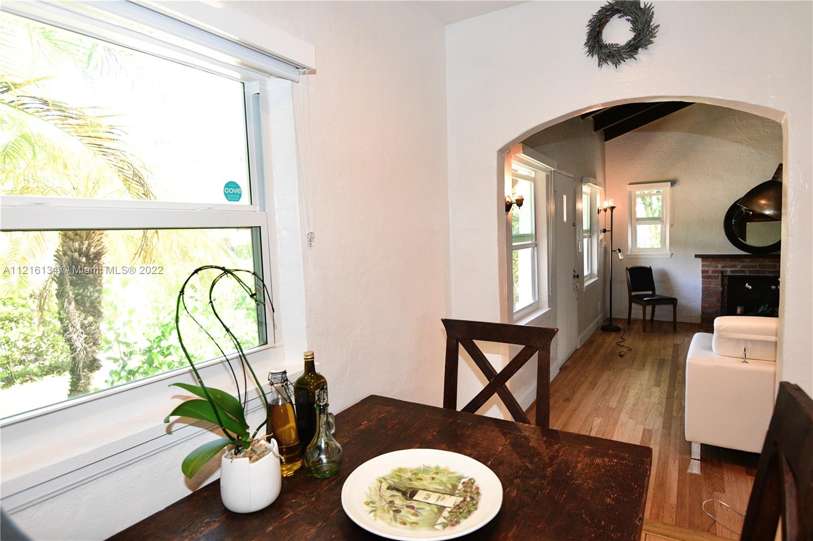 Welcome to Miami Shores! Welcome to this adorable 2bed/1bath jewel-box bungalow located just 2 blocks from downtown Miami Shores. This home is full of charming specific period details such as vaulted wood beam ceilings, fireplace, decorative wall niches, pristine original polished wood floors and a fully remodeled bathroom. Step out back to a sprawling yard with plenty of room for entertaining and expansion in addition to fruit tress. Additional features: bright eat-in kitchen, impact windows, new roof (2019), newer A/C, newer tankless water heater, updated electric, new gutters, and more! Detached 1 car garage with automatic door. Hurry up! This is your chance to be in the Shores under $650k!