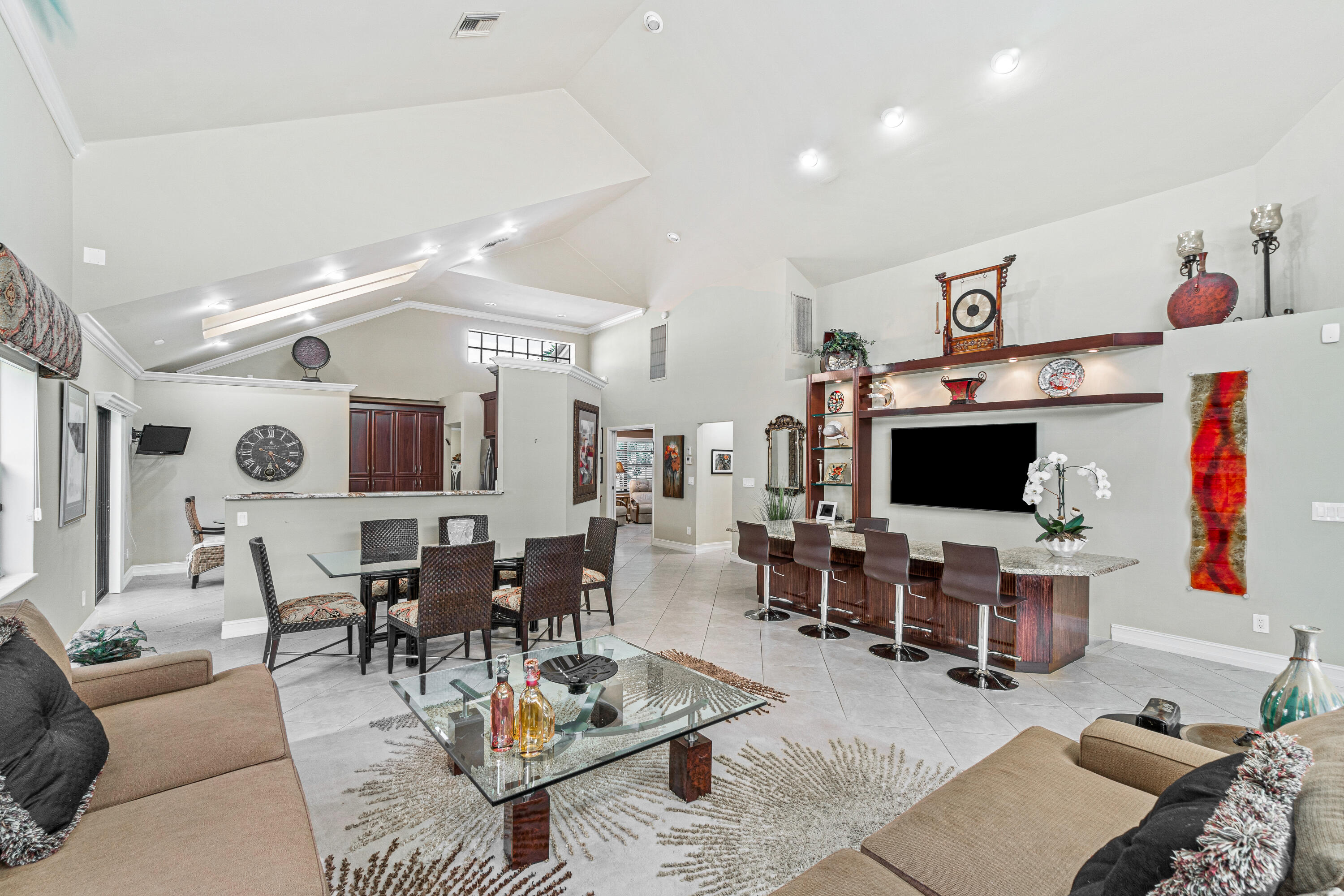 This charming updated home is located on the golf course (currently under construction and being redesigned) in The Polo Club. Upon entering you will be impressed by the sun-filled soaring ceilings in the great room. The perfect split floor plan starts with one en-suite guest bedroom. A second bedroom offers the dual purpose of an office/den to fit everyone's needs. And the primary bedroom is spacious, has outfitted closets and a completely redesigned bathroom retreat. The remodeled eat-in-kitchen creates a perfect balance of an open concept to great room while offering privacy upon entering the home. This is a great home to entertain with a spacious bar that is surrounds the media feature wall in the great room. Double sliding doors open to the screened-in patio that reveal the brand new