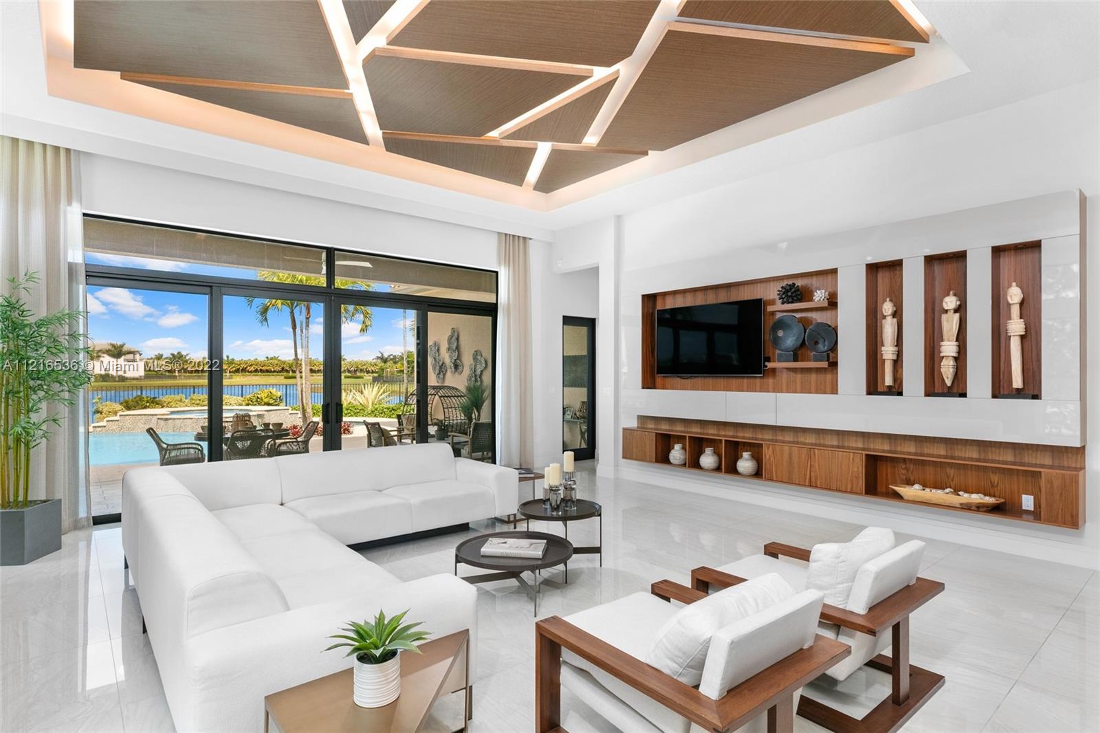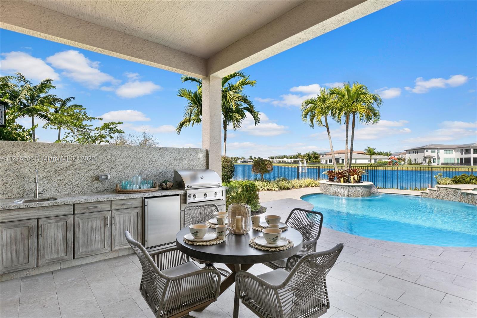 This hidden gem sits on the most desirable oversized lot at the end of the cul-de-sac with wide water views giving it the utmost privacy. An additional 2,000 Sq Ft can easily be built, increasing the living square footage to over 5,100. (Plans attached). Newly built single story model unit with over $750,000 in upgrades. Great room floor plan with 15 ft ceilings leading out to your peaceful lagoon style swimming pool designed with a waterfall spa overlooking breathtaking lake fountain views. This home features 4 bedrooms, all en suite, with walk-in closets, a den, and a gourmet kitchen. Located in the highly sought-after Boca Bridges community offering a 27,000 sq ft clubhouse complex that includes a restaurant with full service pool, bar, game room, fitness center, tennis courts, & more.