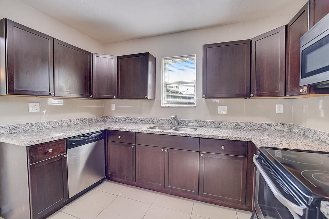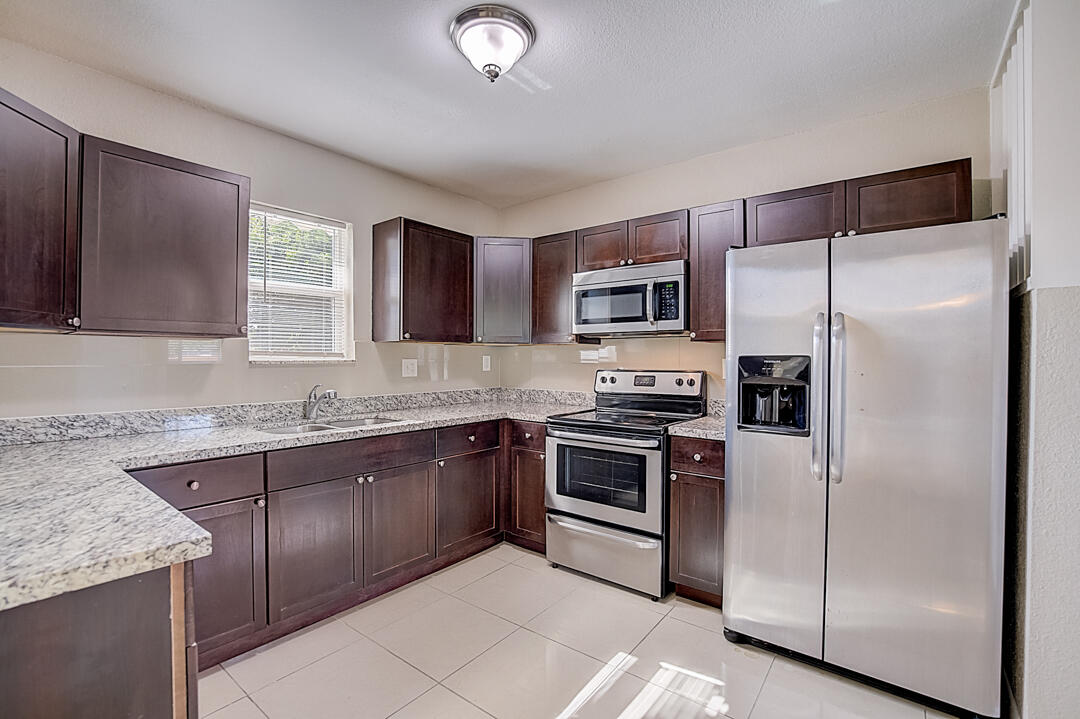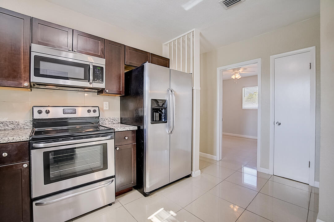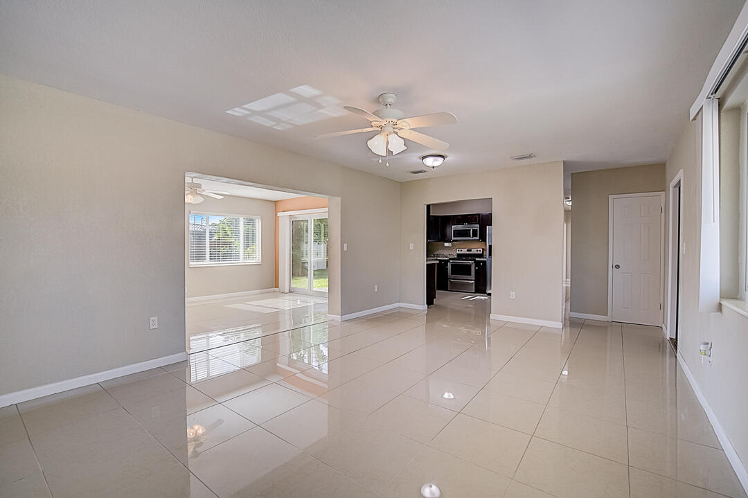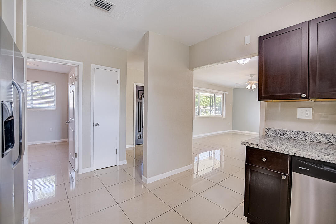 This charming 3 bedroom, 2 bathroom home is now on the market! The kitchen boasts generous counter space and a breakfast bar, making cooking and entertaining a delight. Step inside this beautiful interior with tile floors throughout, plenty of natural light, and neutral palette. The main bedroom boasts a private ensuite and walk-in closet. Other bedrooms offer ceiling fans, and sizable closets. Relax with your favorite drink in the fenced in backyard with a patio, lush grass, and great opportunity for adding personal touches. Don't miss this incredible opportunity.