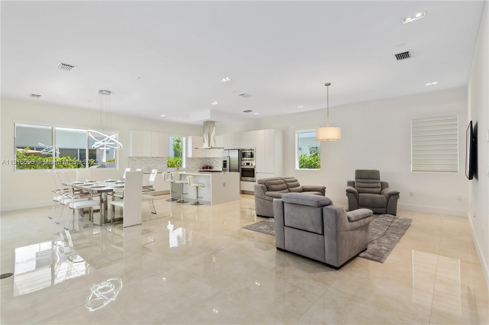 The modernist architecture along with open floor plan gives a wow effect immediately upon entering the house. The 2-story home features 6 bedrooms and 7 bathrooms. 1 bedroom with private bathroom is conveniently located on the main floor. Marble floors, imported Italian Kitchen, Viking & Bosh appliances. High impact windows hurricane proof. Tall 10-12 feet ceilings. Located in the highly sought after gated community of Modern 60, the low HOA gives you access to a state of art Club House with all amenities. With direct access to the Turnpike and Palmetto Pkwy, this home is centrally located: 15 minutes to Miami International Airport, 30 minutes to Miami Beach, walking distance to shops and restaurants. A rated schools! **Dial 4988 at the gate to request access ** SECURITY DOES NOT LET IN!