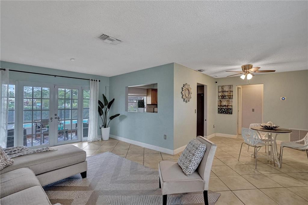 You will be AMAZED! A friendly charmer sitting pretty on prime waterfront property. Sellers can close quickly and without a post-occupancy. Contemporary custom in-ground pool, patio, lushly landscaped on waterway. You will enjoy EASY ENTERTAINING in a timeless screened porch. FRENCH DOORS. Modern kitchen, molded cabinets, granite and SS appliances. Roomy living room. Convenient dining area just off kitchen. Neutral flooring enhances social areas and SPACIOUS bedrooms. UPDATED baths, spa tub. Take a look at GORGEOUS high resistance 2018 METAL ROOF. Air-conditioned garage, R/O deionized water system, working sprinkler system, storage sheds, hurricane protection, SAFETY FENCE at pool, ceiling fans, exterior paint and so much more makes this a great choice. No HOA. Check it out!