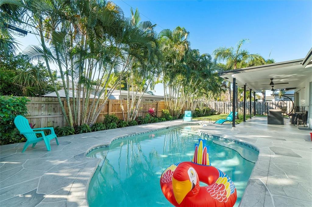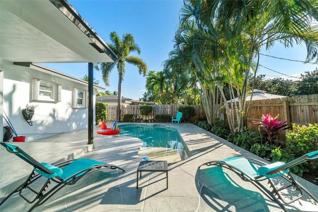 Located East of US-1 in Pompano Beach, this 4 bedroom split floor plan home is perfect for a primary residence or a vacation home as it is being offered fully furnished. This home has it all, new impact windows and doors throughout as well as brand new vinyl floors and trim. Both bathrooms have new vanities, mirrors, and plumbing fixtures. The kitchen features beautiful quartz countertops, newer appliances, and an oversized sink that looks over the pool/ covered patio area. Outside you will find recently done lush landscaping, fresh exterior paint, a brand new driveway, and pool deck! The whole family will enjoy the gorgeous yard and pool! The owners have also installed a security system with cameras and digital front door lock. Less than 10 minutes to the beach! Don't miss this!