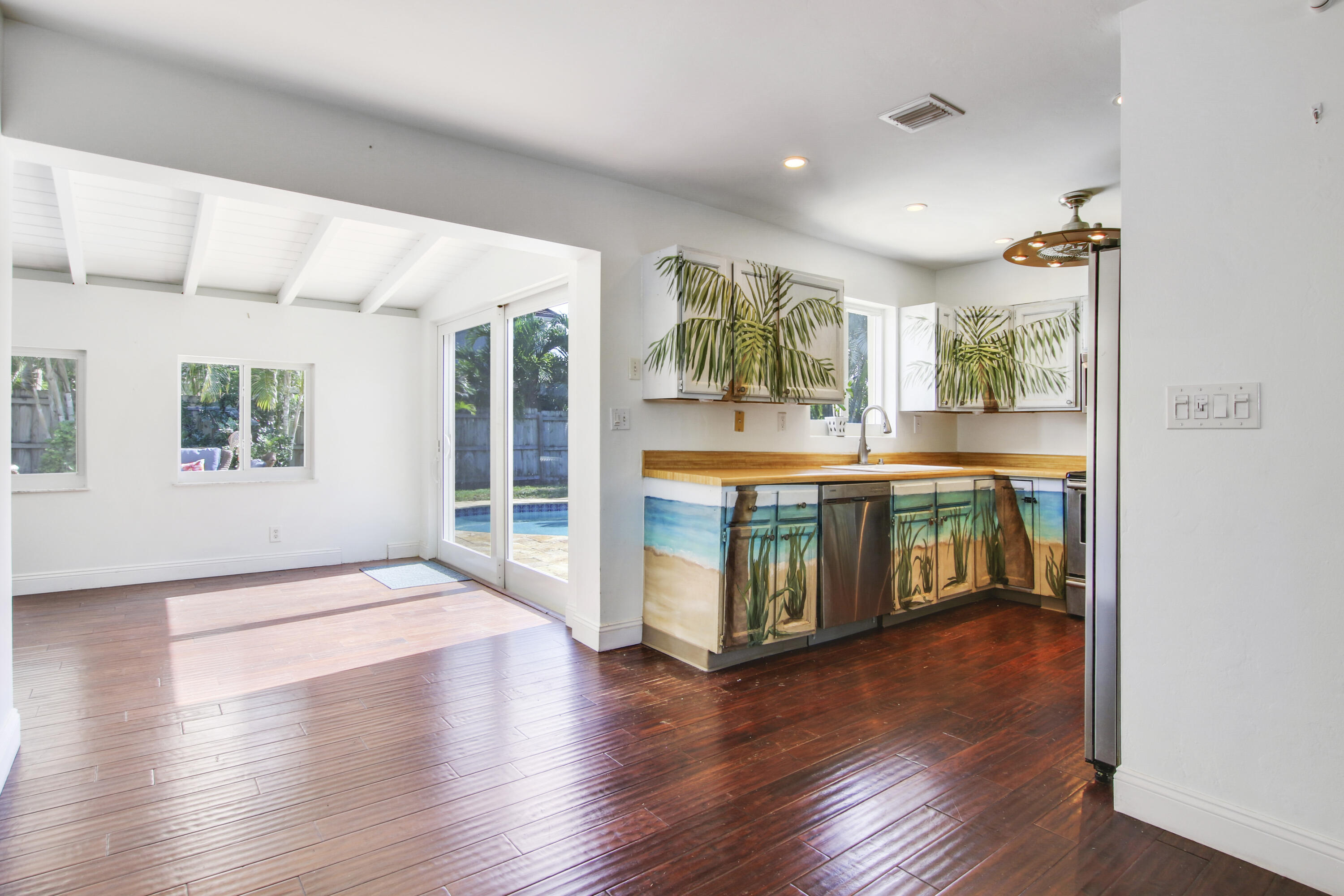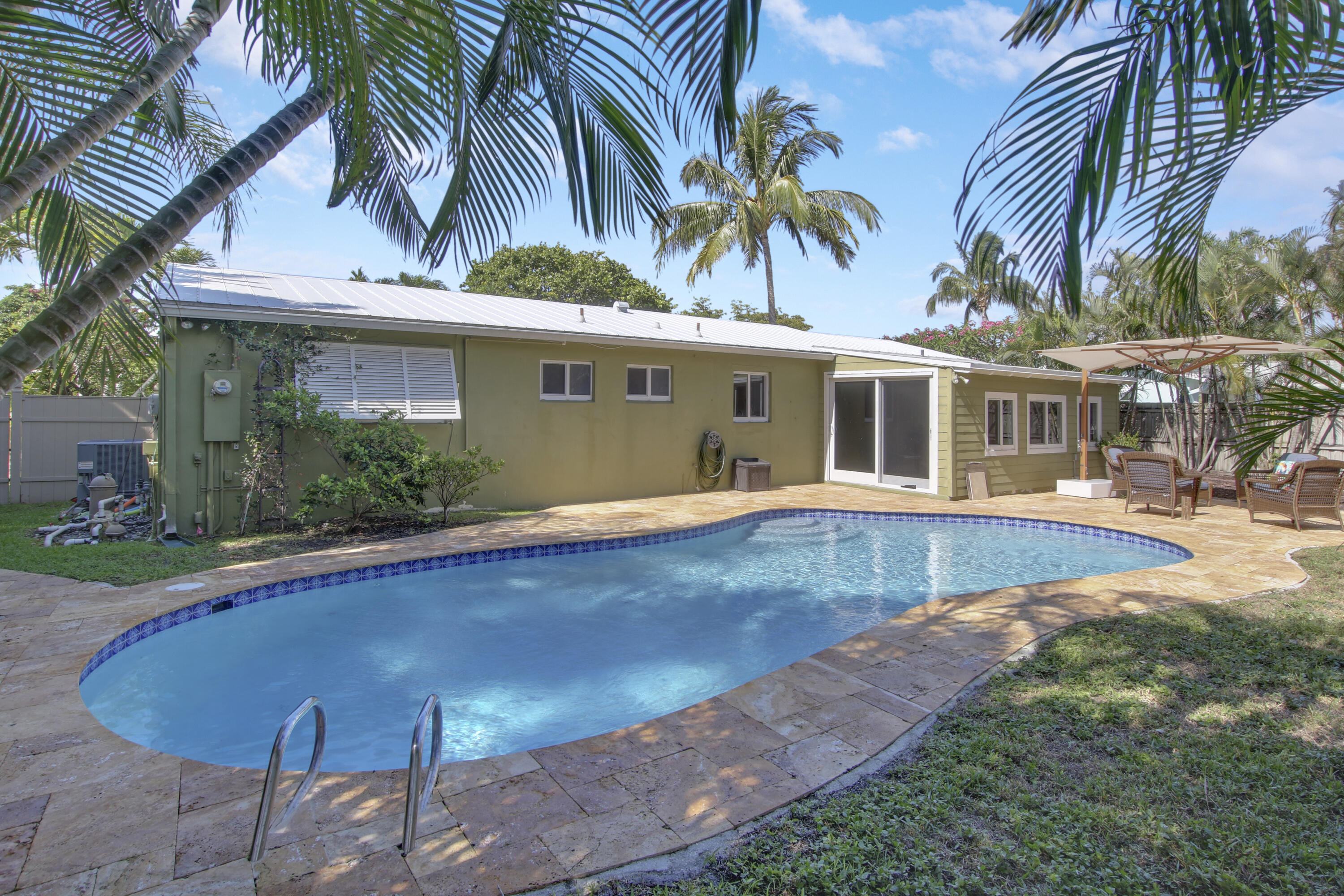 Nestled 9 homes away from iconic Flagler Drive, 145 Gregory Place is ideally located and just minutes away from all that thriving West Palm Beach has to offer. The home is a blank canvas and ready for a new owner to transform the property into their own. Equity still abounds if you add on or raise and build new. The possibilities are endless with this 3 bedroom, 2 bathroom, 1 car garage pool home. The swimming surface and travertine deck are like new and all pool components with variable speed pump have been refreshed. The HVAC is less than 2 years old, and the metal roof has 30 years of life left. The bones of this charmer are strong and would appeal to many different buyers types and tastes. Located in a highly sought after SO-SO location, amazing public and private schools,