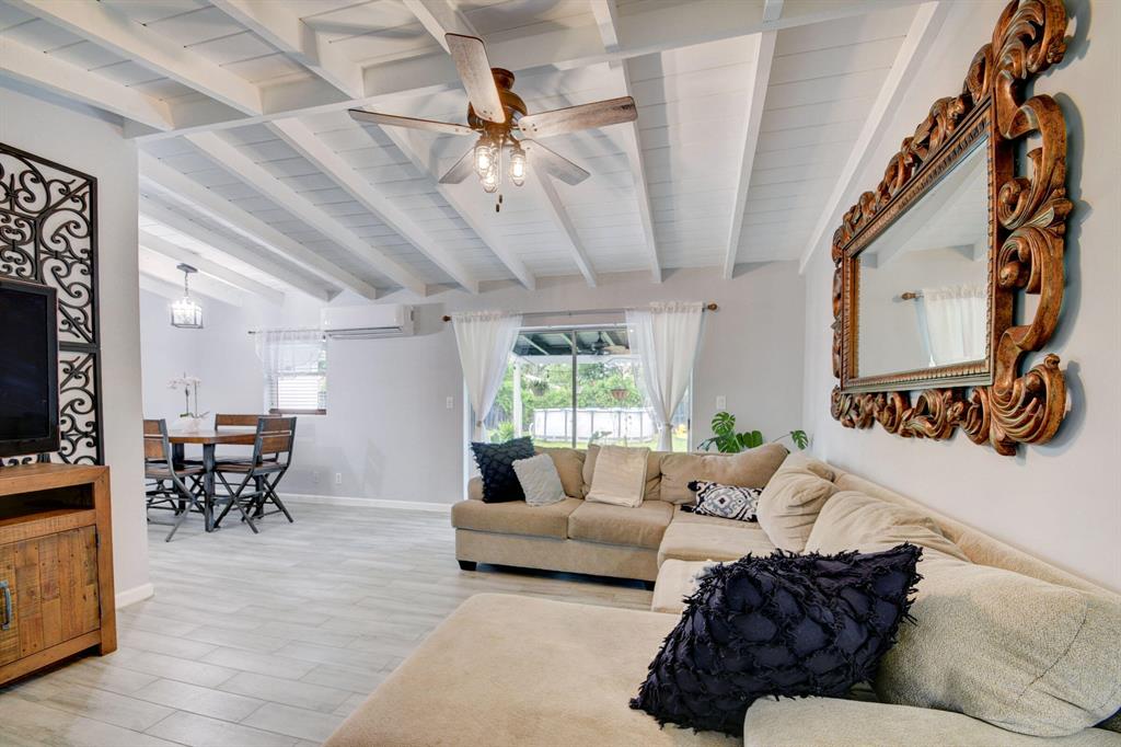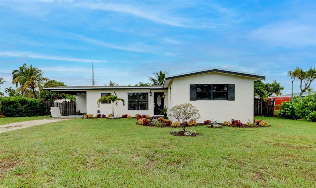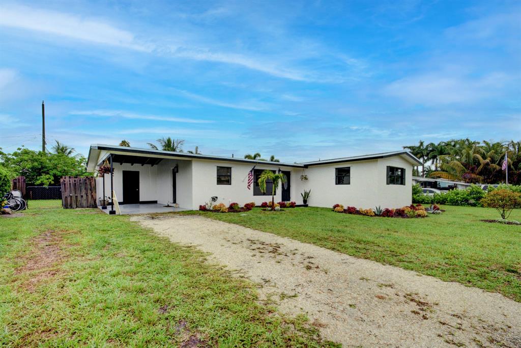 Charming CBS Single Family Home on Oversized Lot Located In Quiet Lake Clarke Featuring Stainless Steel Appliances with Quartz Countertops. Spacious Master Bedroom. Beautiful Bathroom with Tile Throughout, Covered Patio, Car Port With Laundry Room. Mini Split Installed in 2021, New Roof 2021, Vaulted Ceilings. Yard Has Fruit Bearing Banana, Avocado and Mango Trees. Sprinkler System That Runs On Well Water, Fenced In Back Yard. House Will Be Sold With Architectural Drawings To Convert Home Into A 3 Bedroom 2 Bath If Buyer Chooses. *Reason Why Driveway Is Not Paved* 5 Minutes From Airport, Zoo, I95, Intercostal And Dreher Park