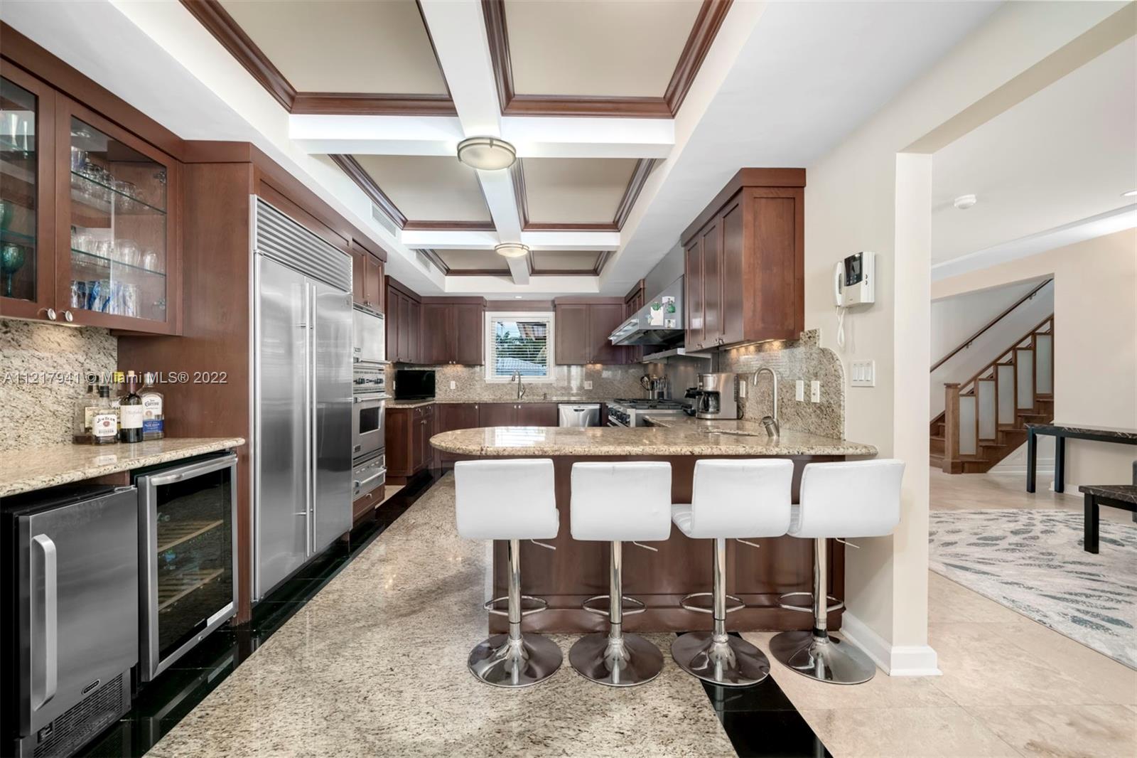Enjoy spectacular unobstructed wide bay views of the Miami skyline & downtown Miami. Located in North Bay Village, this 2-story home sits on a 9,000 Sq. Ft. lot with 60 feet on the water. An entertainers dream with 4 bed & 4 baths and 1 half bath, marble & wood flooring, high impact windows. Kitchen complete with top-of-the-line Viking appliances, gas range, wine cooler, wall oven, kitchen island with eat-in sitting and formal dining table. The open floorplan blends the indoors & outdoors seamlessly to create an experience like no other. Exteriors feature Chicago brick paver driveway, private concrete dock, infinity edge pool, jacuzzi, wet bar, cabana bath, built-in BBQ, generator & rooftop deck to enjoy breathtaking sunrise to sunset.