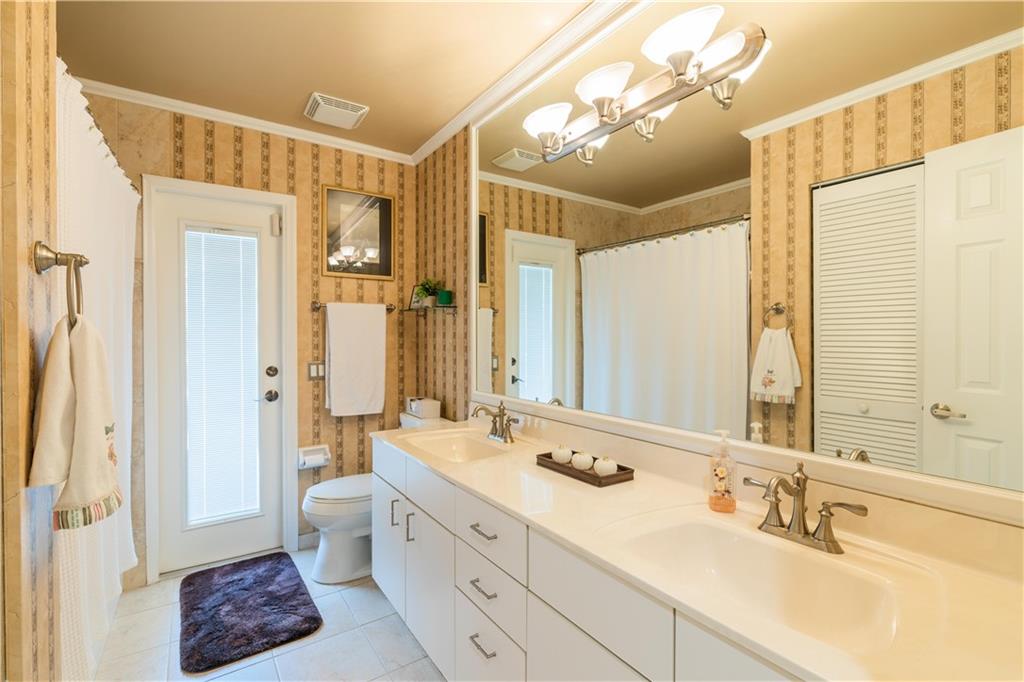 Welcome to Eagle Trace. This 5 bedroom, 3 full bathroom home offers double door entry that opens up to a luxurious living and dining room with vaulted ceilings. Triple split bedroom with ceramic tile throughout main living areas. The updated kitchen has solid wood cabinetry, stainless steel appliances, a beautiful large island, granite countertops. The large primary suite offers an updated bathroom with 2 vanities and spa-like shower. Two walk-in closets. Roof was replaced in 2012. New water heater. Hurricane Shutters. Screened in pool and patio area, fully fenced. Large covered patio area, great for entertaining. Eagle Trace is a 24 hour guard gated community with tennis, playground, pickle-ball, and basketball