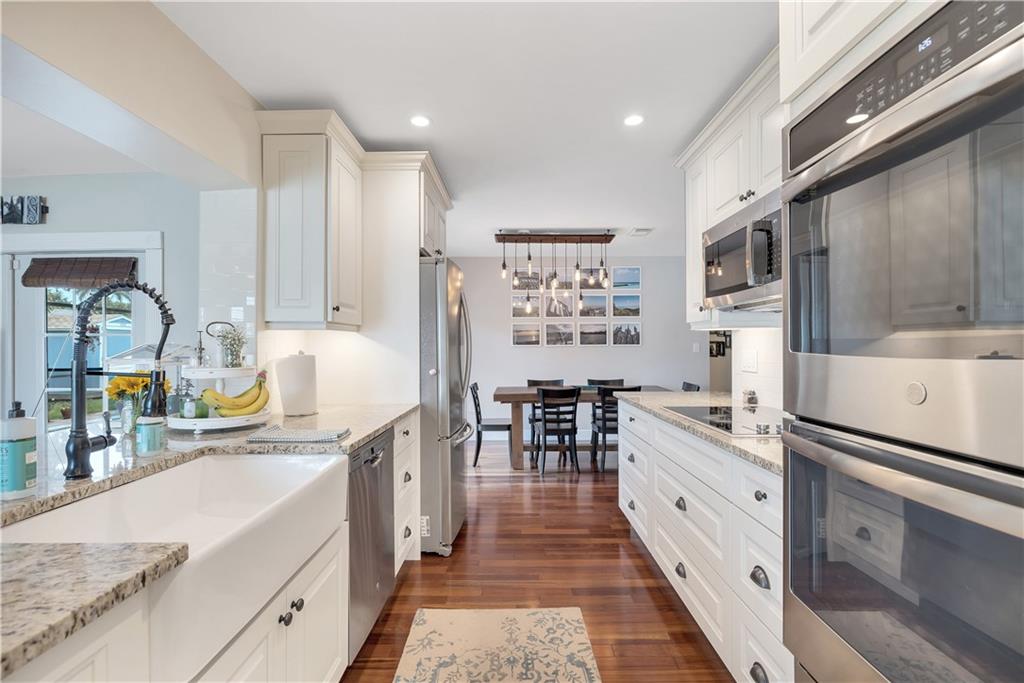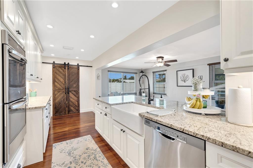 Welcome to paradise! Your new home is protected by Paradise, a high-end/high impact & efficient window/door brand for incredible safety & appearance. Carpenter built column wraps & matching cedar flower boxes further accentuate the curb appeal. And custom pavers for the driveway, porch, patio, & pool makes this home truly pop! Inside, cherry hardwood floors are throughout complementing the reimagined open galley kitchen w/matching utility rm & pantry! The kitchen has tons of counter space, a double oven & the cabinets have pullouts to stay organized. Admire your travertine lined pool & LARGE PVC fenced yard from your covered/screened patio. The kids/dog will love the yard w/a dog door access from the patio. If that's not enough there is a permitted XL shed & California style closets.