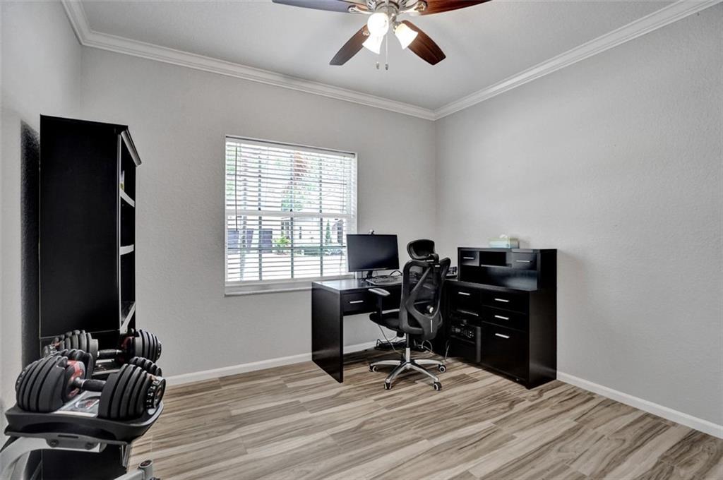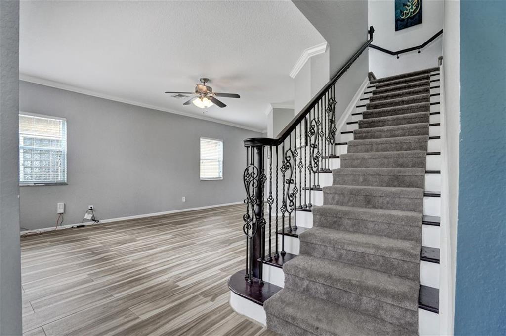 BEAUTIFULLY UPDATED/REMODELED spacious home with 4 bedrooms/ 3 full bathrooms plus a HUGE BONUS ROOM being used as a family room, it's versatile- can also be a play room, office or convert to 5th bedroom! LARGEST MODEL in the neighborhood with 2,512 Living sq ft! 1 bedroom and full bathroom downstairs, Gorgeous Wood-like tile floors downstairs, REMODELED BATHROOMS, UPDATED KITCHEN with island, white cabinetry, granite counters, & stainless steel appliances, crown molding, modern light grey walls, elegant wrought iron staircase, hurricane shutters, NEW SAMSUNG WASHER,DRYER & MORE! Low HOA fee includes Landscaping, Cable, Alarm Monitoring and Amenities- Clubhouse with gym, pool, spa/hot tub, tennis court. GATED COMMUNITY! Great Schools & Location!