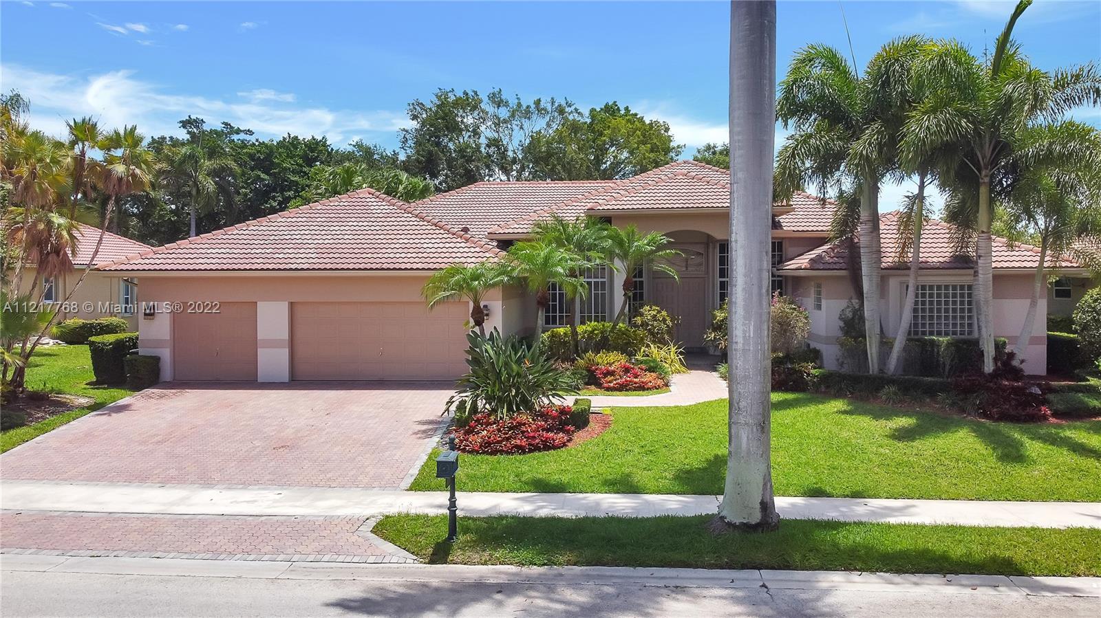 Remarkable one-story home sitting on GOLF VIEW in Weston Hills Country Club. ROOF is 2018** This home has 5 full bedrooms PLUS a bonus room!! Open Floorplan, 14 ft. high ceilings, and lots of windows invite the natural light indoors. Golf View from the main area and Master bedroom. Bathrooms have been recently renovated. Master Suite w/sitting room could be office or huge walk-in closet). Marble & Hardwood Floors in main areas. The 6th bedroom has an en-suite Cabana Bath being used as a bonus room. Accordion Shutters on the whole house.
