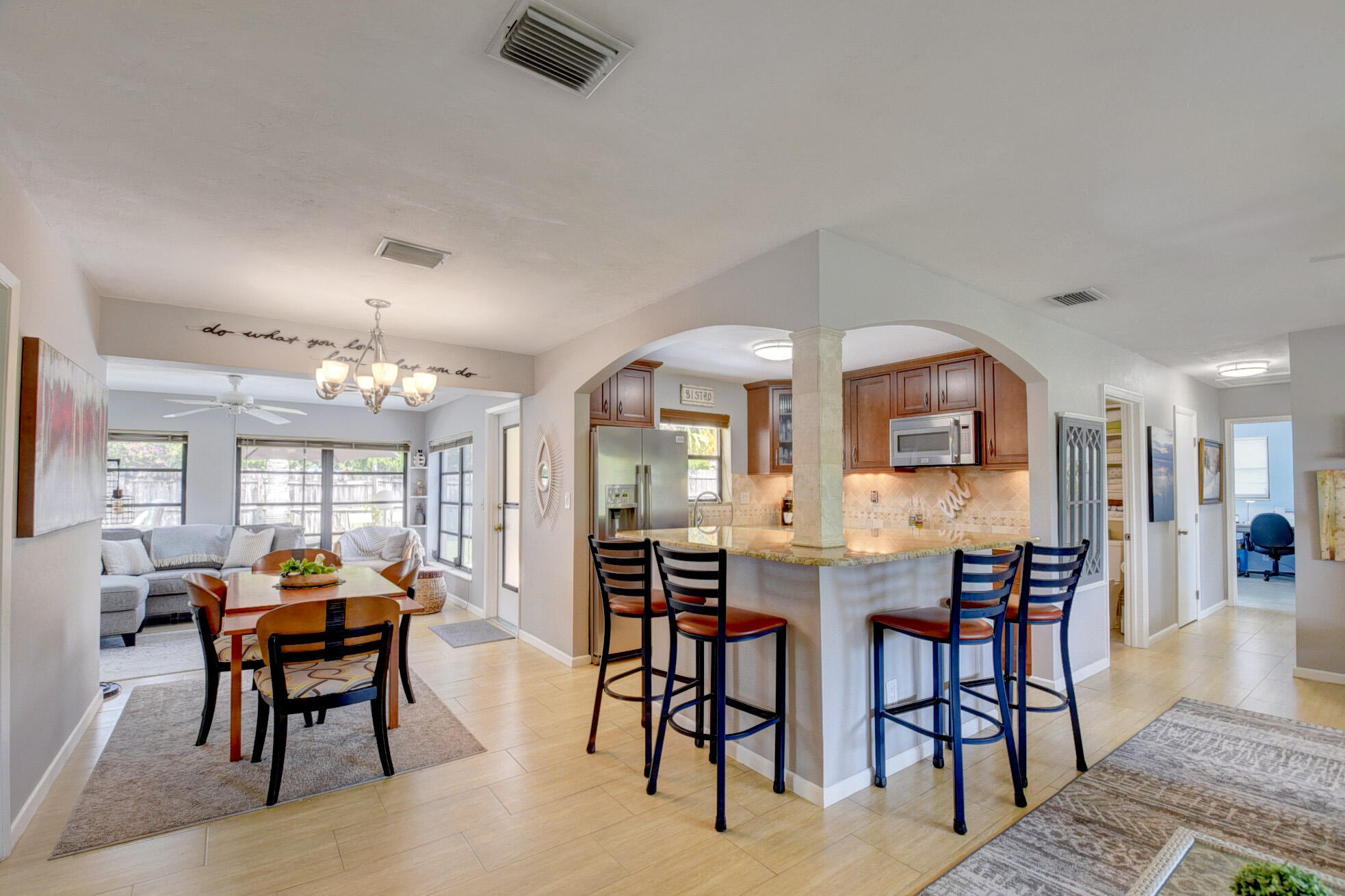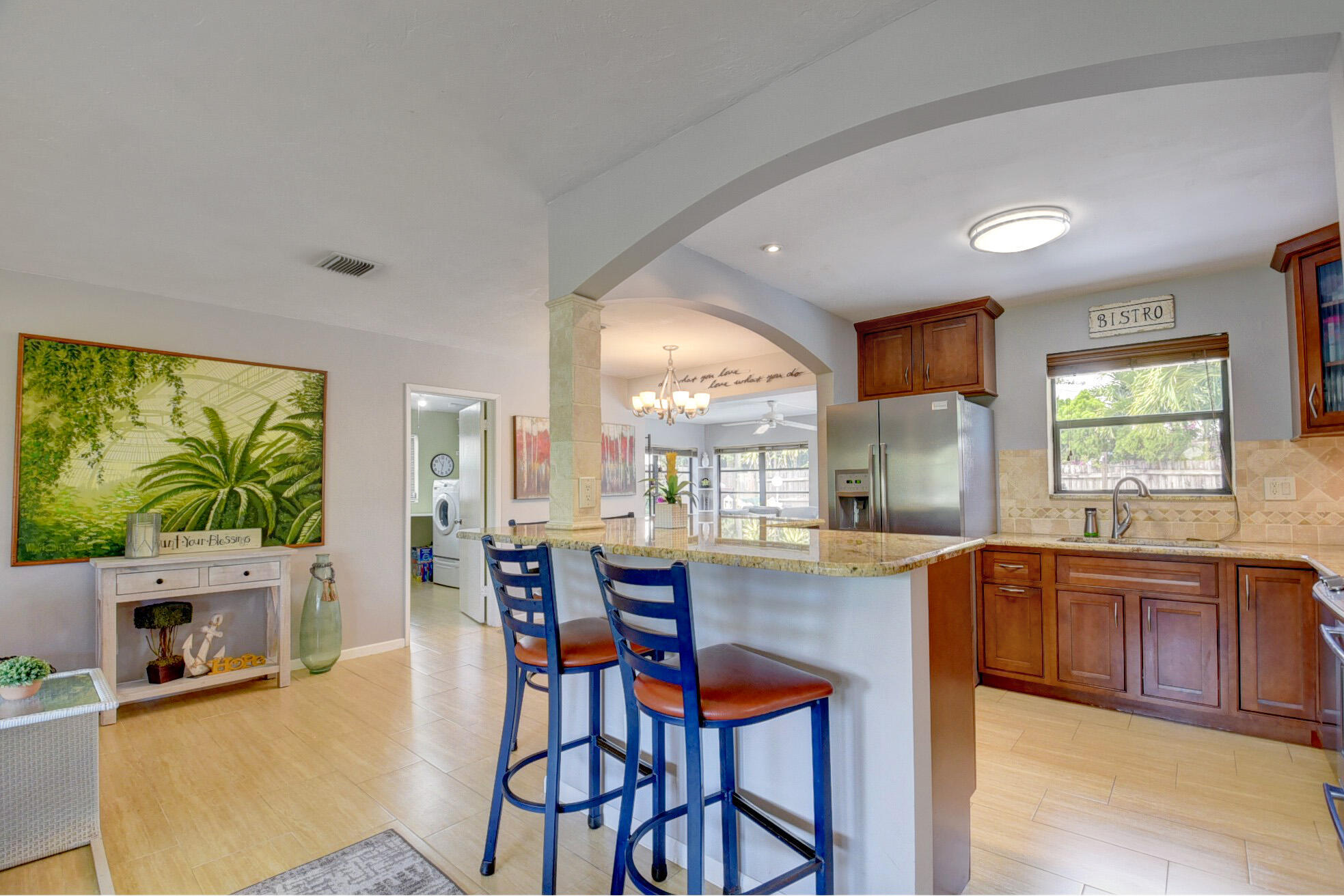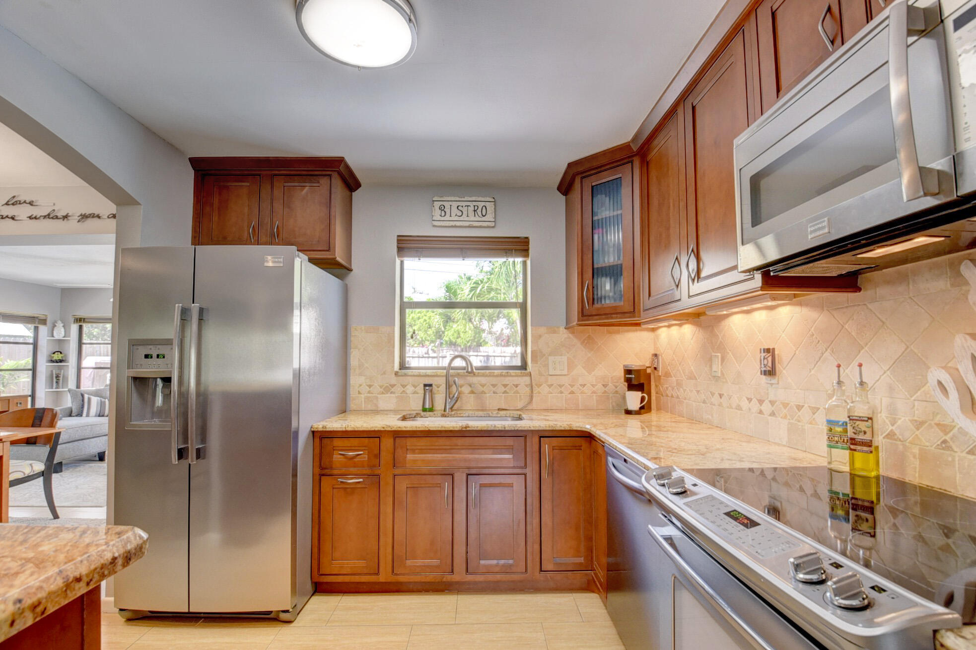 EAST BOCA RATON DESIRABLE LOCATION!CLOSE TO LAKE WYMAN PARK & its' future park amenities, UPDATED KITCHEN, Granite countertops, custom wood cabinets w/corner lazy susan, S/S Frigidaire appliances, Travertine Tile Backsplash, L-Shaped bar height kitchen island area that can seat up to 6 bar stools comfortably for entertaining, Porcelain Neutral Tile flooring , NO CARPETING, OPEN FLOOR PLAN, Updated bathrooms w/frameless Shower glass doors w/same fixtures, Florida, Dining & Family room, areas, Separate Laundry room w/ plenty of Extra Shelving, LG Front Loader Washer & Dryer w/ bottom drawers, Covered EXTRA STORAGE SPACE, GE Electrical Panel replaced in yr. 2020, Exterior of house painted yr. 2020, Roof yr. 2008, Rheem Water Heater 2005, resurfaced Chlorinated PRIVATE POOL
