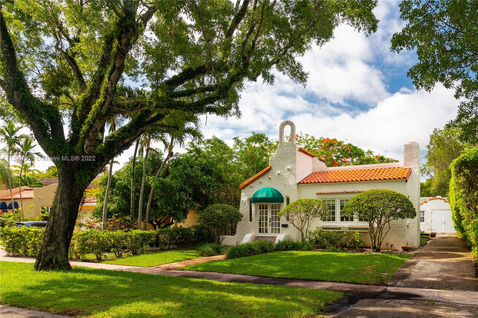 Character and beauty reside on Majorca Avenue. Sunlight pours into this cheerful home, ideally located blocks from all that downtown Coral Gables has to offer: restaurants, shopping, & culture. The property features a 2/2 main house with a detached 1/1 studio apartment. Light Oak floors, fireplace, and arched transitions complement modern enhancements like new A/C, built-in storage, impact windows, and updated kitchen and bathrooms. The generous primary suite features room for a sitting or work area. Chicago brick pavers, deck, and covered terrace make the backyard perfect for intimate al fresco gatherings. Recently painted with new awnings, this Old Spanish charmer will have you at “Hello!” A Very Special Home.