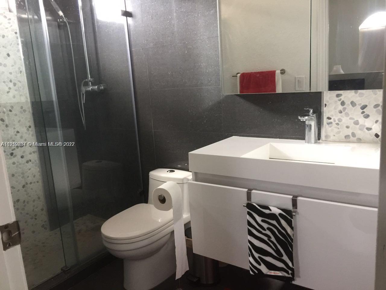 Functional town home with a lot of features: Corner unit with plenty of guest parking. Renovated granite counter top. All the bathroom also remodeled with glass doors. Master bathroom with double vanity. Located downstairs. Fenced patio with pavers. Gated community. Access to Island at Doral clubhouse. don't miss this opportunity.