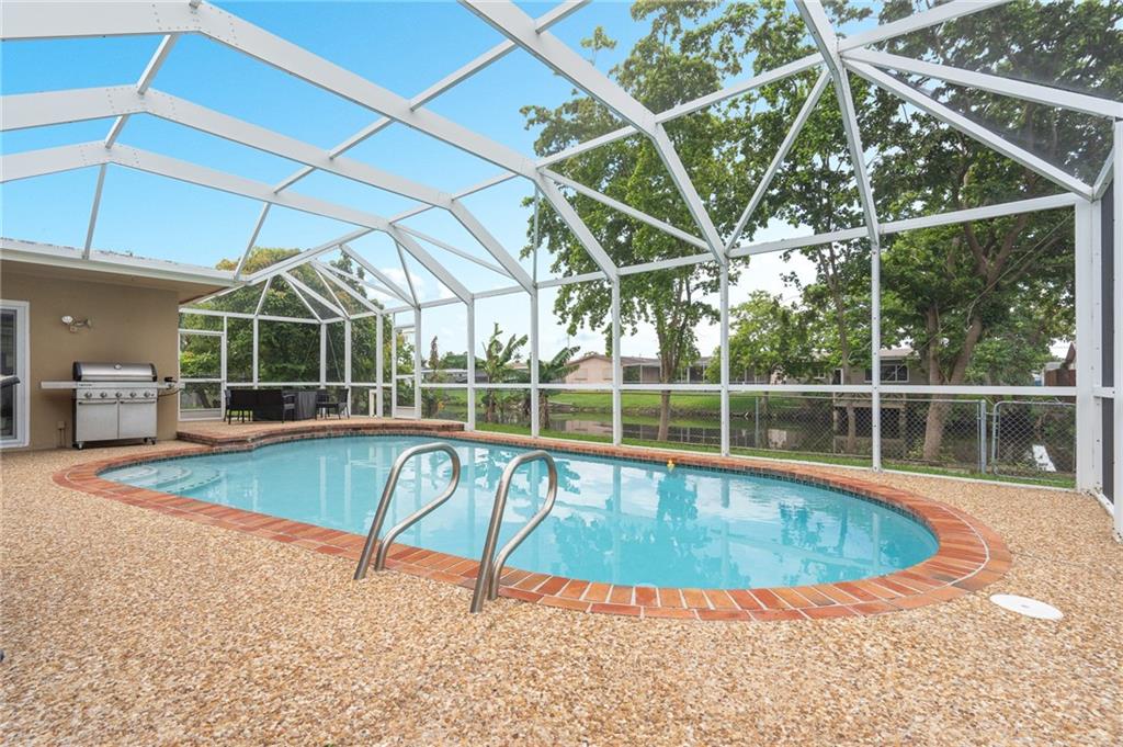 Check off every item on your wishlist in this charming & spacious waterfront pool home located in the desirable no HOA community of Sunrise Golf Village. The fully fenced in backyard includes an enclosed lanai w/ large pool & open terrace offering plenty of space to enjoys Florida’s indoor/outdoor lifestyle. The roomy split floor plan features updated flooring, fixtures & finishes throughout. The kitchen features Shaker-style cabinetry, tile backsplash, quartz countertops & gas cooking. Relax in your owner’s suite which includes walk-in closet & en suite bath. Enjoy the peace of mind of whole-house impact windows & doors. Close to major thoroughfares & shopping at Sawgrass Mills plus access to the area’s best golfing & recreation. Schedule your showings today, you will be glad you did!
