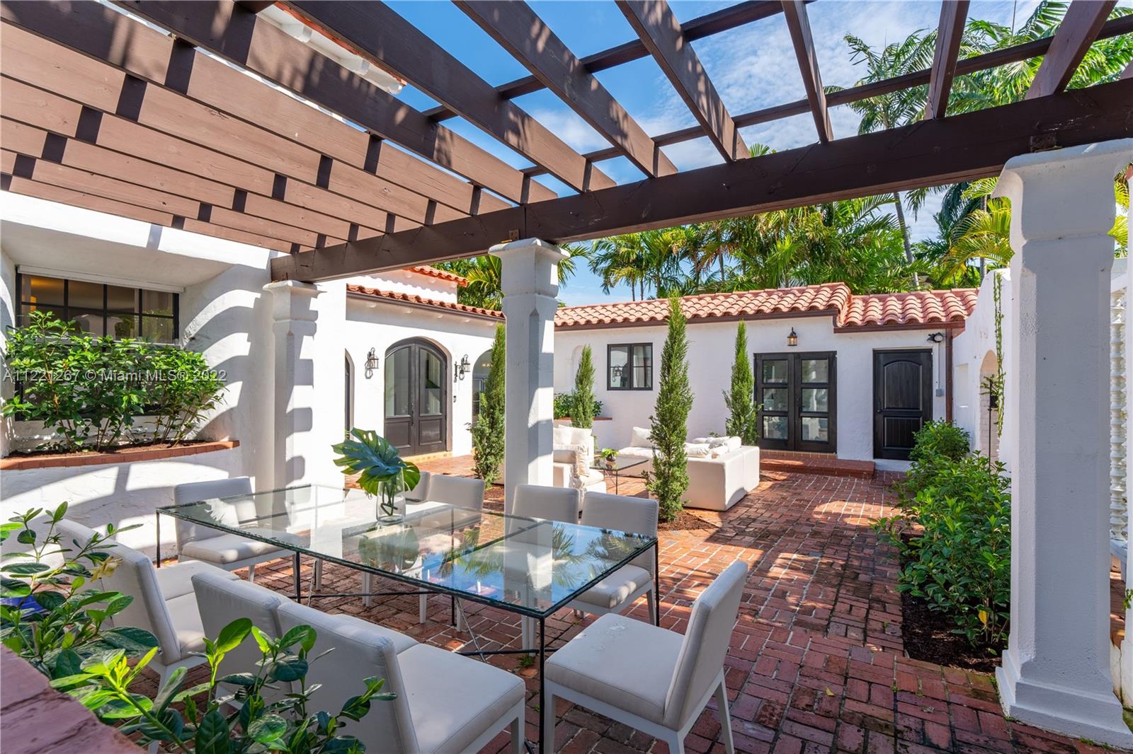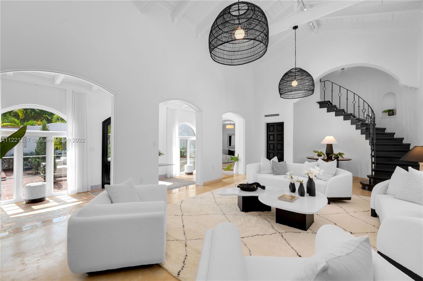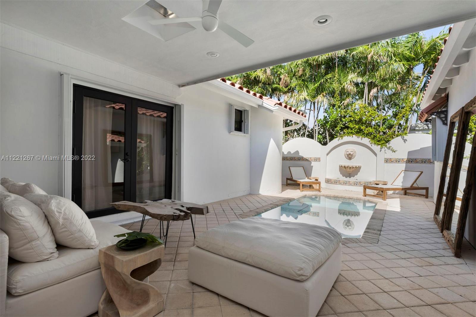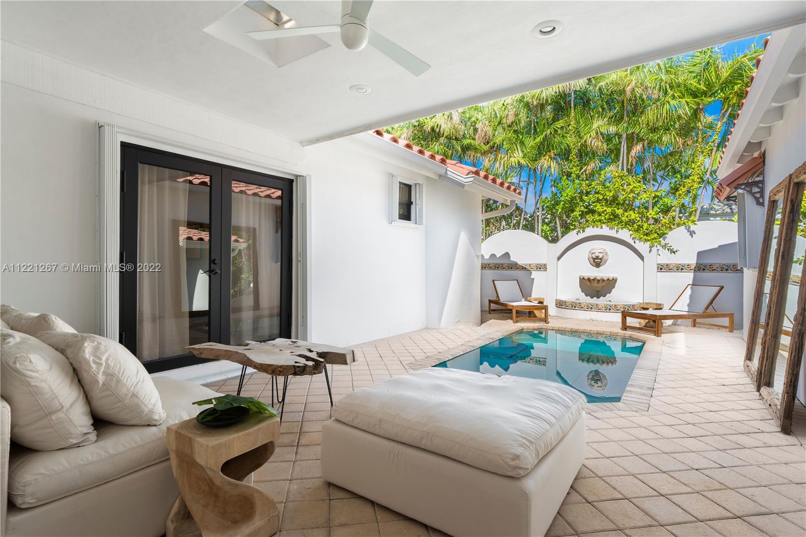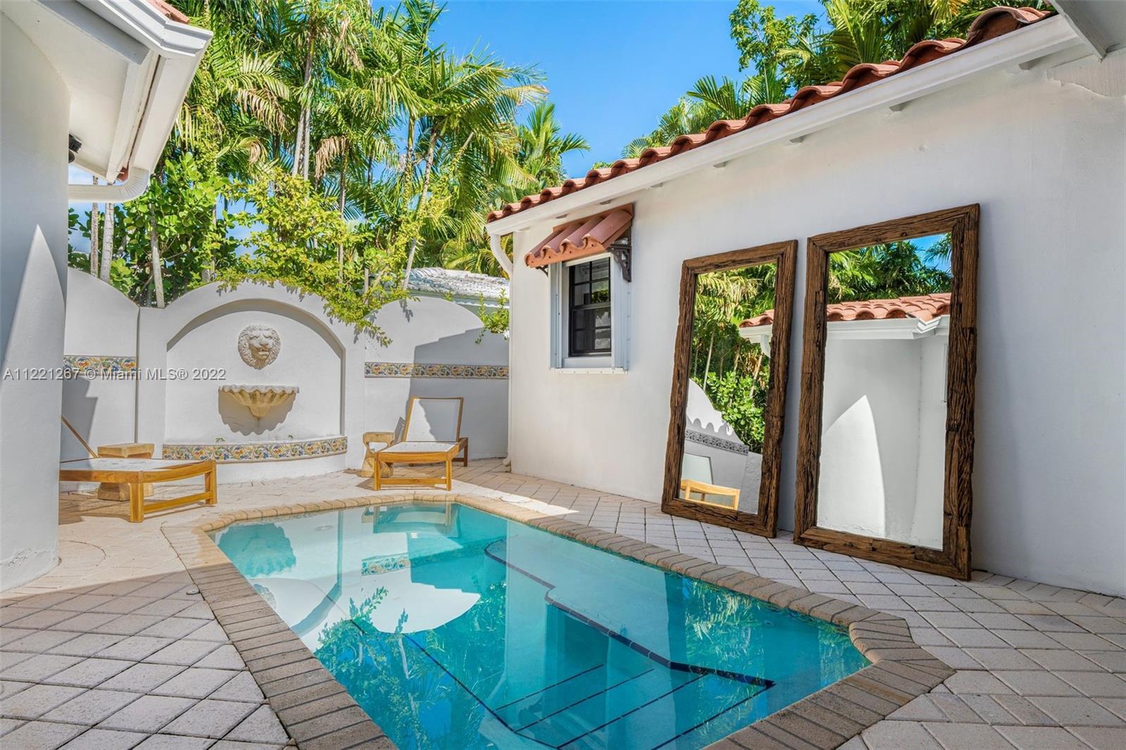 This Spanish Mediterranean home welcomes you with an impressive grande gated courtyard with a water fountain, built-in seating and pergola that feels like you have been taken to a Mediterranean villa. Step into the foyer of this renovated home complimented by keeping the 1930’s Spanish Med charming details; ceilings, tiles, built-ins and window frames. This 2,523 SF home features 4 bedrooms and 4.5 bathrooms all en-suite. The main living room has 20’ vaulted ceilings, a fireplace and grand staircase. Formal dining, 1 car garage, circle driveway and a pool with shade and sun areas. Located on the prestigious Pine Tree Drive on a 7,749 sf lot. This home is staged and could be sold furnished or unfurnished.