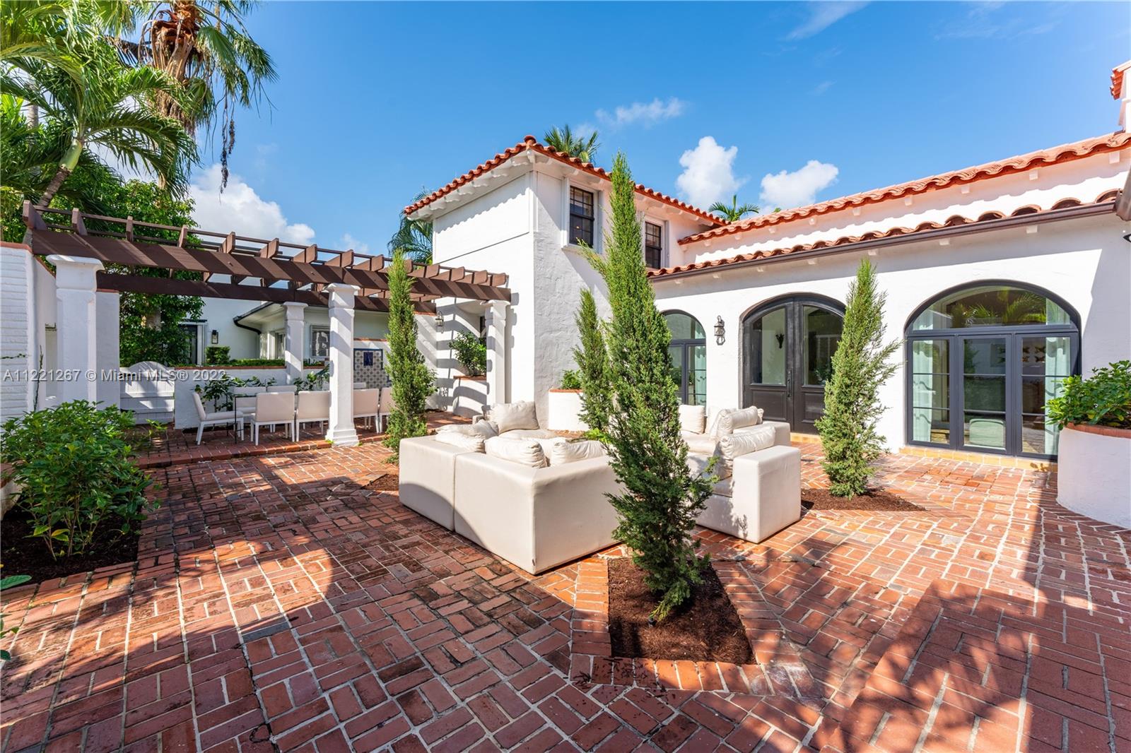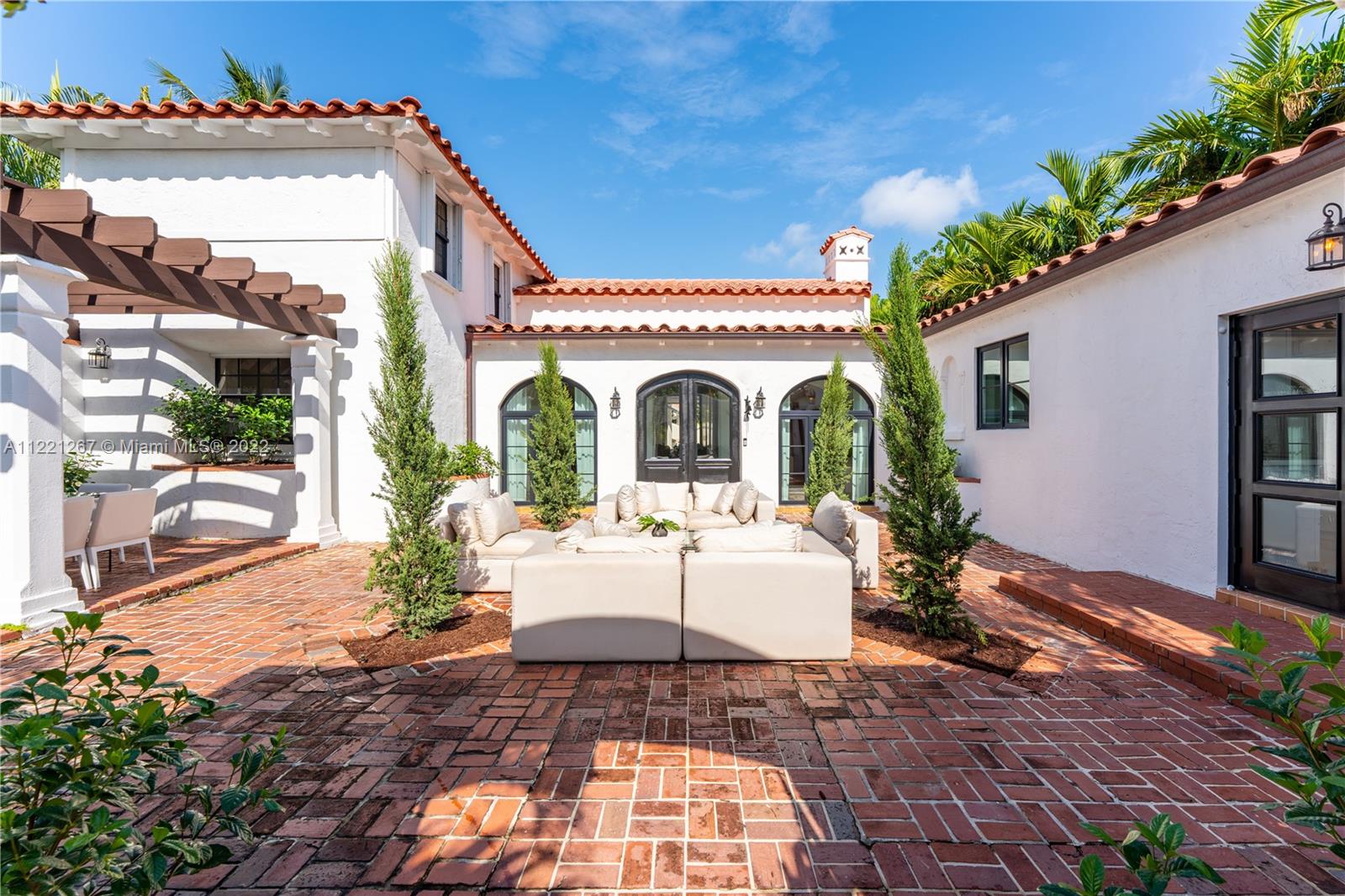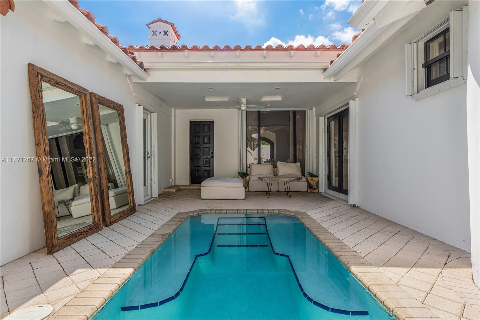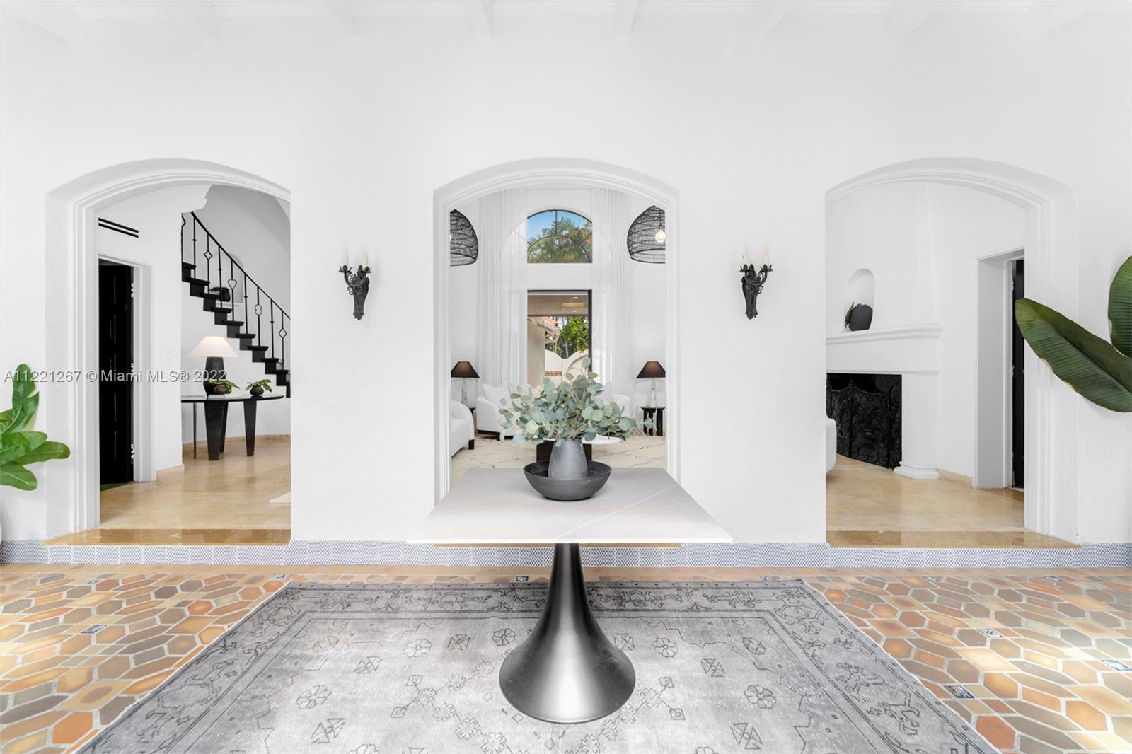 This Spanish Mediterranean home welcomes you with an impressive grande gated courtyard with a water fountain, built-in seating and pergola that feels like you have been taken to a Mediterranean villa. Step into the foyer of this renovated home complimented by keeping the 1930’s Spanish Med charming details; ceilings, tiles, built-ins and window frames. This 2,523 SF home features 4 bedrooms and 4.5 bathrooms all en-suite. The main living room has 20’ vaulted ceilings, a fireplace and grand staircase. Formal dining, 1 car garage, circle driveway and a pool with shade and sun areas. Located on the prestigious Pine Tree Drive on a 7,749 sf lot. This home is staged and could be sold furnished or unfurnished.