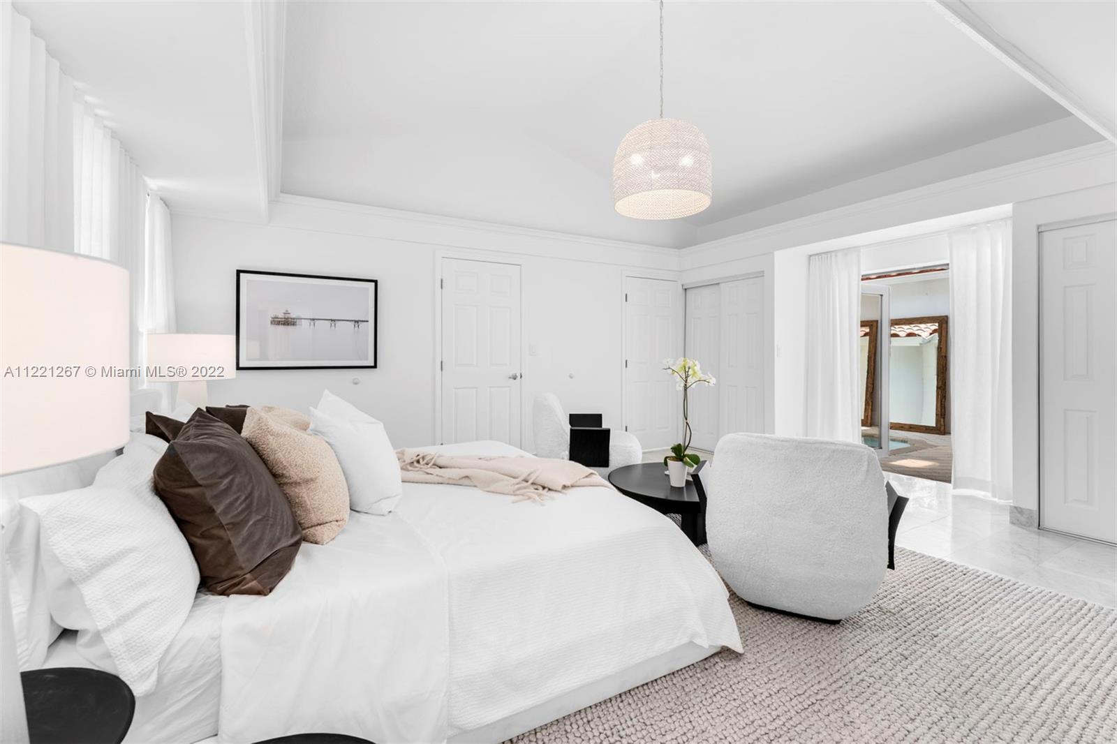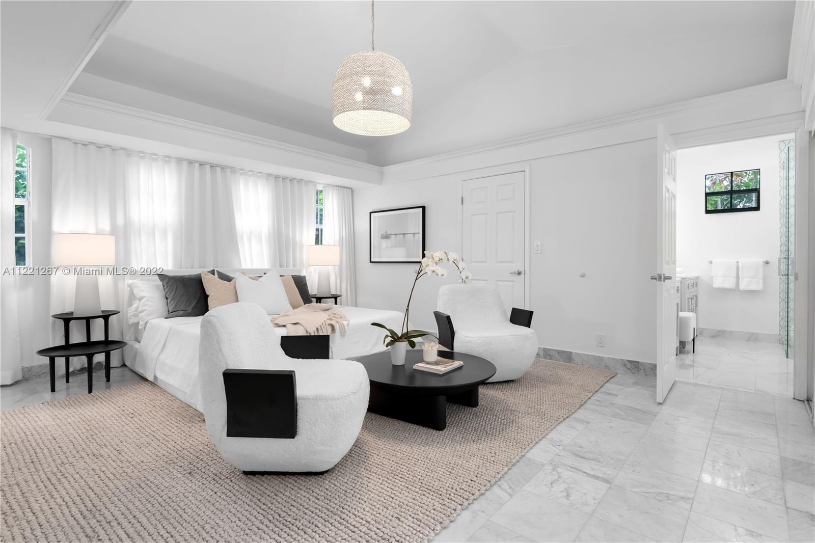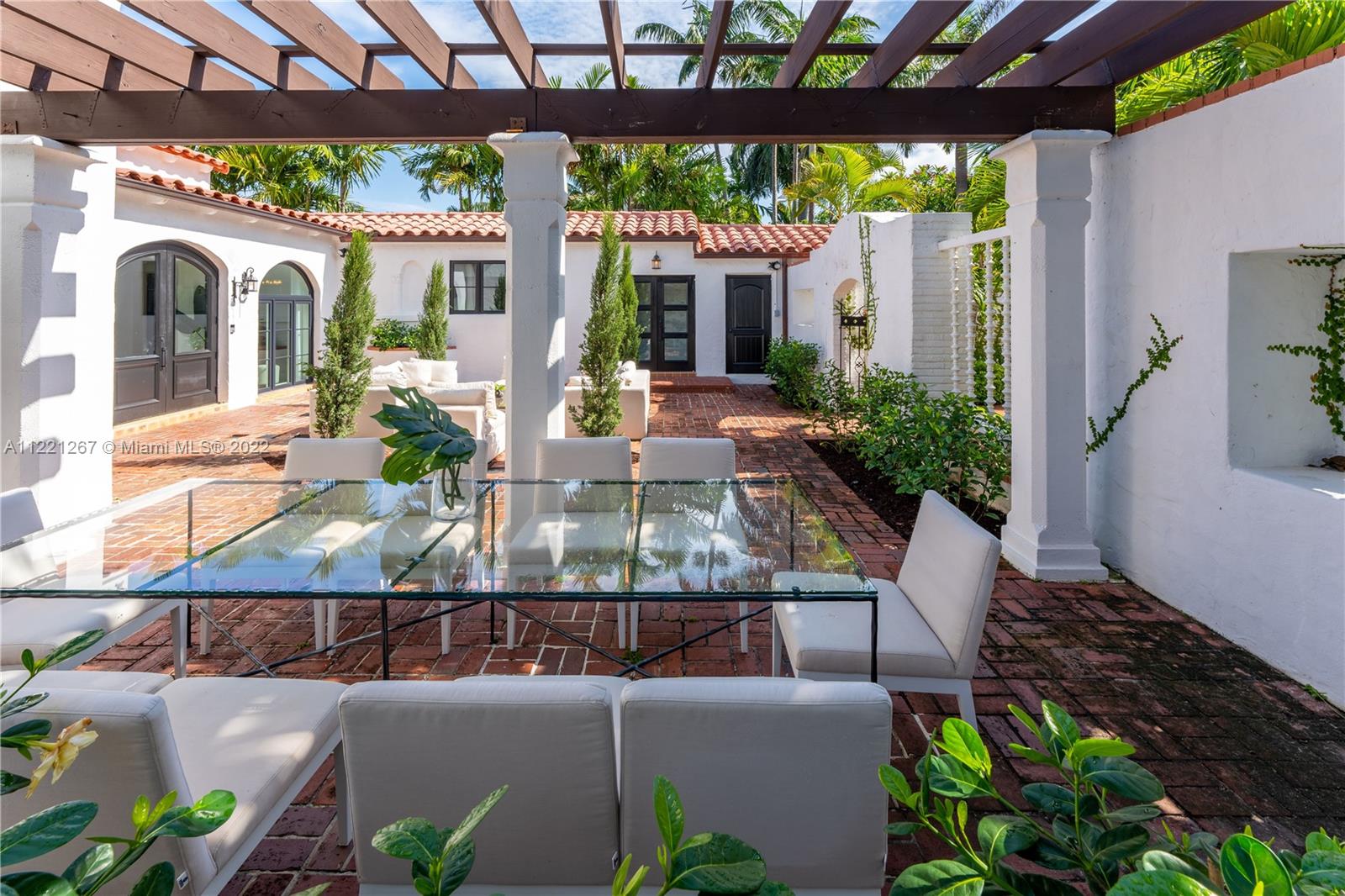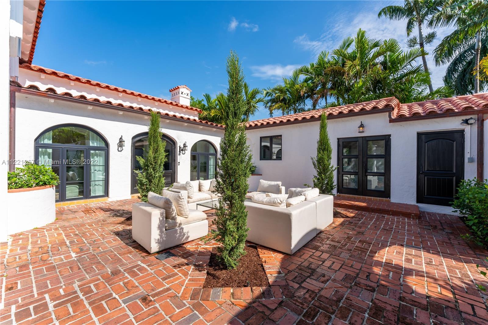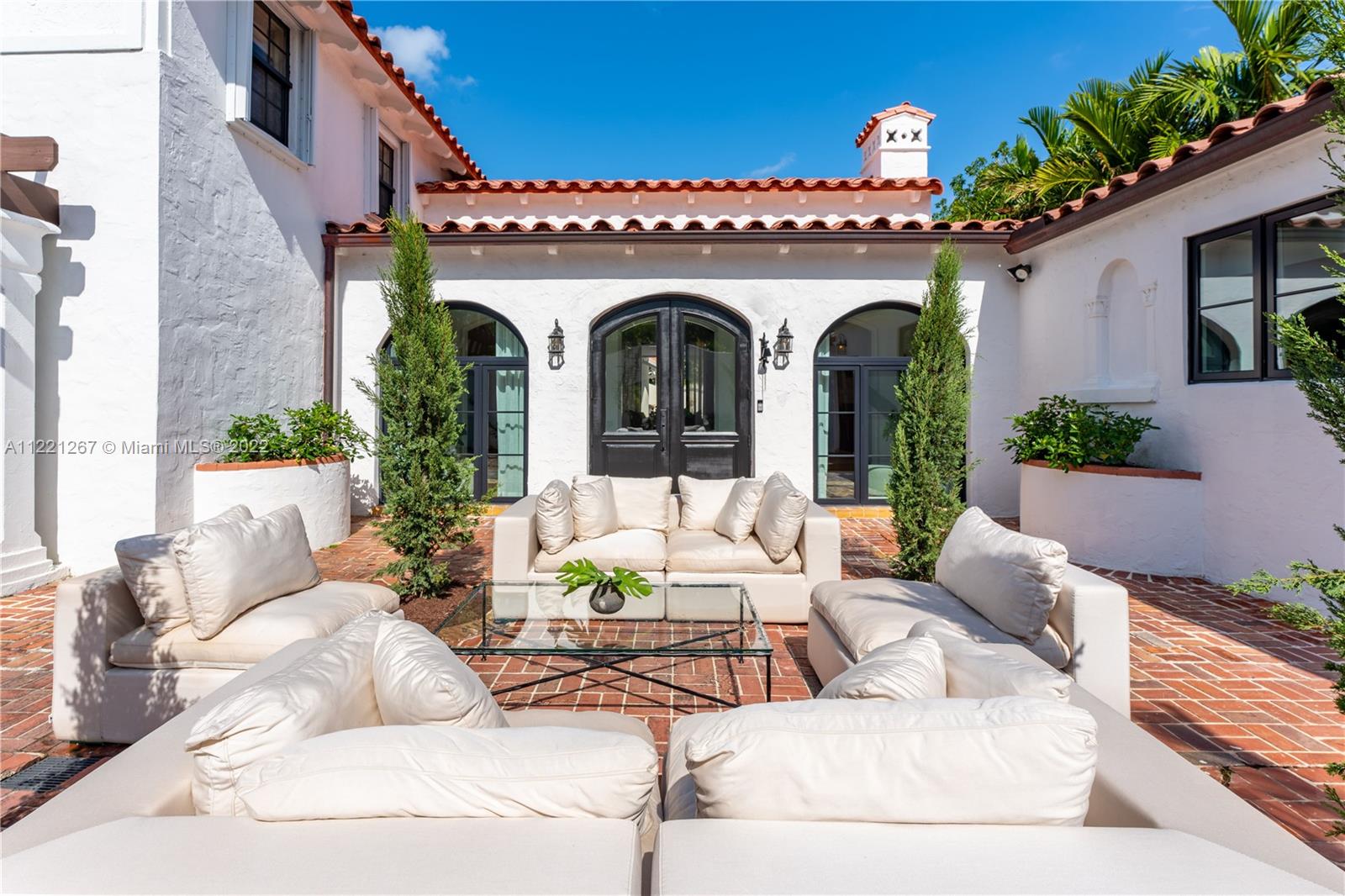 This Spanish Mediterranean home welcomes you with an impressive grande gated courtyard with a water fountain, built-in seating and pergola that feels like you have been taken to a Mediterranean villa. Step into the foyer of this renovated home complimented by keeping the 1930’s Spanish Med charming details; ceilings, tiles, built-ins and window frames. This 2,523 SF home features 4 bedrooms and 4.5 bathrooms all en-suite. The main living room has 20’ vaulted ceilings, a fireplace and grand staircase. Formal dining, 1 car garage, circle driveway and a pool with shade and sun areas. Located on the prestigious Pine Tree Drive on a 7,749 sf lot. This home is staged and could be sold furnished or unfurnished.