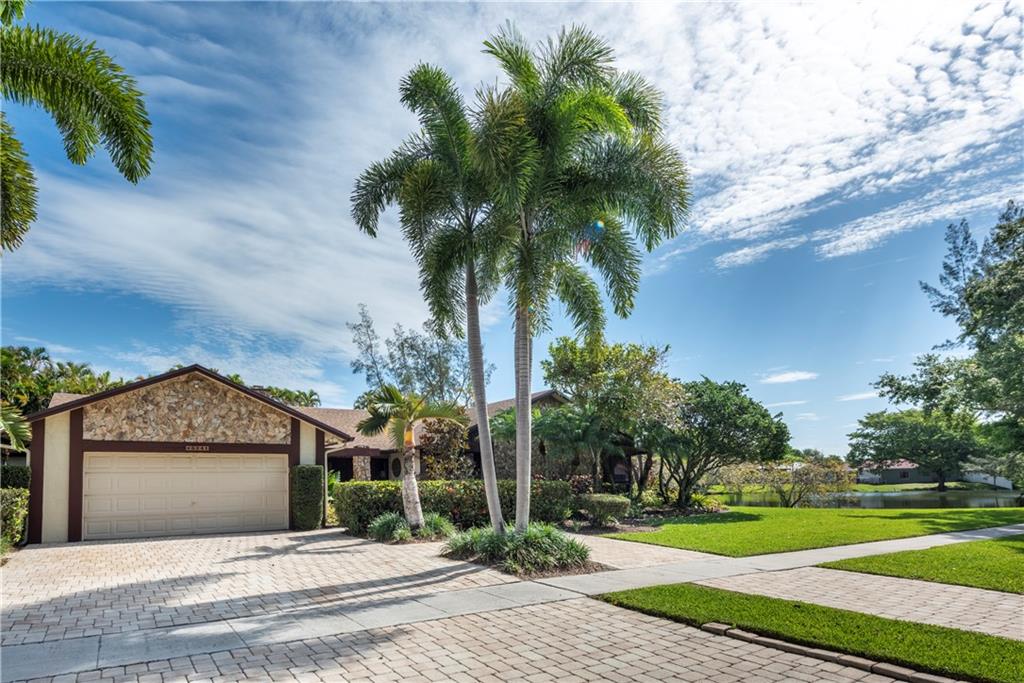 Rarely Available Plantation Harbor "original owner" Beauty! Walk into this 5 bedroom, 3 bathroom home and feel right at home! This meticulously maintained home includes wood ceilings in the living room, custom kitchen cabinets with granite counters, tile backsplash, top of the line stainless appliances, large eat-in Kitchen, formal dining room, family room, wet bar, office and more! Roof was replaced in 2017 and the house has full hurricane protection. Pool is salt water. Electrical panel is 2 years old. Huge 1/2 acre corner lot sitting next to a beautiful wide sparkling lake. Four wall mounted flat screen TV's included. Minutes from schools, shopping, Plantation Heritage Park, Happy Trails dog park, highways and more! Great location and NO HOA! This one won't last!