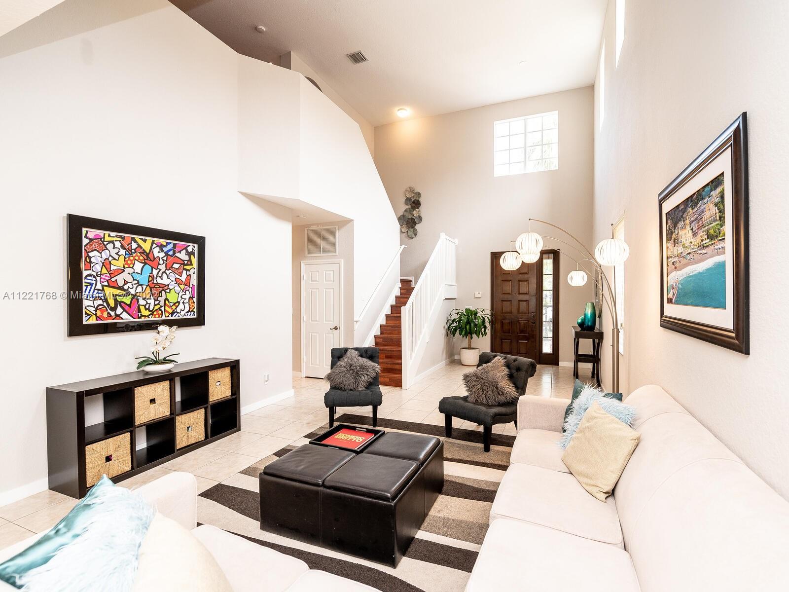 BEAUTIFUL HOME 5 Bedrooms/4 Bathrooms, 3-Car garage located at the prestigious “Isles at Weston”. You will be welcomed by the modern open-concept large living room and dining room that flows into the spacious RENOVATED KITCHEN with an adjoining Family Room with plenty of views of the backyard, ideal for entertaining. SS appliances and quartz countertops. This 2-story home offers HIGH CEILINGS, an Oversized master suite with 2 closets, and wood cabinetry. Oversized loft upstairs that can be used as a 2nd family room. Great floor plan with a full bedroom and full bathroom downstairs, NEW ROOF, and 2 NEW High-Efficiency AC Units. Guard gated community with Resort amenities with pools, billiard room, gym, basketball and volleyball courts, playground, and more. A+ SCHOOLS. WELCOME HOME