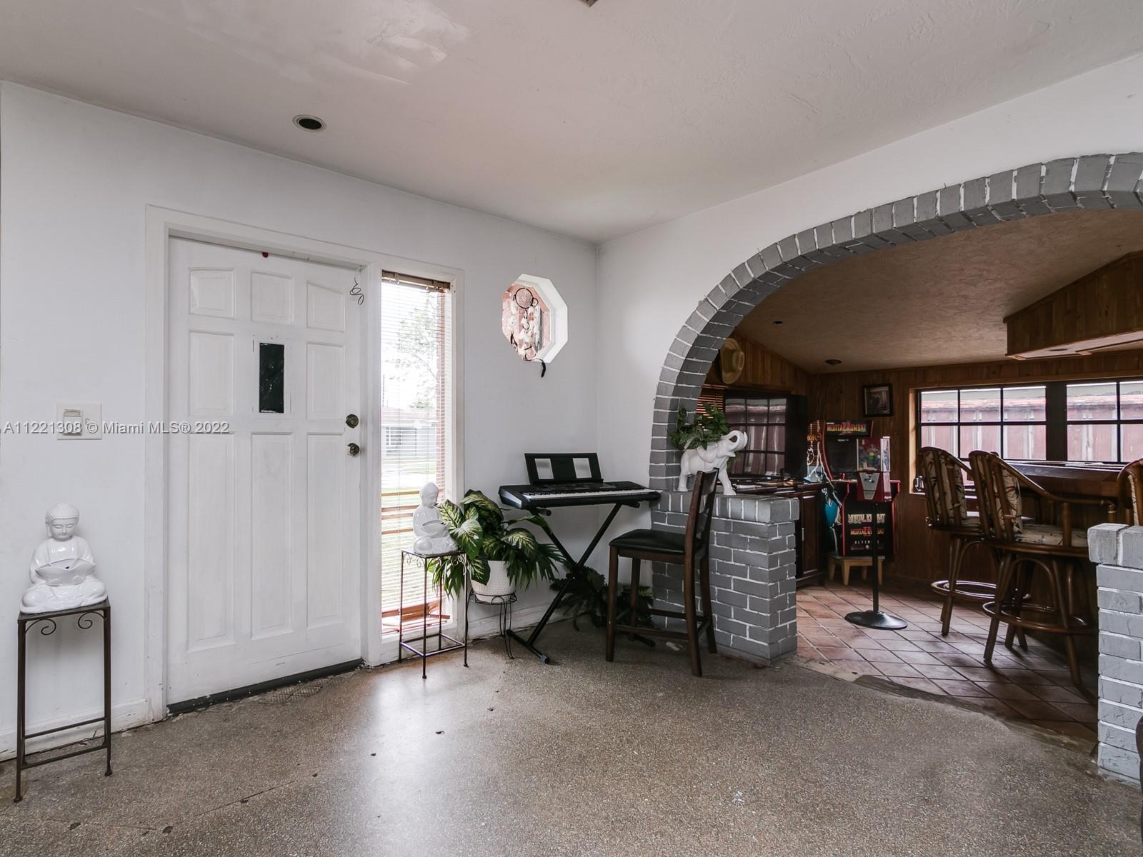 HOME WITH FULL POTENTIAL 3 BEDROOMS AND 2 1/2 BATHS WITH POOL, CARPOT, WE BAR. COVERED PATIO. ACCORDION HURRICAINE SHUTTERS.
