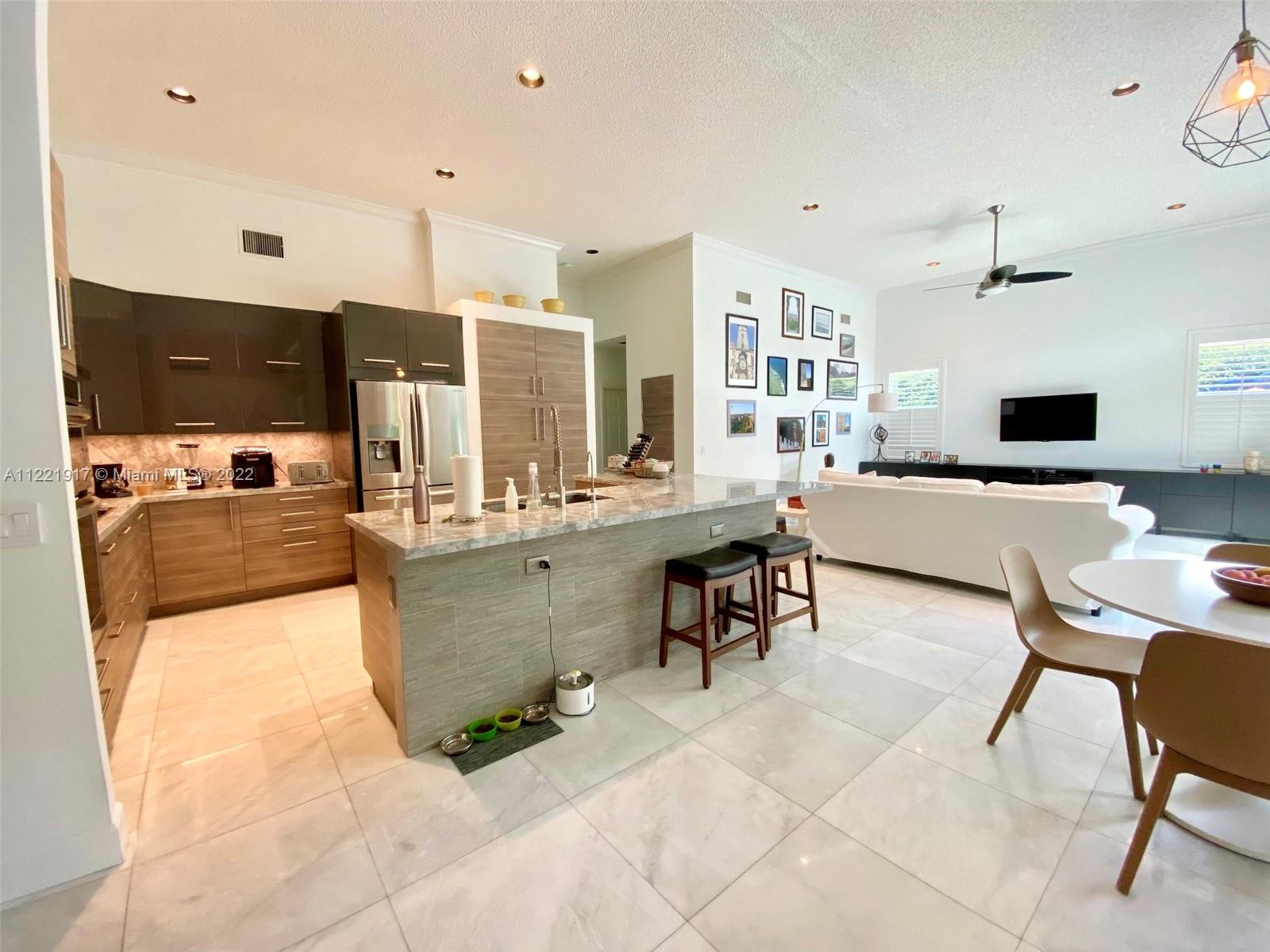Beautiful and remodeled 1 story home in the desirable The Ridges. Spacious and open floor plan with over 3000 sqf with high ceilings and lots of natural light, 4 bedrooms 3 bathrooms plus a good size office that could also be used as a 5th bedroom. Completely remodeled with a beautiful kitchen, quartz countertop and Kitchen Aid appliances, newer bathrooms, marble floors, built-in closets, new impact windows and doors throughout, smart NEST thermostat, pool, misting system in the backyard and many other nice features. Two car garage with insulated door and a circular driveway. Close A+ schools for all ages. Tenant occupied until Aug. 22nd.