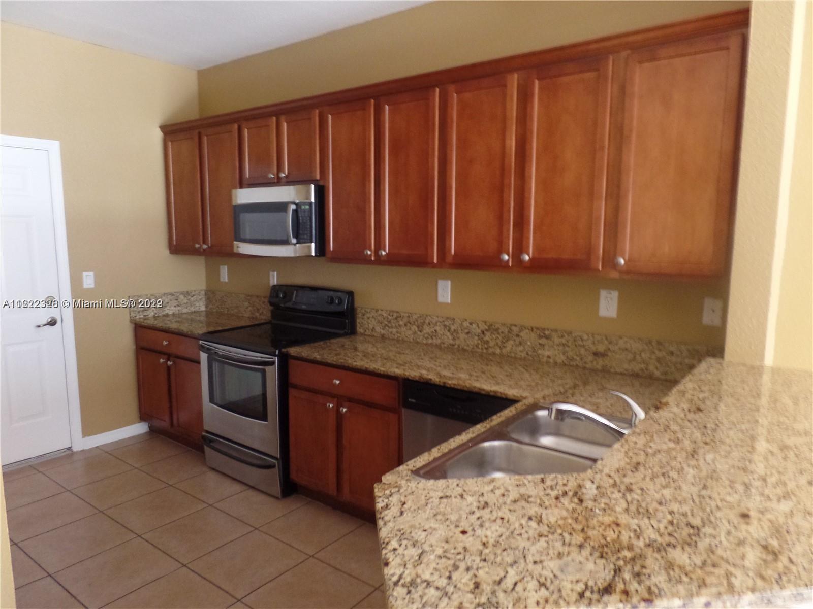 Beautiful townhome in the heart of Miramar. 4 bedrooms 3 full baths, 2 primary bedrooms, one of which is located on the first floor. The primary bedroom on the second floor has a retreat room/sitting area that could be an optional 5th bedroom(as per builder plan), convenient laundry room located on the second floor. Neutral tile downstairs, wood floor in the downstairs bedroom, upgraded kitchen with stainless appliances, formal living/dining area + family room, private fenced patio, 1 cg, and a spacious, open & liveable floorplan. Can't beat it with nearly 2200 sq feet of living space. Selling as-is but home is in very good condition with new AC 2021, and new exterior paint 2021. Tenant occupied until July 31, 2022. Please see broker remarks for showing instructions & add'l information.