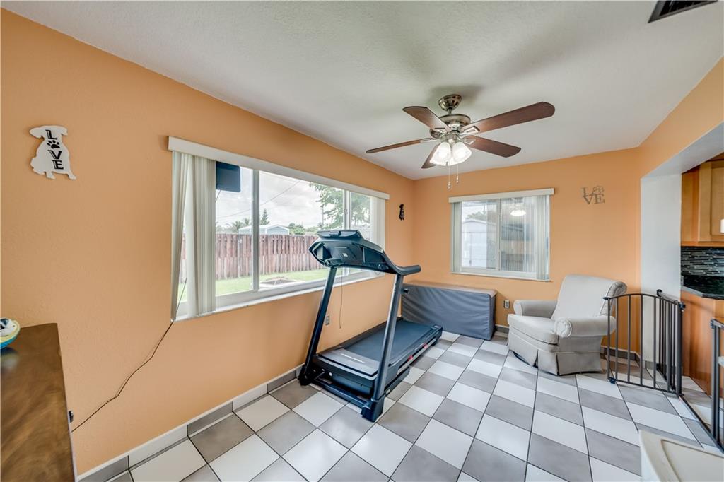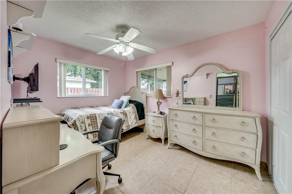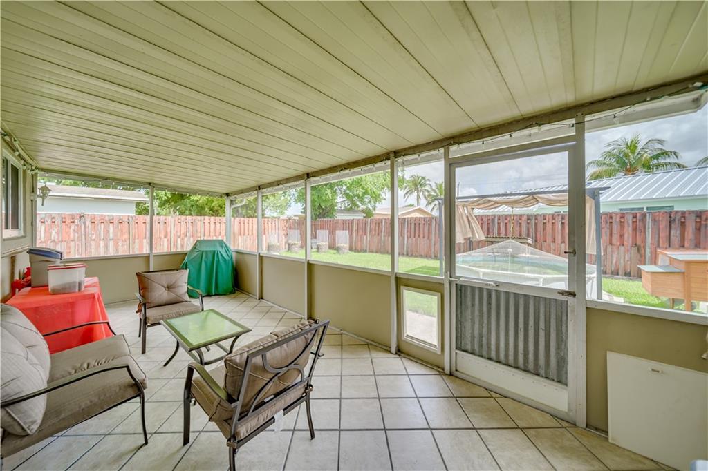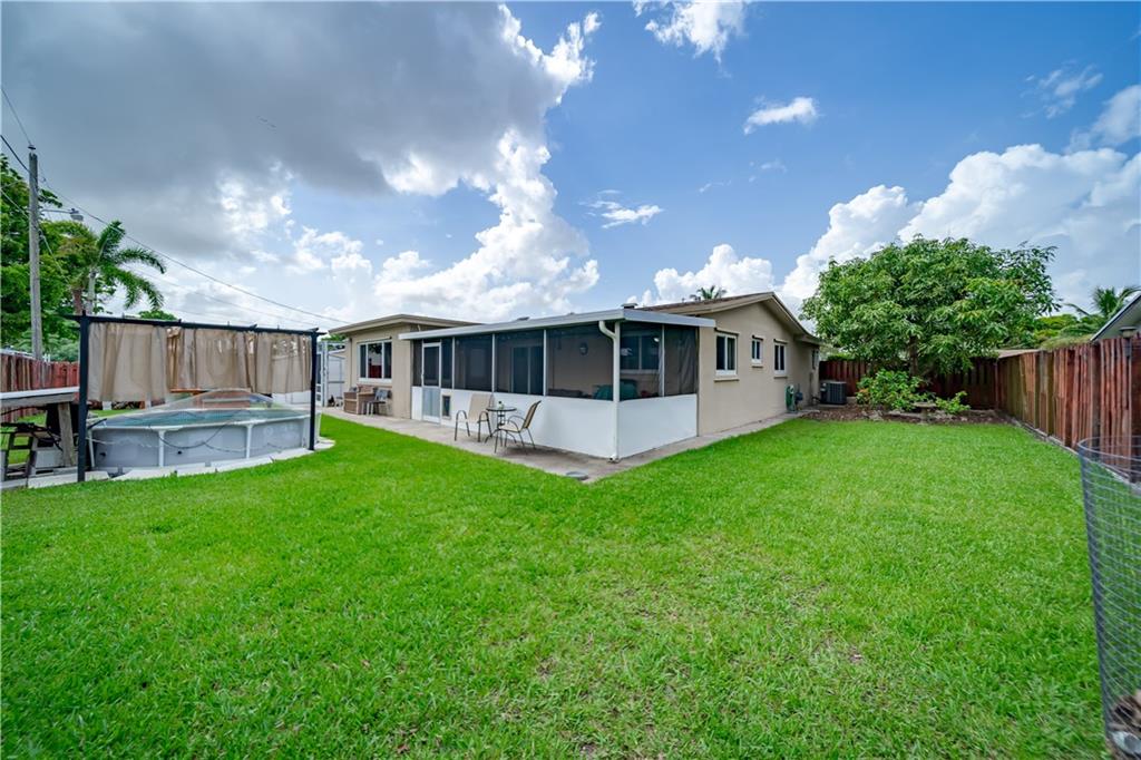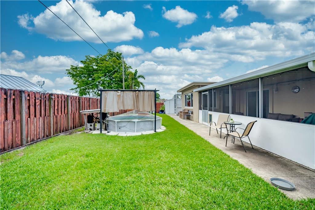Immaculate 3/2 house with 1 car garage, ready for a new buyer. Features, updated kitchen with wood cabinetry and granite counter tops stainless steel appliances, gas stove and gas water heater. Both bathrooms are updated. Primary bathroom with travertine tiles in floors and walls. One year old A/C (both units), 2017 roof, impact windows. Beautifully maintain garden totally fenced with a shed. There is a removable pool with tilapia and a removable chicken coop negotiable or sale.