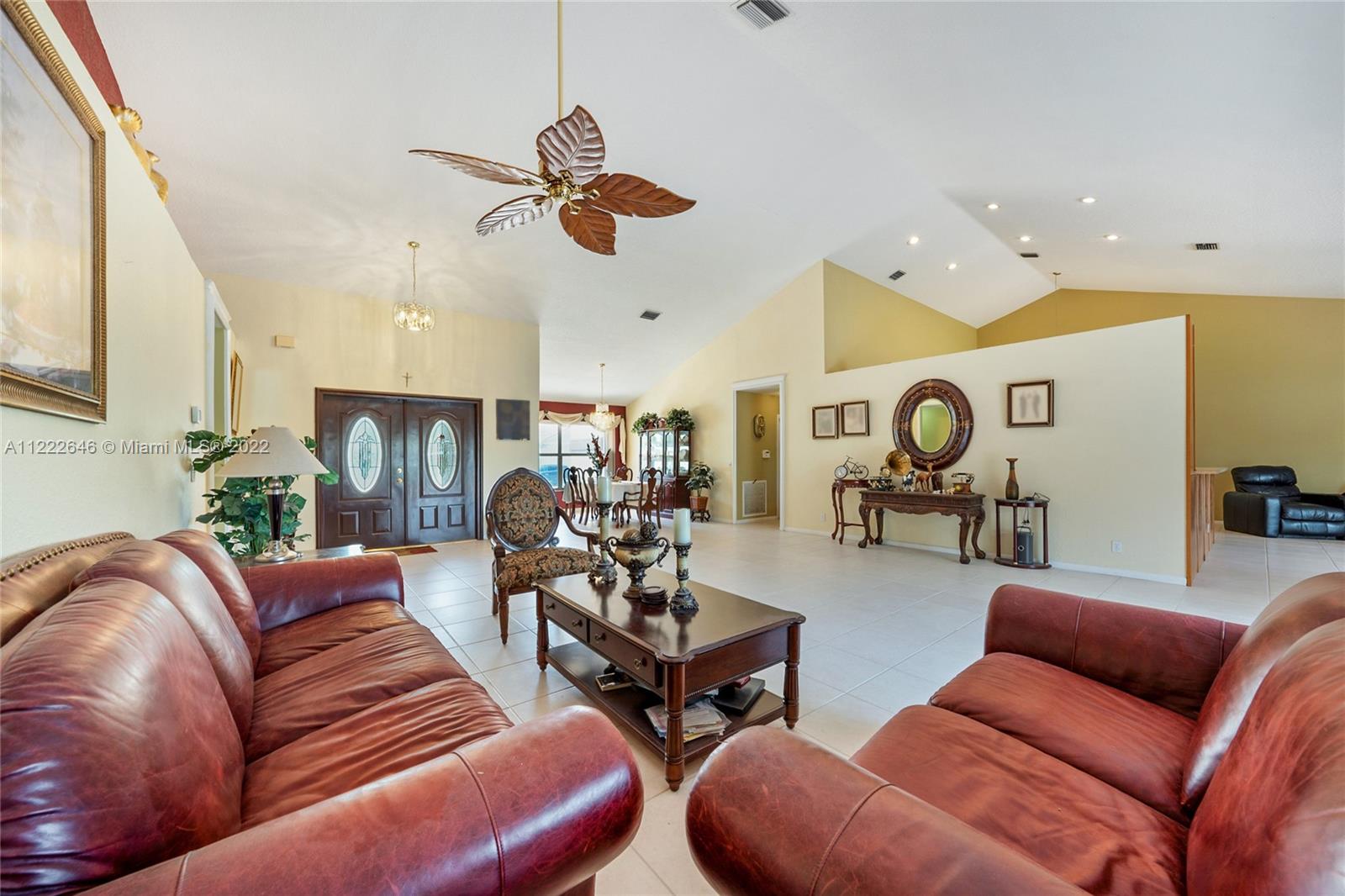 Lakefront home in highly desirable Spring Valley! Spacious and open floor plan with cathedral ceilings. A decorator's delight! Over 2,800 sqft of Living Area. A newer tile roof from 2017. This home features a circular driveway, a 2-car garage, tile floors throughout, accordion shutters on all windows, and a low HOA fee that includes multiple tennis courts, a community pool, tot lot, and roaming security. Great schools nearby.