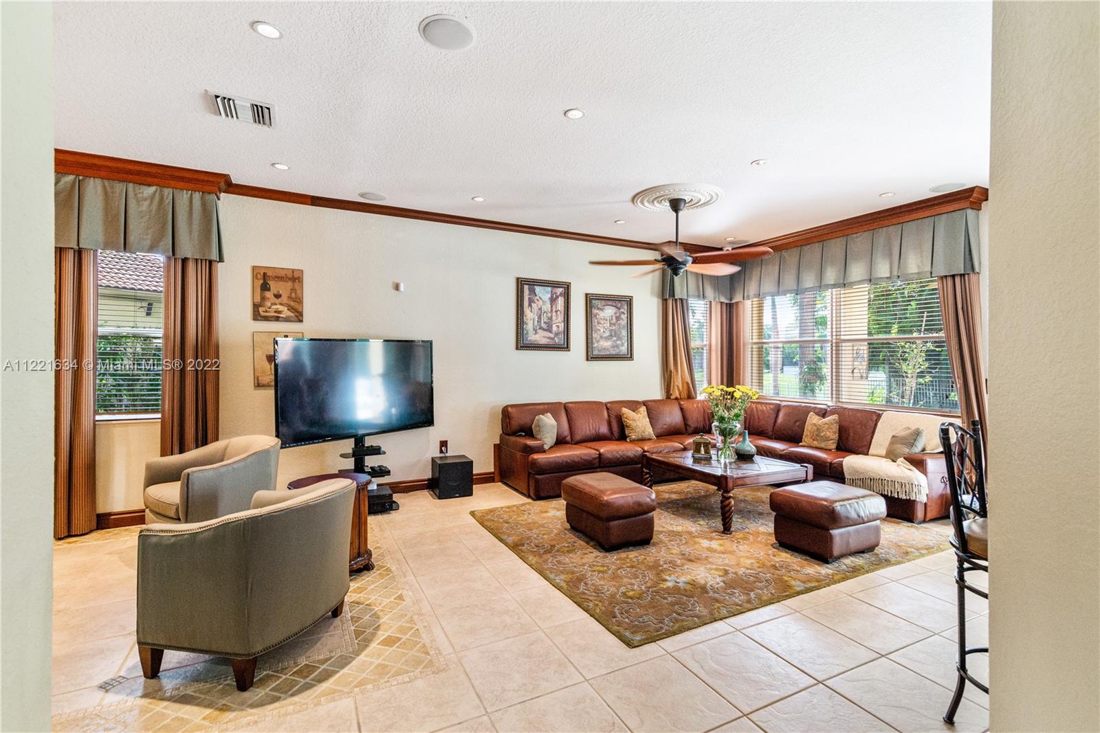 Impeccable house 4 beds, 4 full bathrooms WITH LAKE VIEW, cathedral ceilings & 2 balconies! Mahogany Model in Walnut Creek a luxurious, and family-oriented gated community in Pembroke Pines. Expansive living room with a wet bar and a Reef Aquarium. The interior of the house has been designed meticulously, Over $200K in upgrades. 2 A/C units. New washer & dryer. 1 Bedroom Ground Level. Master bedroom with new bar. Crown molding. Renovate kitchen, SS appliances & granite countertops. Accordion shutters. This home sits on an extra-sized lot over 9900 Sq.Ft; Space for a pool. Surround sound. 17 Camera system. Fence yard for more privacy. Largest driveway that can have 8 cars. HOA $298 , 24/7 security, basic cable, clubhouse, fitness center, pool, tennis, playground. Owner financing available