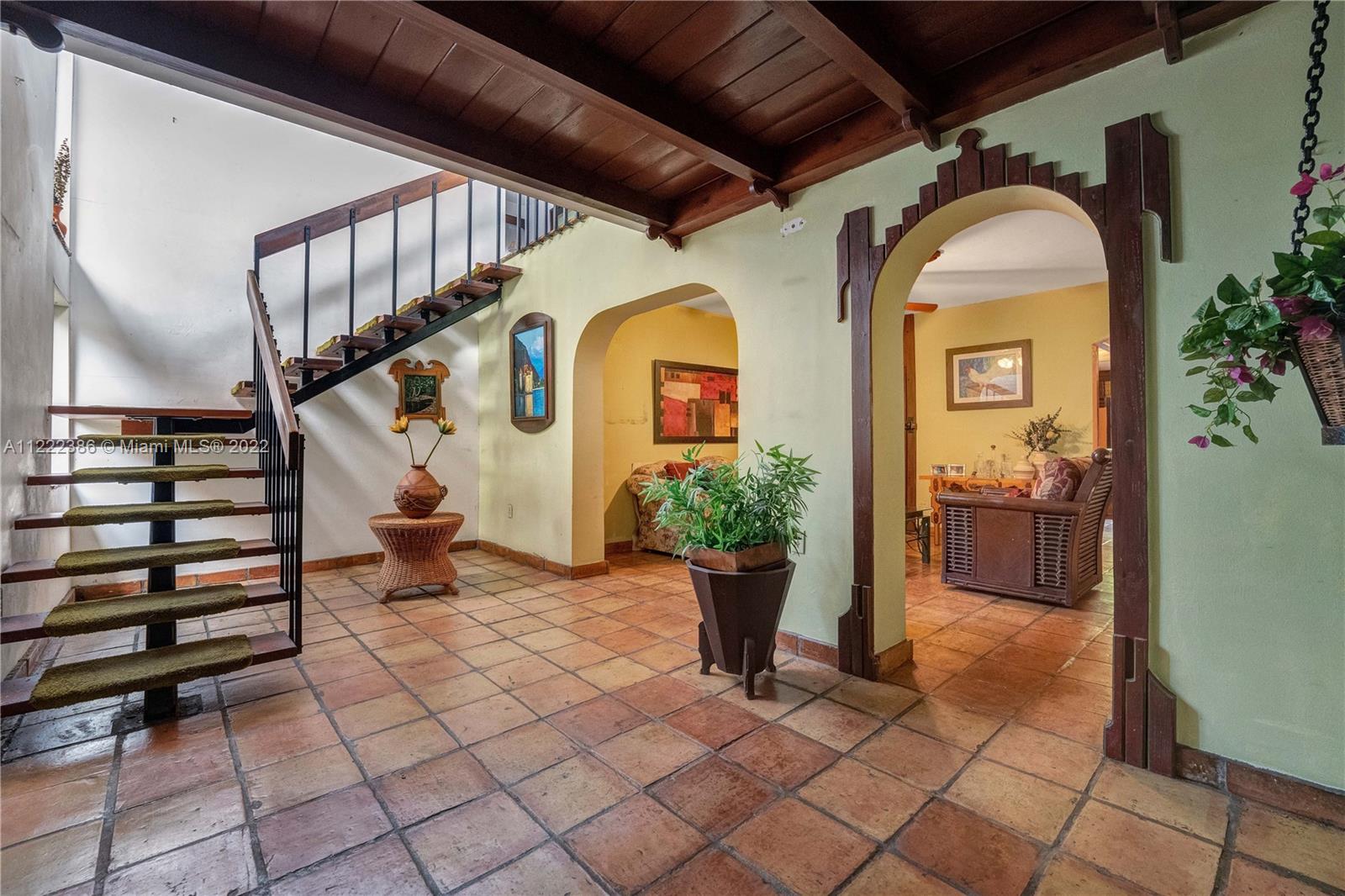 Beautiful Spanish architectural, three-story home in the soaring community of Hialeah. This is a 4 bedroom, 3 bath home with an attic and detached storage unit. There are beautiful terracotta ceramic floors throughout the house. This home features a terrace and a spacious balcony on the second floor. The backyard is well designed to host family parties and events, featuring a bar and covered pit oven. Huge lot of over 8,000 sq. ft. Enough space to park 6 vehicles and access to the backyard from one side. Very close to schools, shopping, and major roadways. This property is being sold AS IS.