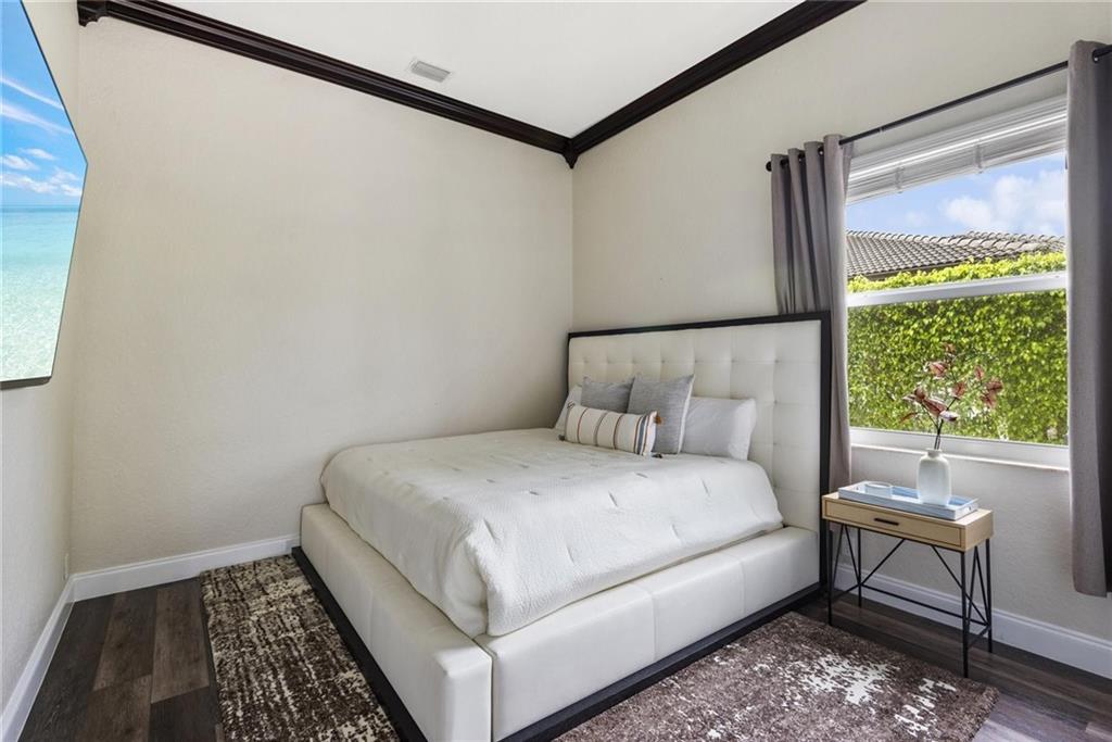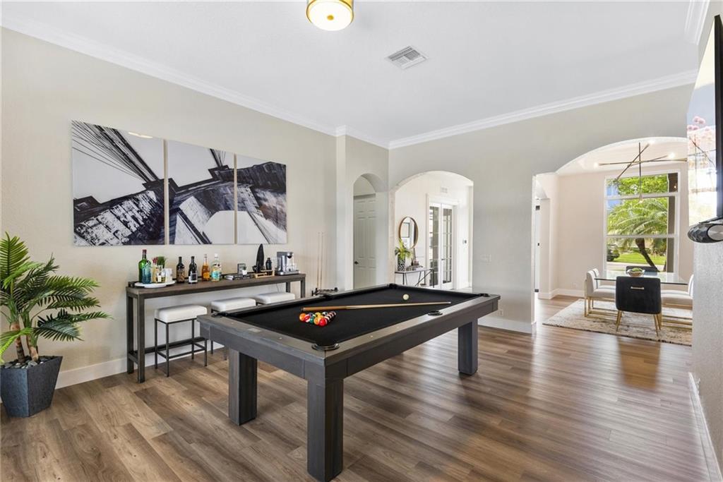 Remodeled lakefront pool home in the gated community of Hibbs Grove. Situated on over a 1/2 acre, cul-de-sac lot you will find an amazing backyard for entertaining complete with pool, patio, summer kitchen and screened enclosure - all new since 2020. This home is open & inviting with volume ceilings & neutral paint throughout. The remodeled kitchen is open to the family room and features double ovens, wine fridge, generous sized pantry, tons of storage, long island and cozy breakfast nook. True 5 bedroom 3.5 bath home plus office. The large primary suite has a sitting area, custom cabinetry in the closet and a stunning, renovated oversized bathroom. Hurricane impact glass exterior painted 2020.