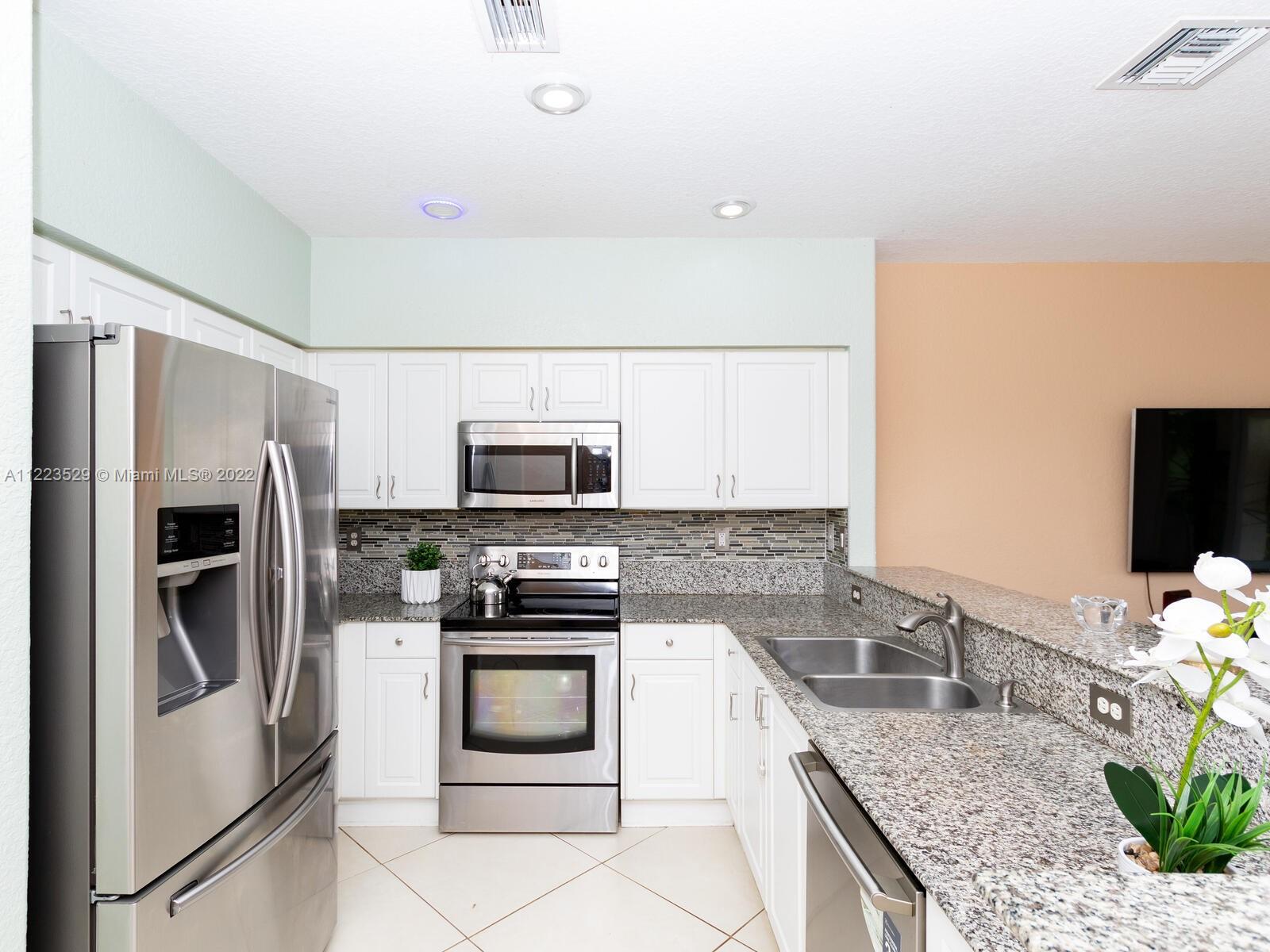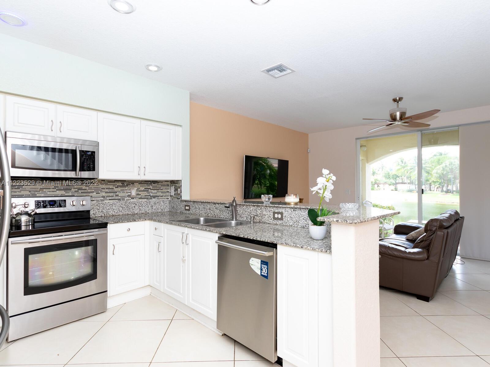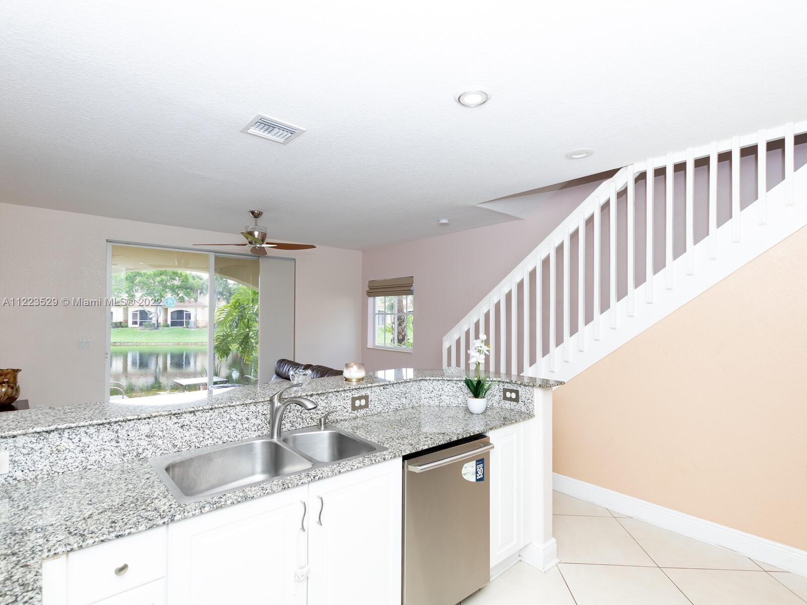 Spacious 3/2.5 townhome corner unit in the highly sought after heart of Miramar! This immaculate home features an open floor plan living room/dining room area that guides you to the fully renovated kitchen w/ granite counter tops, stainless steel appliances, pantry, dishwasher, garbage disposal, recess lighting & family room overlooking the covered paved patio with a serene lake view! Upstairs you will find a large luxurious master bedroom w/ ensuite bathroom & walk in closet w/ custom cabinetry alongside 2 additional bedrooms with lakeview. A/C unit & laminate flooring w/ warranty are under 4yrs. Amenities consist of clubhouse, pool, tennis court, exercise room & a children's playground. All located near major highways, shops and restaurants. A true turn key property to call home!!