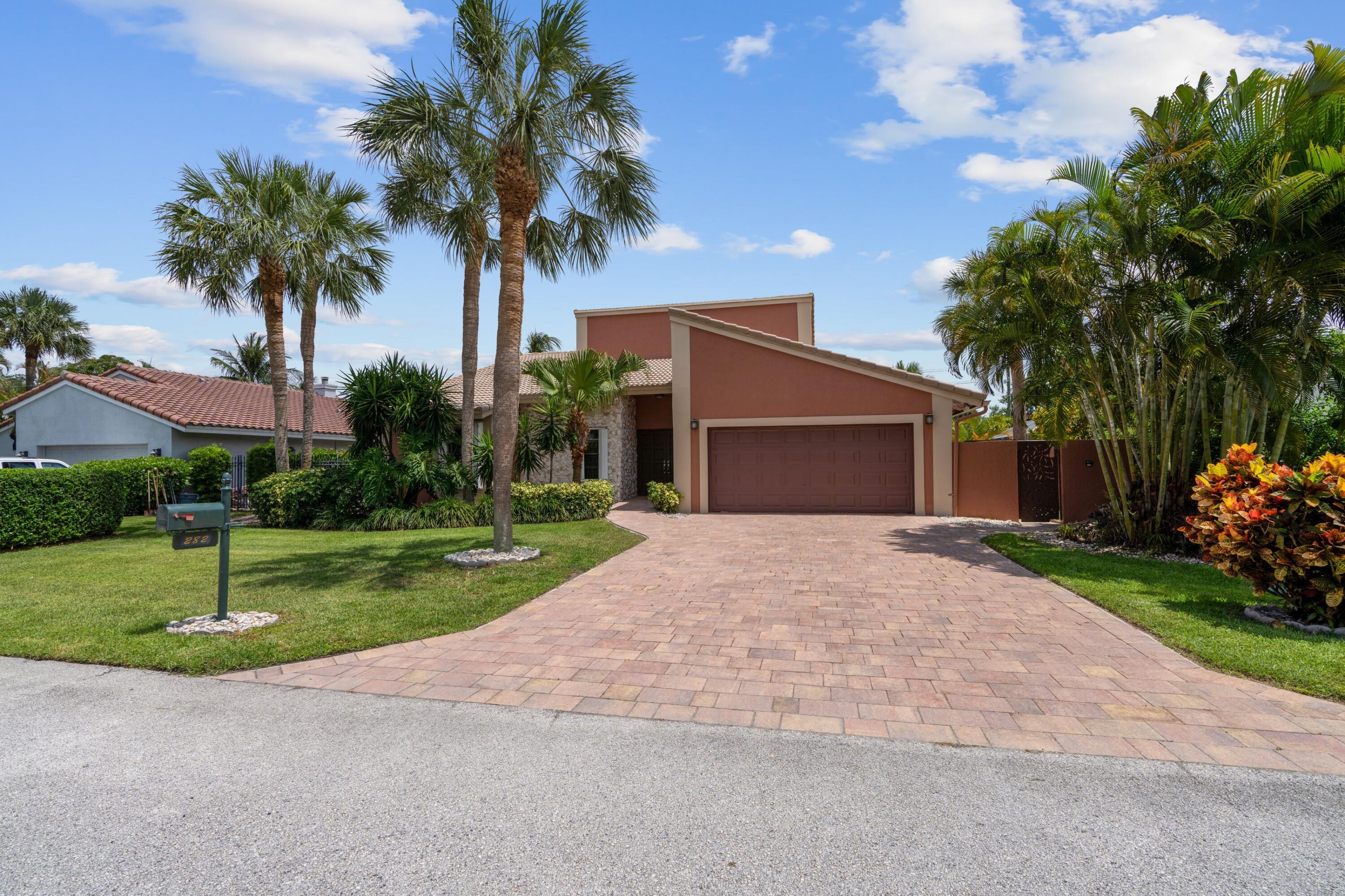 Prestigious One-Story Estate Home in Beautiful Boca Lake Estates! Stunning Waterfront Views! 4 BR | 3 BA | 2+Car Garage | 6 Car Parking Driveway. Open Split Floor Plan, Wood Burning Fireplace, Dramatic Vaulted Ceilings, Crown Molding, Recessed Lighting & Tile Floors. Beautiful Eat-In Kitchen, White Wood Custom Cabinets, Tile Backsplash, Breakfast Bar & S/S appliances. Master Suite, Large Glass Sliding Doors to Pool, Ensuite with Jacuzzi Tub, Oversized Shower, & Dual Sink Vanity. Oversized Quiet Tropical Backyard, Covered Patio & Custom Private Pool. Best A+ Rated Schools! Minutes to Beach, FAU, Downtown Mizner Park & Delray Beach Atlantic Avenue! WH 2012 | Roof 2001 | AC 2016.