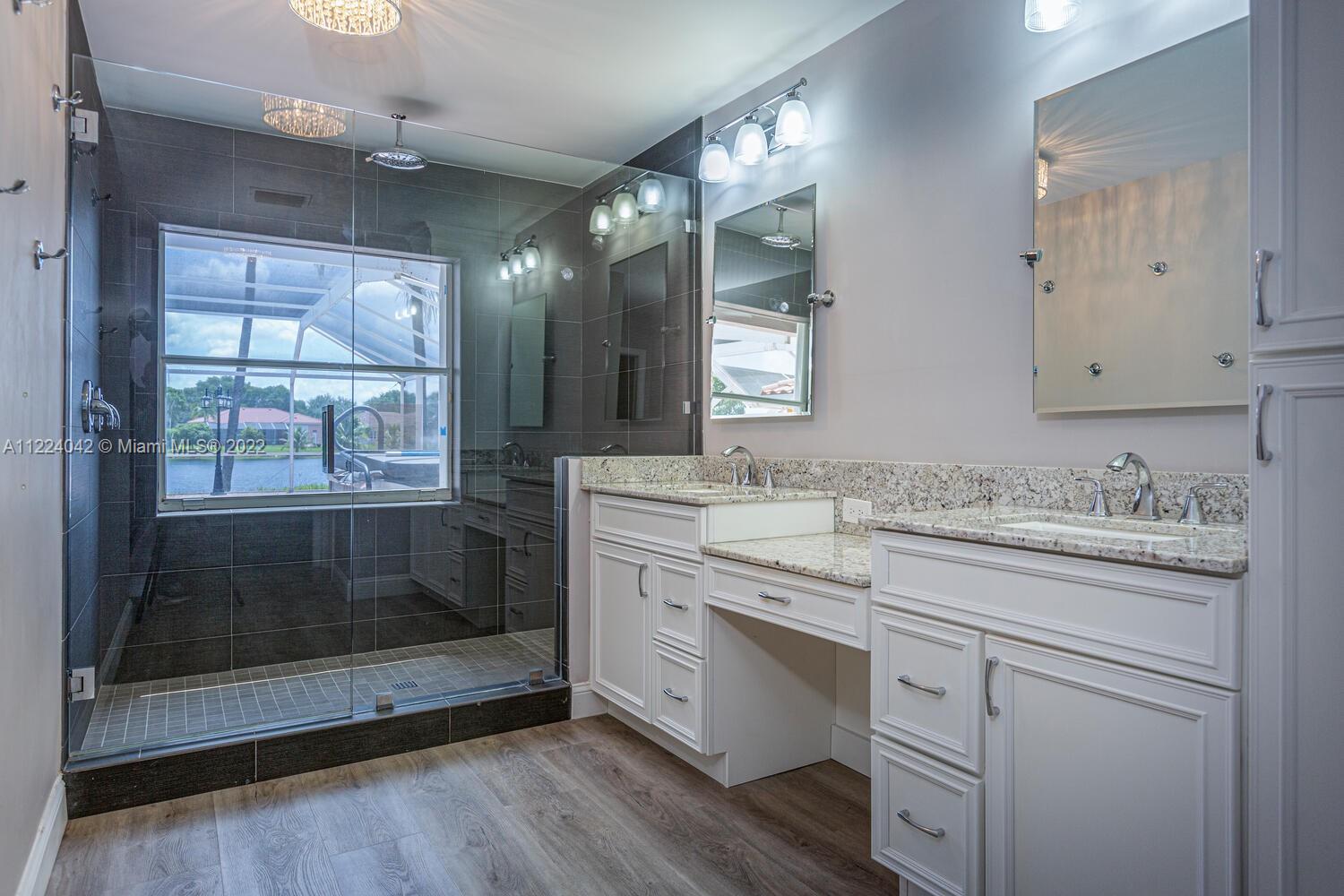 Step into this beautifully updated home in Bristol Isle. Beautiful water views from all the main living areas....you must see in person to get the fully experience! Fantastic home set up for great entertaining options or for your own private use. Home features a beautiful pool area overlooking a wide expanse of the lake. Enjoy morning sunrise views and glorious evening sunsets reflecting on the lake. Gorgeous custom gourmet kitchen with an oversized island. Plenty of cabinetry with pull out shelving and soft close drawers. Primary bedroom and bath have been customized as well...bathroom has been totally redone with oversized shower area, great dressing area too. Large walk-in closet with Elfa shelving. 2 additional bedrooms on other side of home give you space & privacy. Call today!