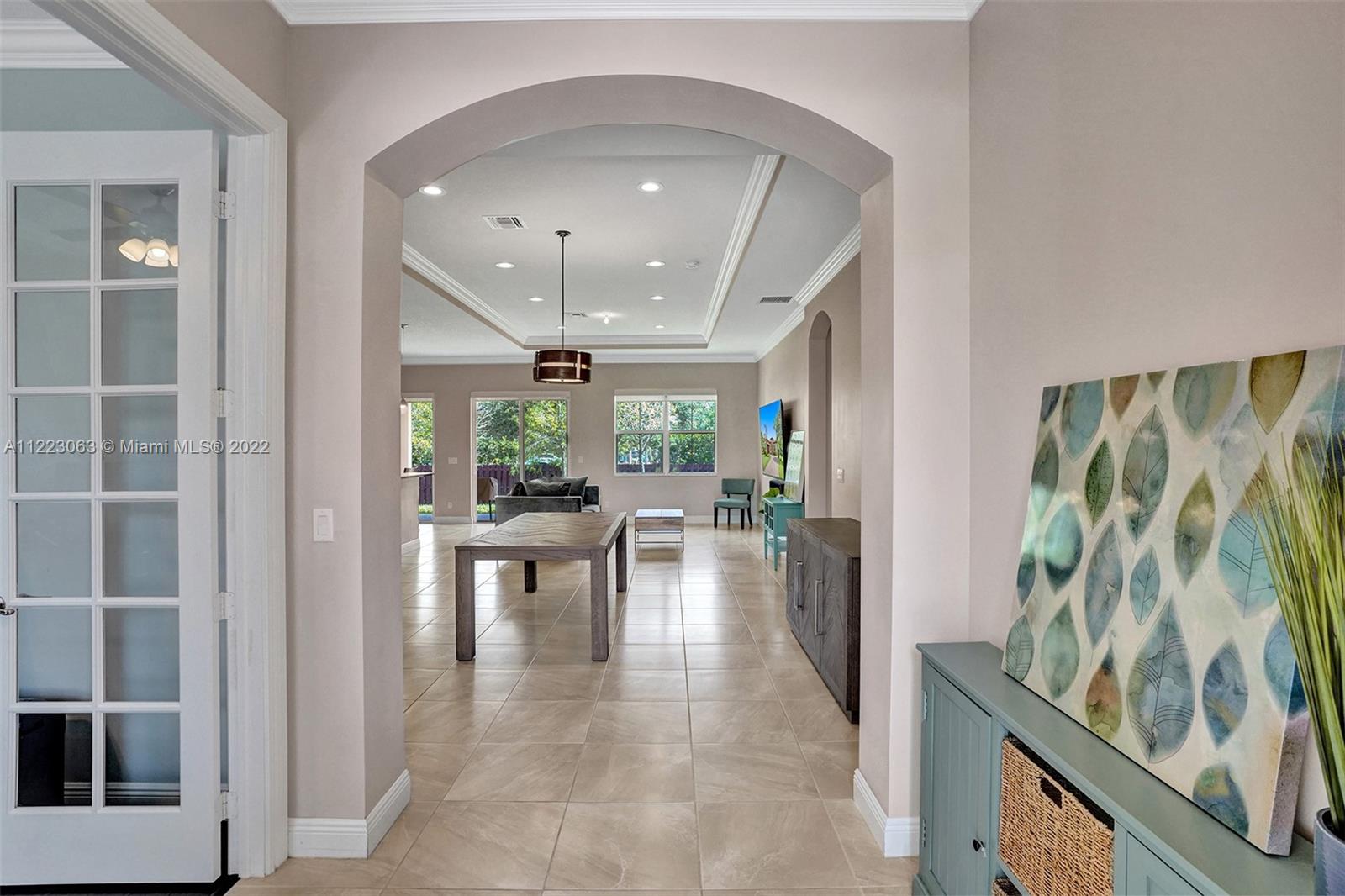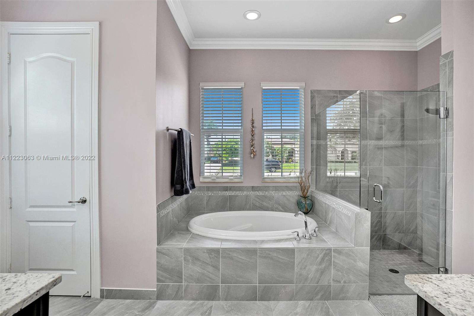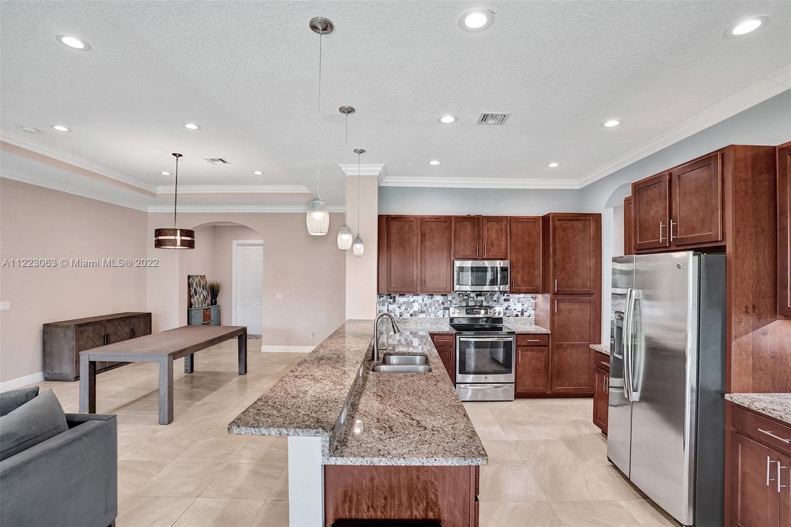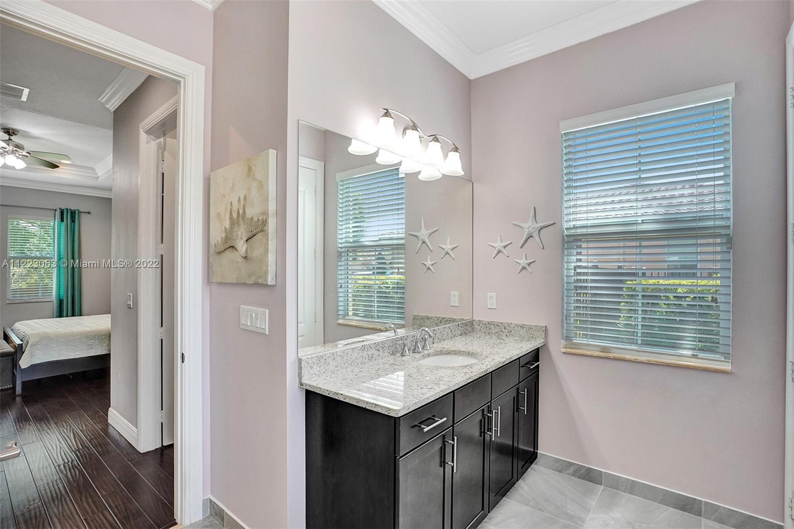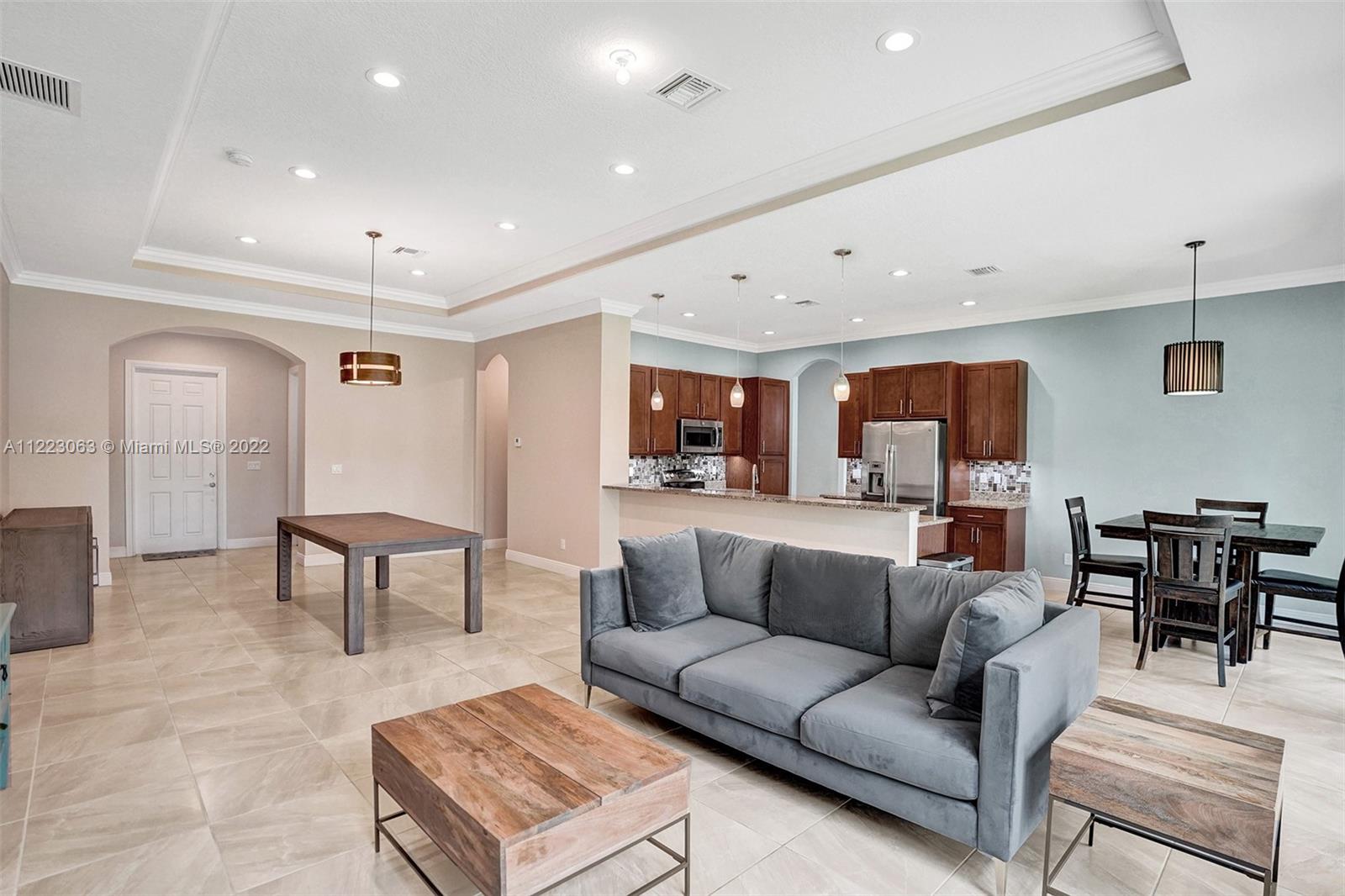 Spectacular one story 3 bedroom + study, 2.5 bath home sits comfortably on a 14,500 sqft lot, perfect for entertaining and has plenty of room for a pool. The open-concept floor plan boasts plenty of natural light, large 20-inch ceramic tiles, hardwood floors in all bedrooms & study, recessed LED lights, & crown molding. The kitchen is well equipped with stainless steel appliances & granite countertops. The large primary suite features 2 custom walk-in closets, hand scraped wood floors & dual sinks. Exterior upgrades include a fenced yard, security cameras, hurricane windows & doors. Newly painted in March 2022. The expansive driveway can easily fit 8 cars plus a 2-car garage that features overhead storage racks. Located in a family friendly community close to major highways & colleges.