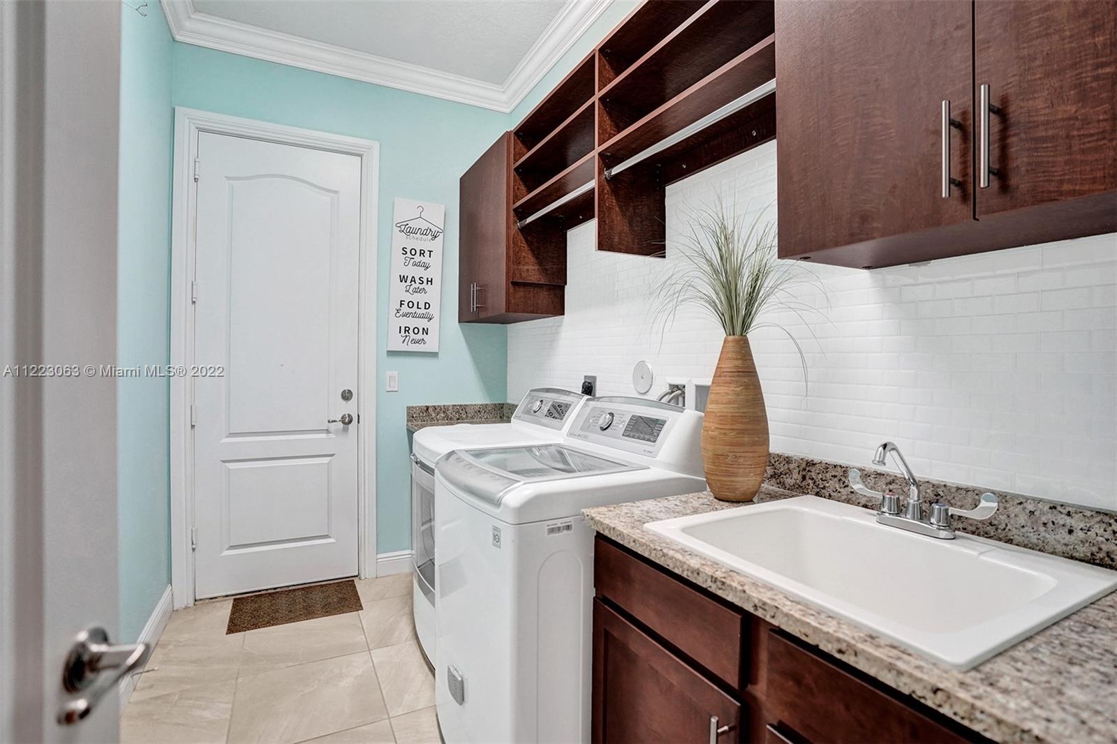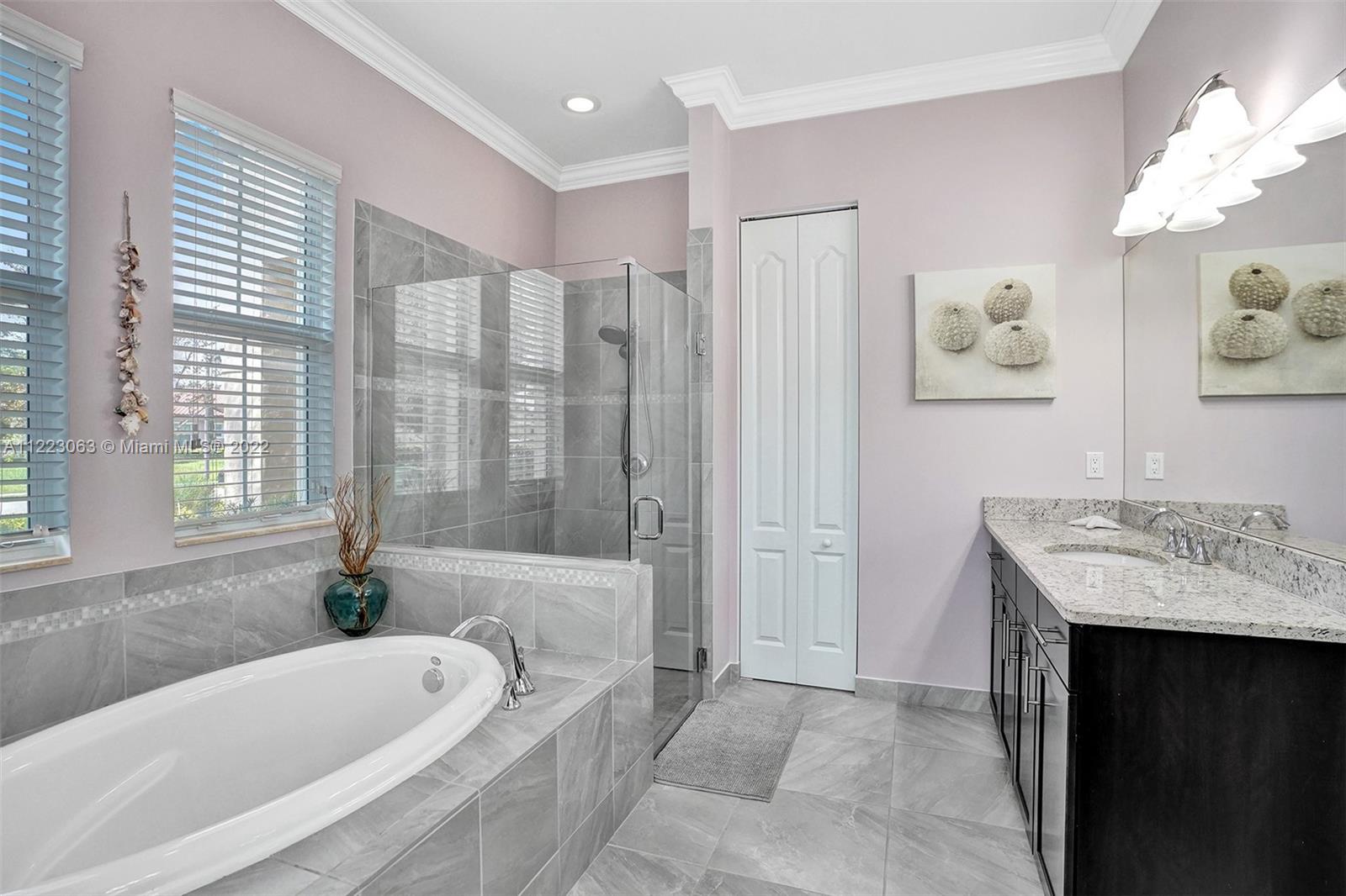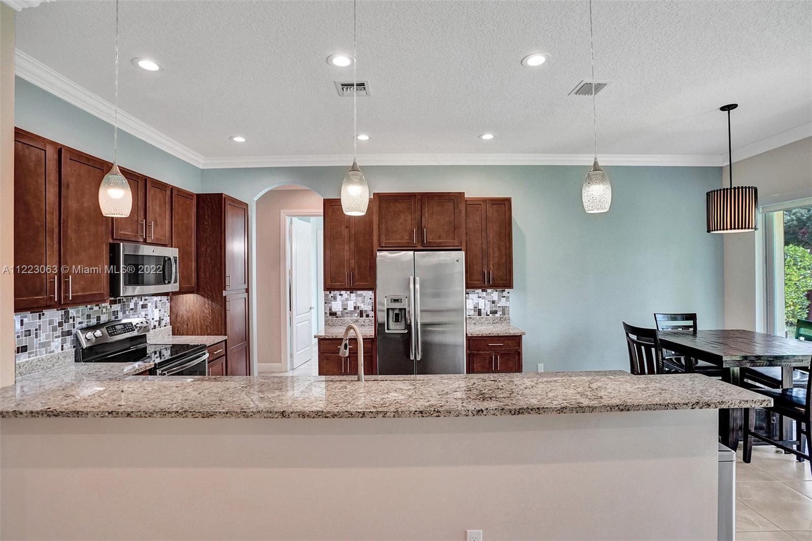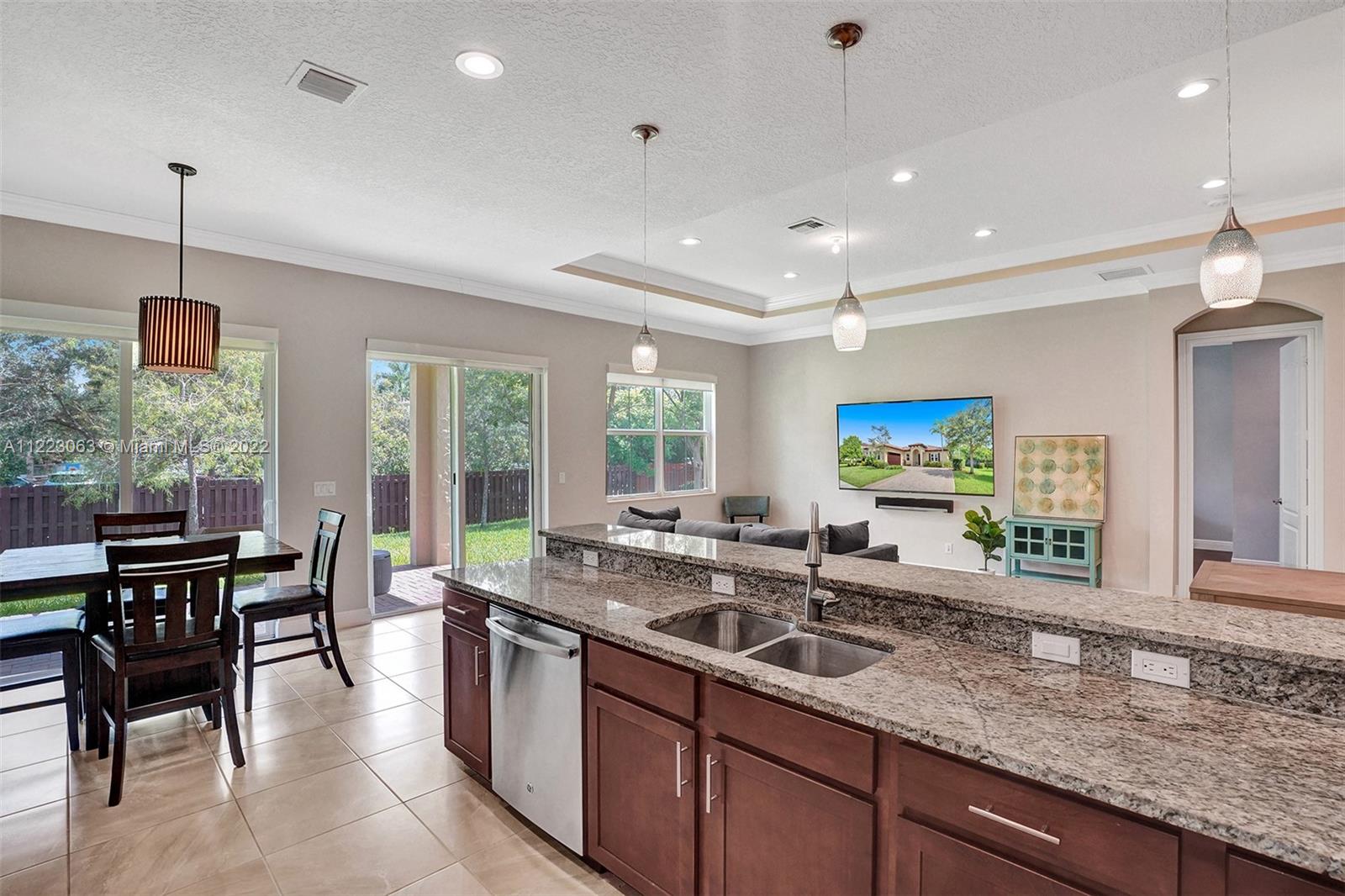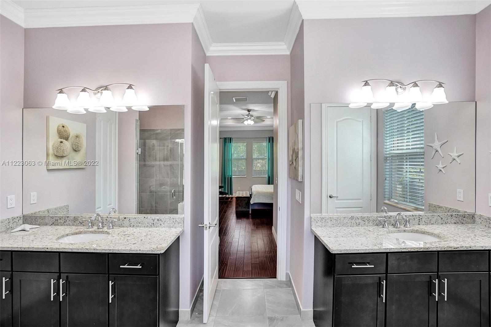 Spectacular one story 3 bedroom + study, 2.5 bath home sits comfortably on a 14,500 sqft lot, perfect for entertaining and has plenty of room for a pool. The open-concept floor plan boasts plenty of natural light, large 20-inch ceramic tiles, hardwood floors in all bedrooms & study, recessed LED lights, & crown molding. The kitchen is well equipped with stainless steel appliances & granite countertops. The large primary suite features 2 custom walk-in closets, hand scraped wood floors & dual sinks. Exterior upgrades include a fenced yard, security cameras, hurricane windows & doors. Newly painted in March 2022. The expansive driveway can easily fit 8 cars plus a 2-car garage that features overhead storage racks. Located in a family friendly community close to major highways & colleges.